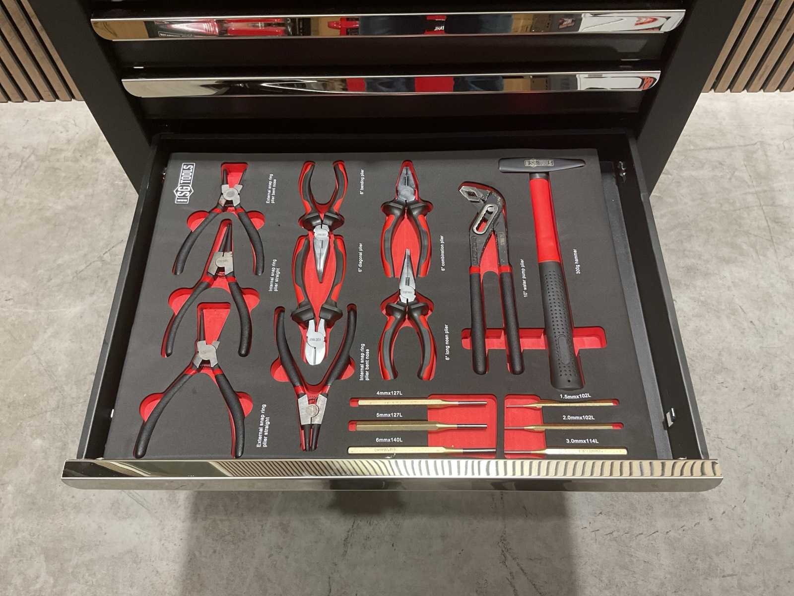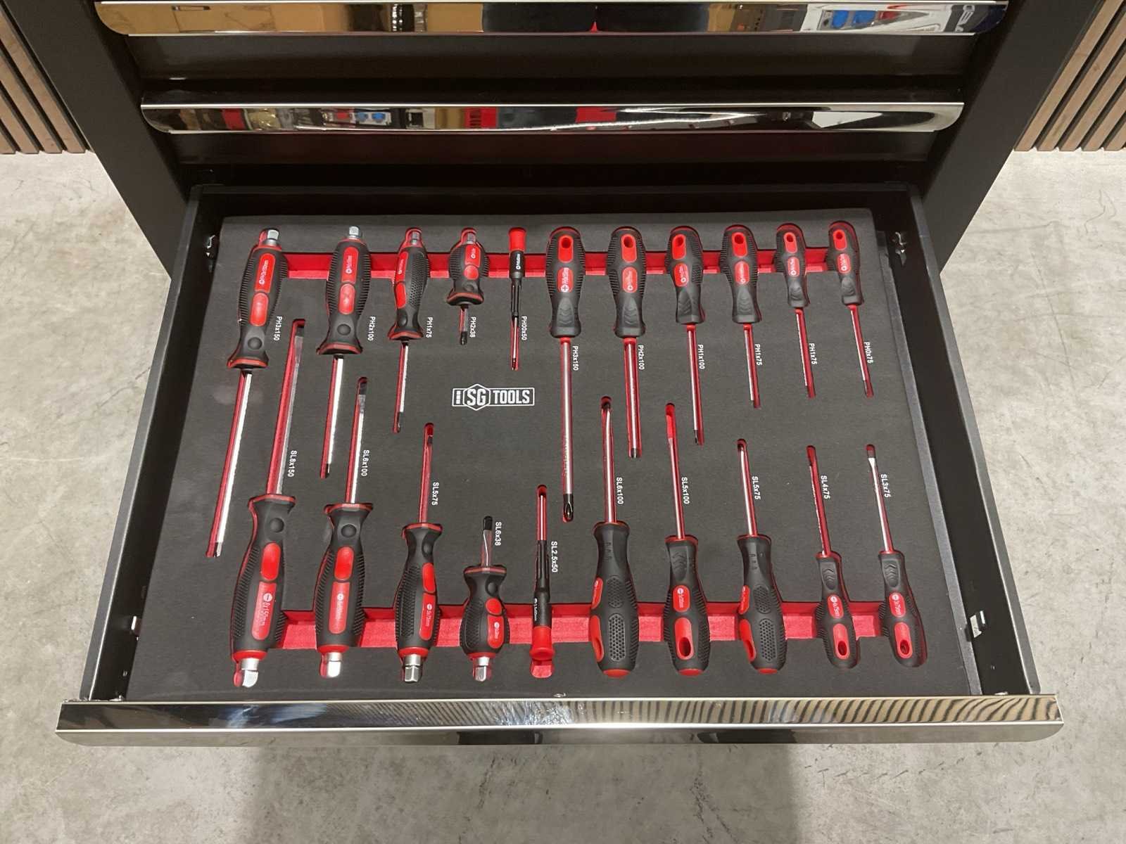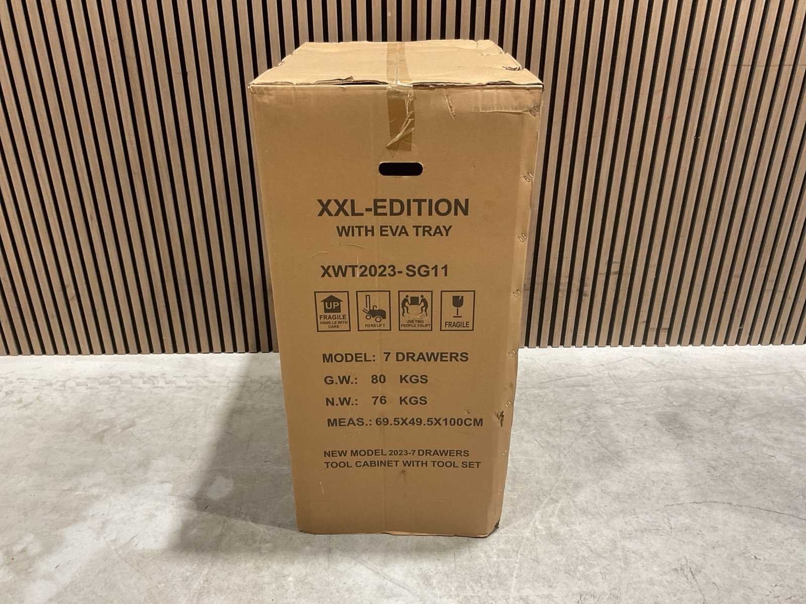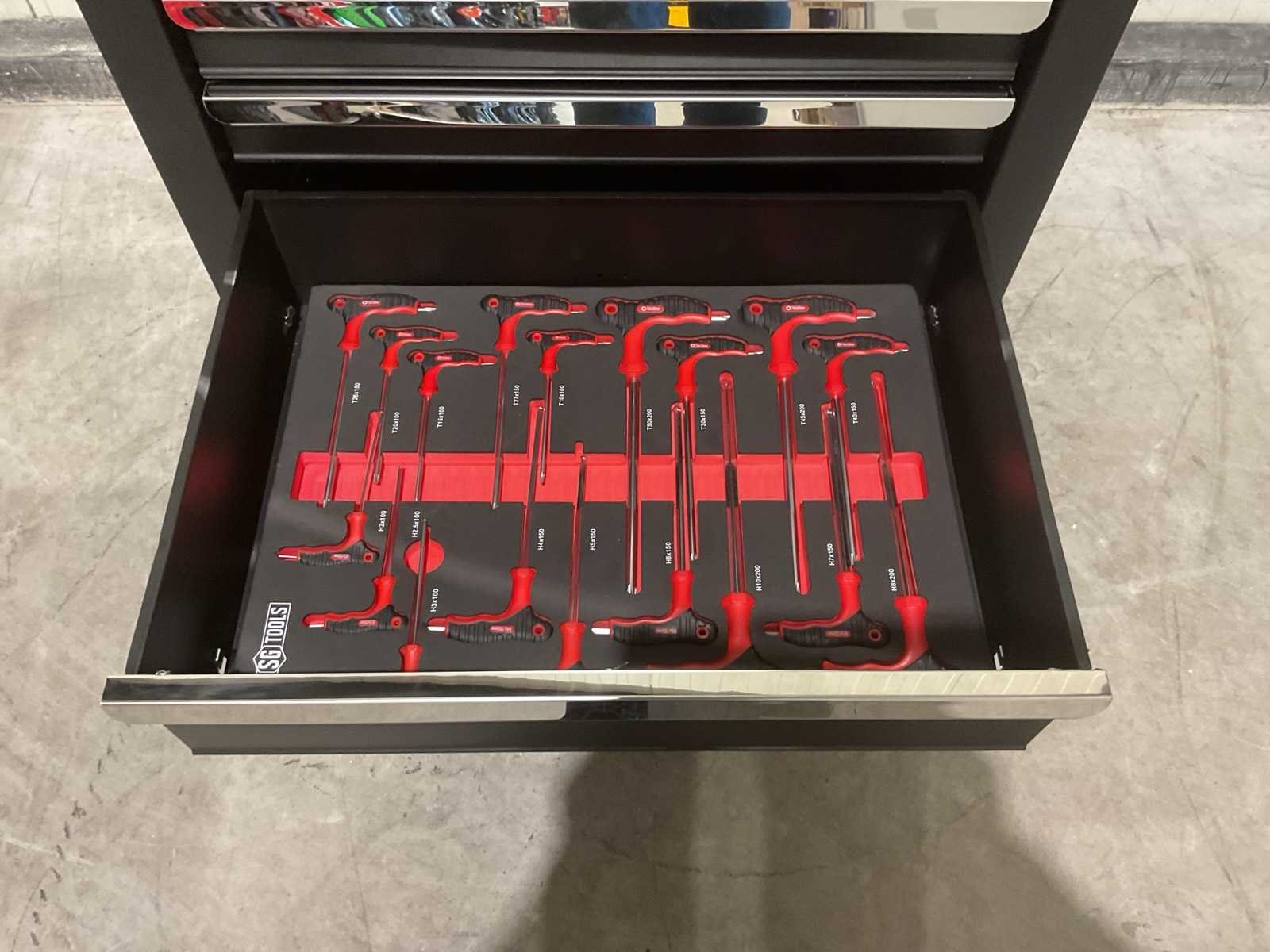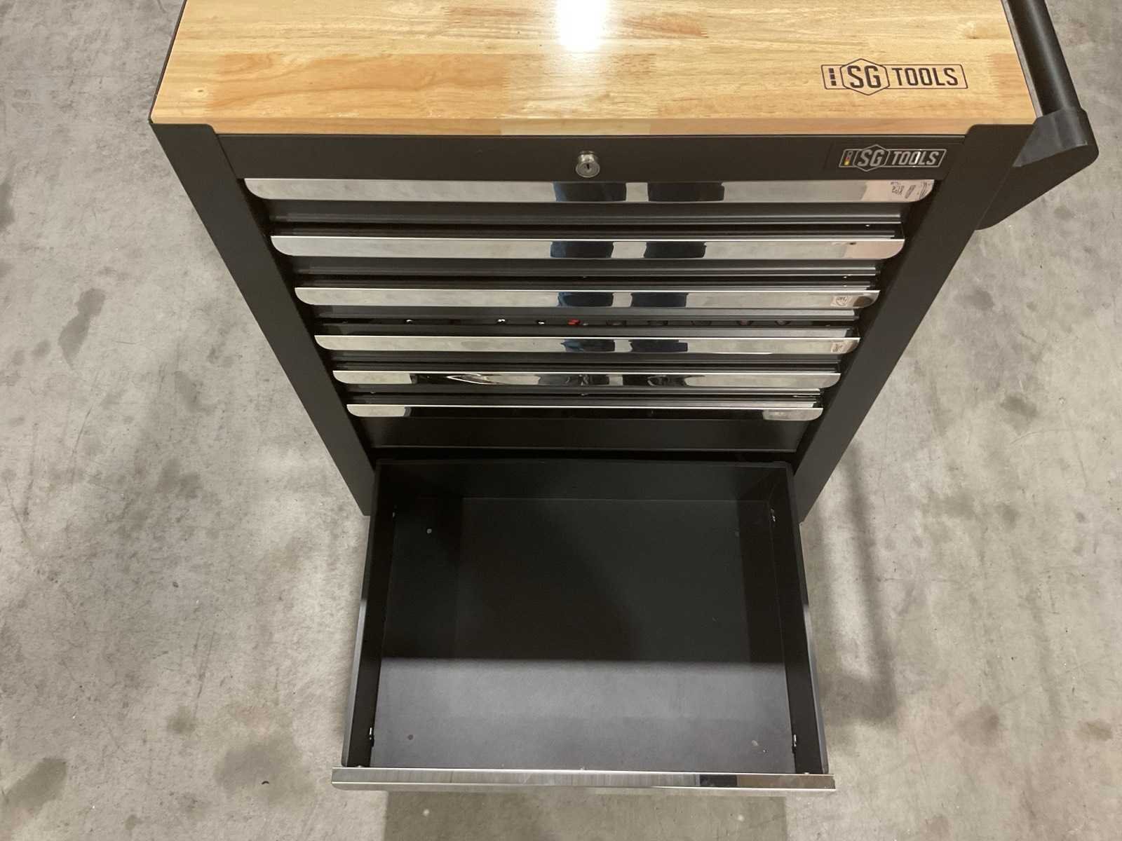 Voorzien van 7 laden, 6 gevuld; 278 stuks gereedschap; Handgrepen: Chroom; Wielen: Met wielen; vermeld als 2 zwenkwielen met rem; Productafmetingen (L×B×H): 70 × 50 × 100 cm; Ongebruikt (Transport; 80kg 70x50x101cm) Merk: SG TOOLS Type: XWT2023-SG11 Met inhoud: true Eigen gewicht: 76kg Totale afmeting L: 695mm Totale afmeting Breedte: 495mm Totale afmeting Hoogte: 100mm
