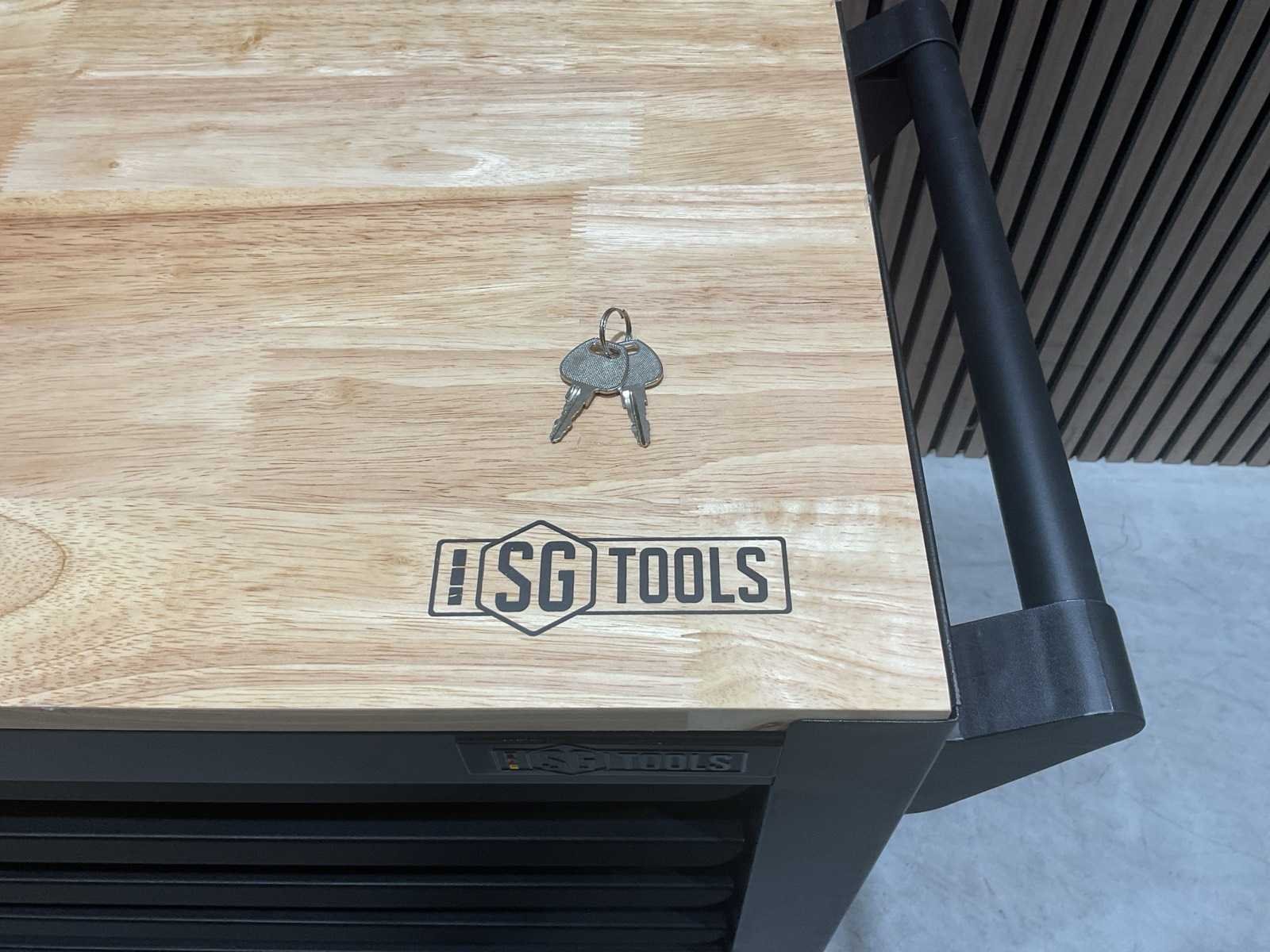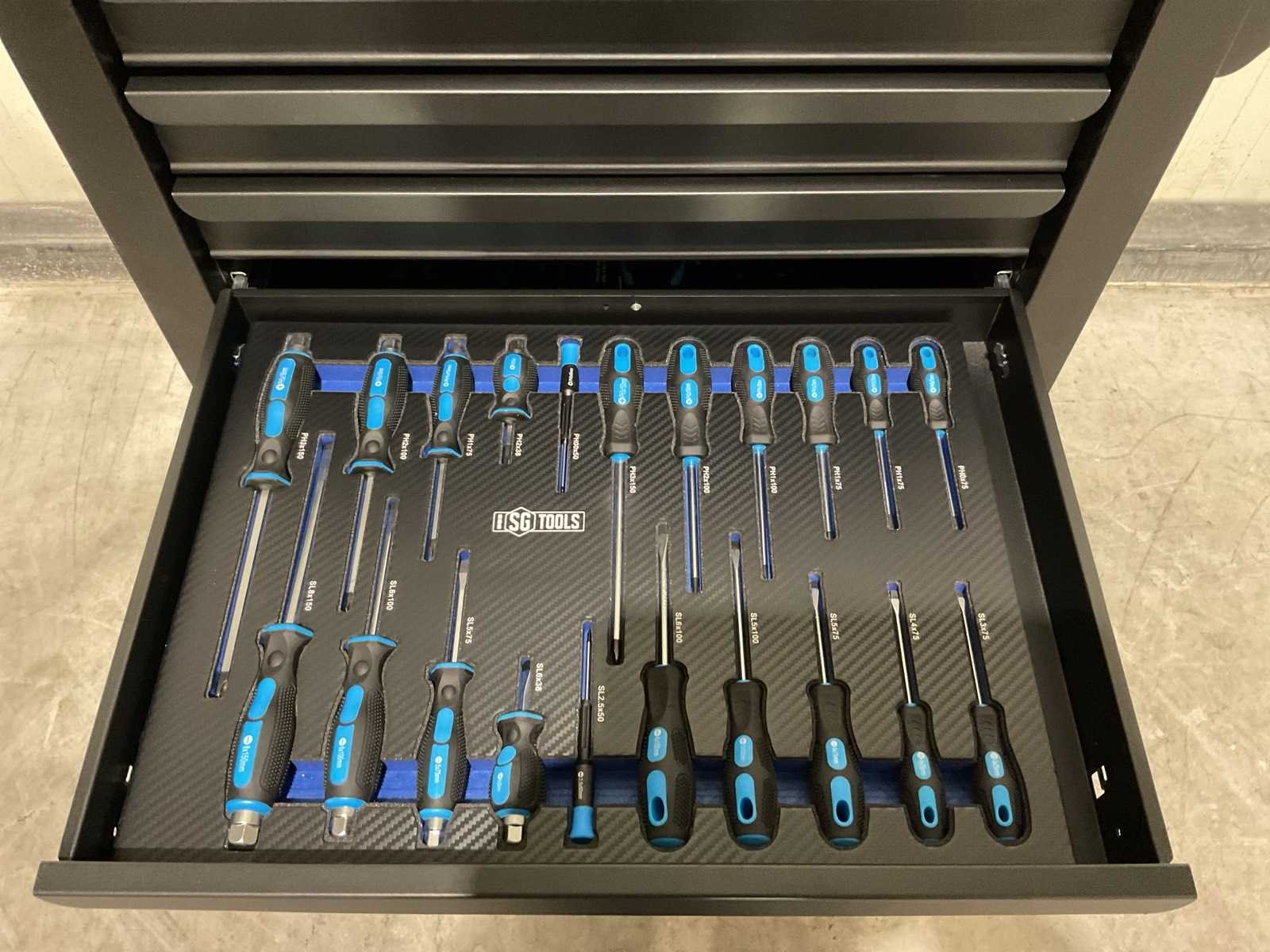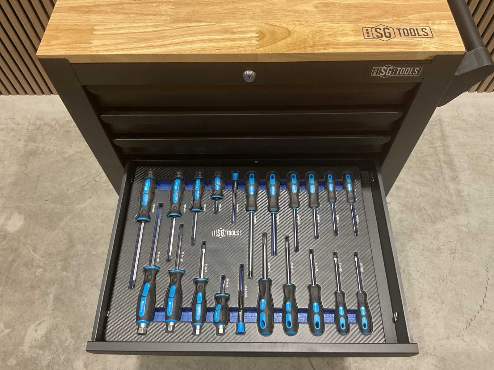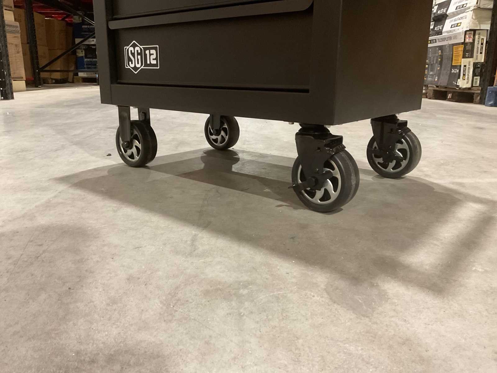 Voorzien van Lades: 7 lades, waarvan 6 gevuld; Aantal tools/onderdelen: 278 stuks; Wielen: 4 wielen, waarvan 2 zwenkwielen met rem; Afwerking: mat zwart, milieuvriendelijke poedercoating; Transport gewicht: 80kg; afmetingen 70x50x101cm; ongebruikt in doos Merk: SG TOOLS Type: XWT2023-SG12 Met inhoud: true Eigen gewicht: 76kg Totale afmeting L: 695mm Totale afmeting Breedte: 495mm Totale afmeting Hoogte: 100mm