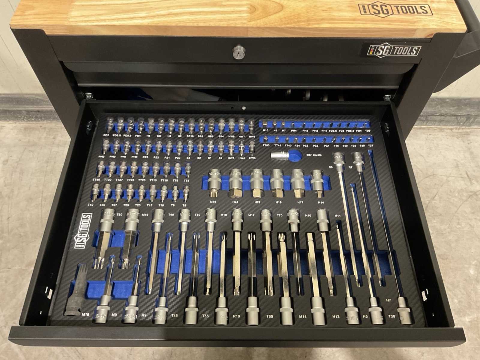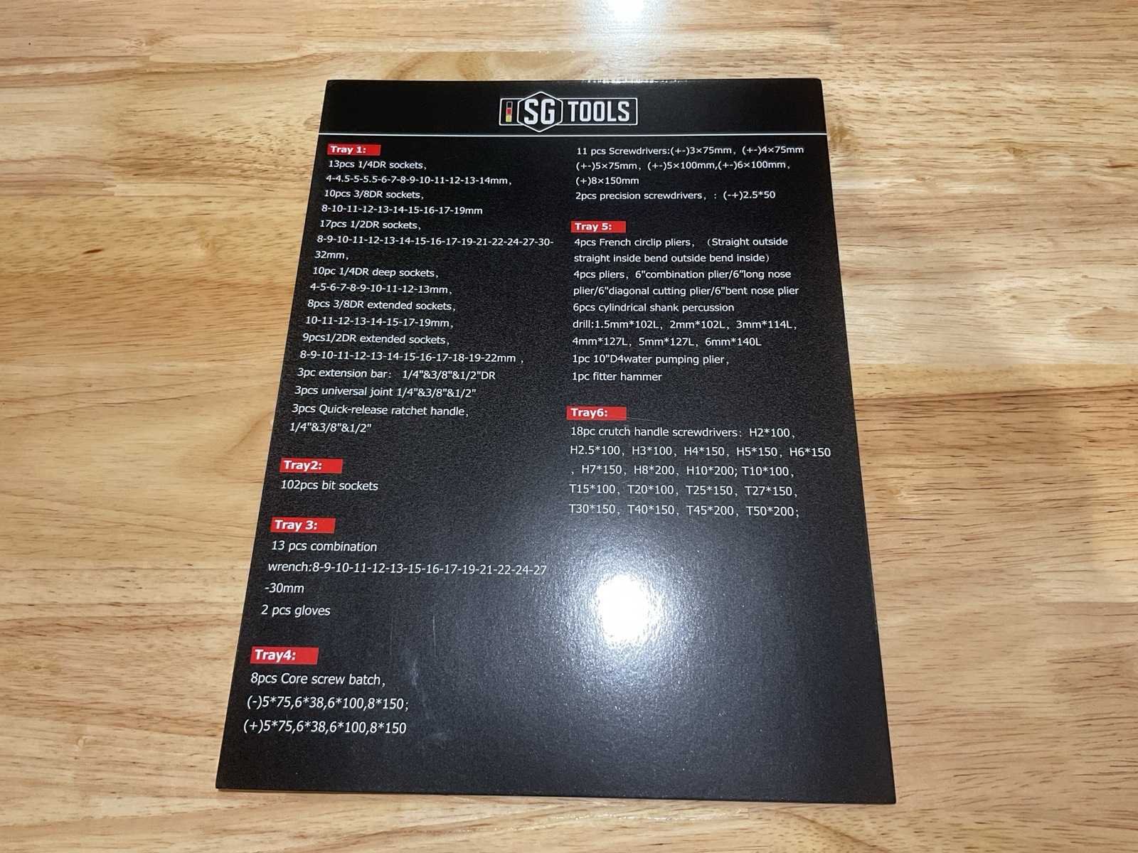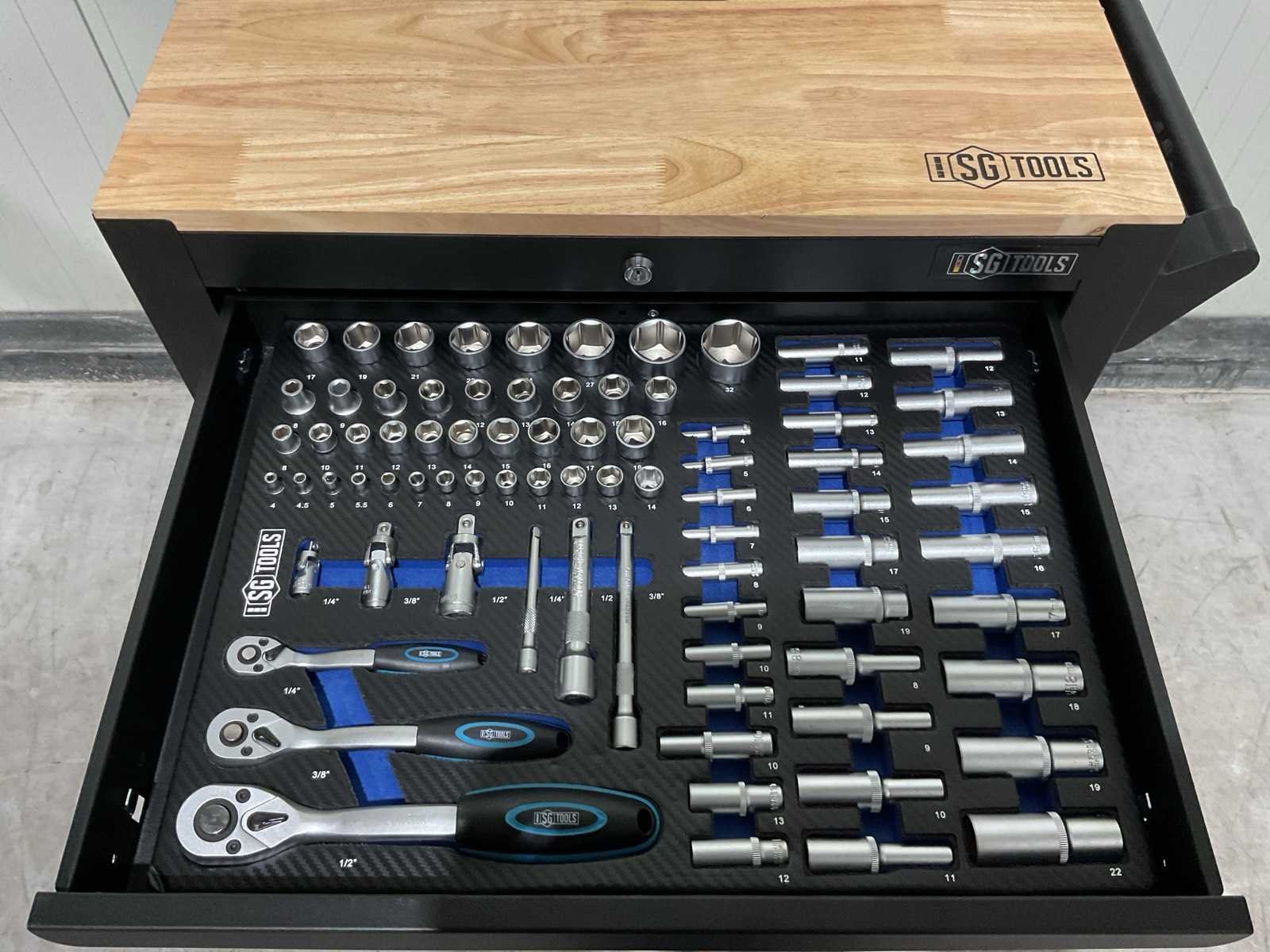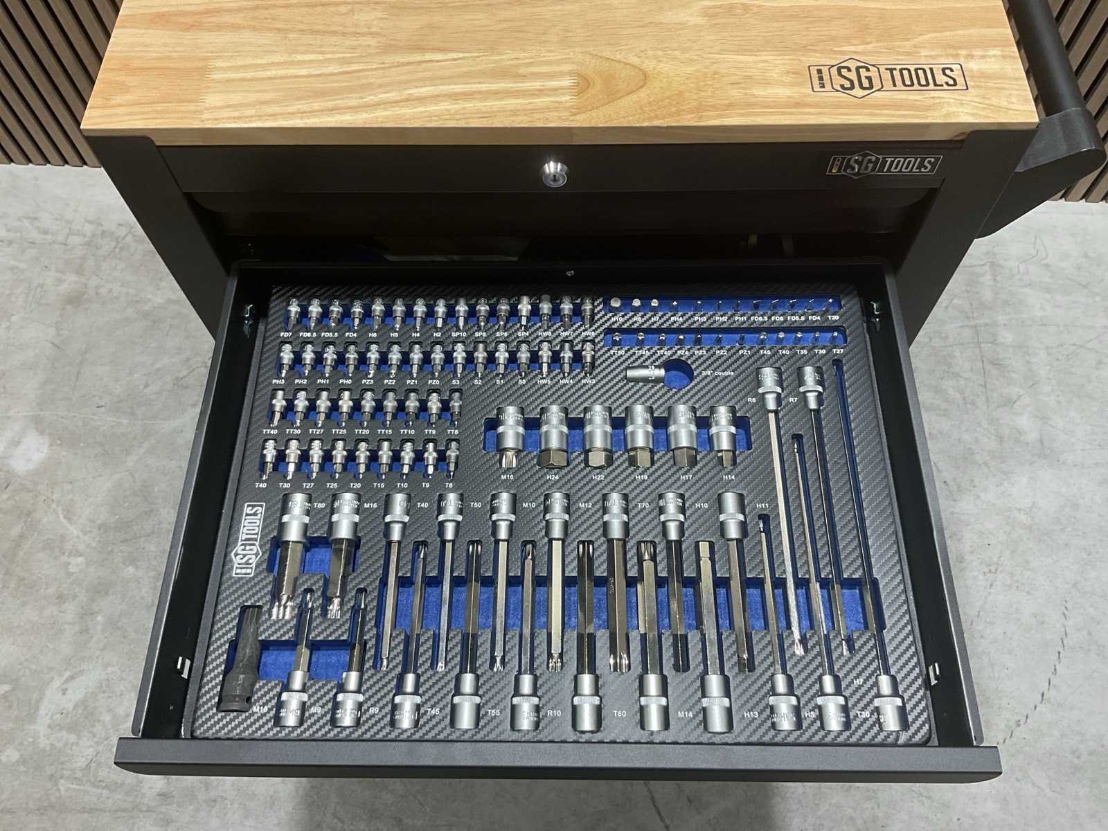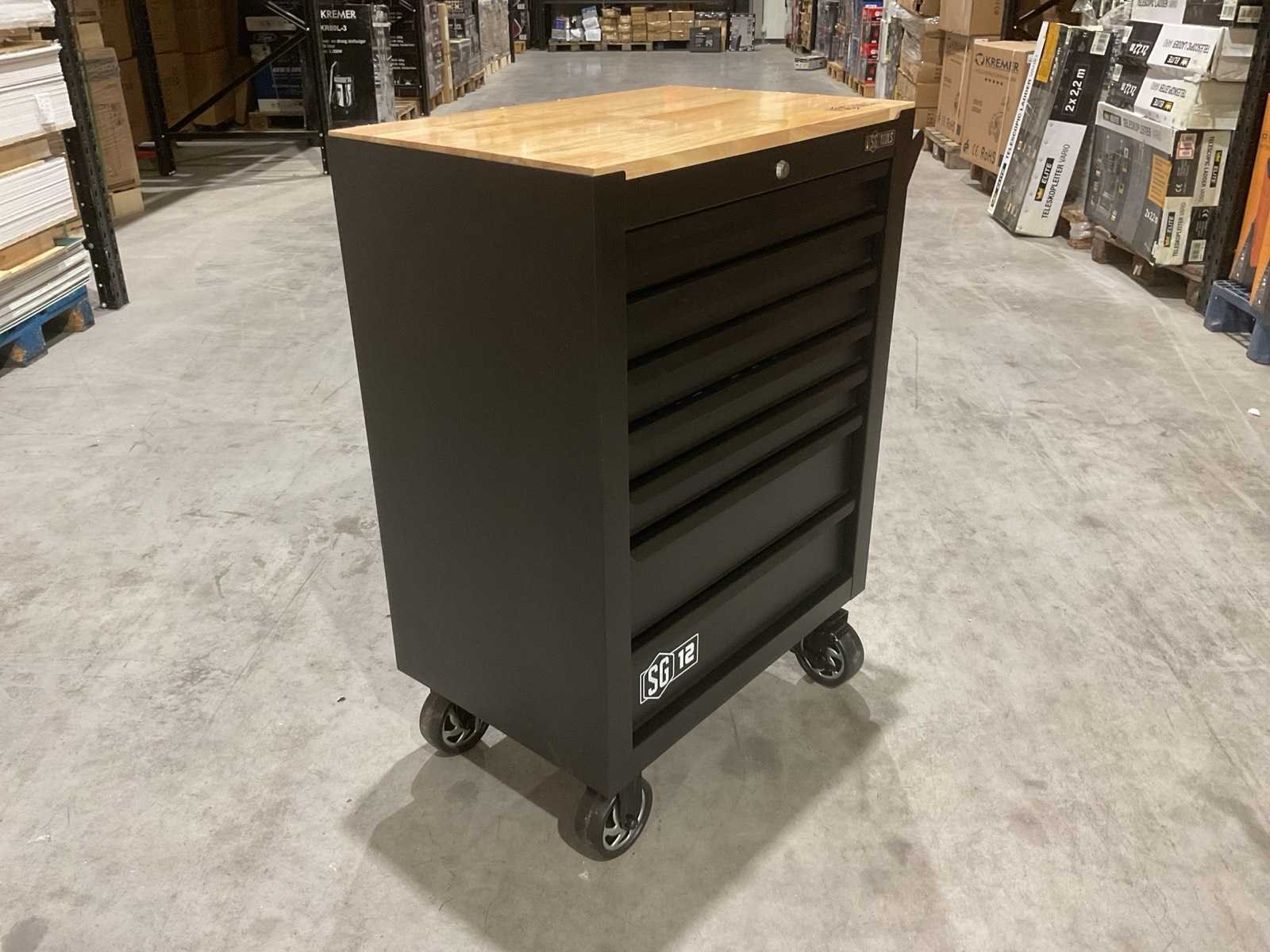 Voorzien van Lades: 7 lades, waarvan 6 gevuld; Aantal tools/onderdelen: 278 stuks; Wielen: 4 wielen, waarvan 2 zwenkwielen met rem; Afwerking: mat zwart, milieuvriendelijke poedercoating; Transport gewicht: 80kg; afmetingen 70x50x101cm; ongebruikt in doos Merk: SG TOOLS Type: XWT2023-SG12 Met inhoud: true Eigen gewicht: 76kg Totale afmeting L: 695mm Totale afmeting Breedte: 495mm Totale afmeting Hoogte: 100mm