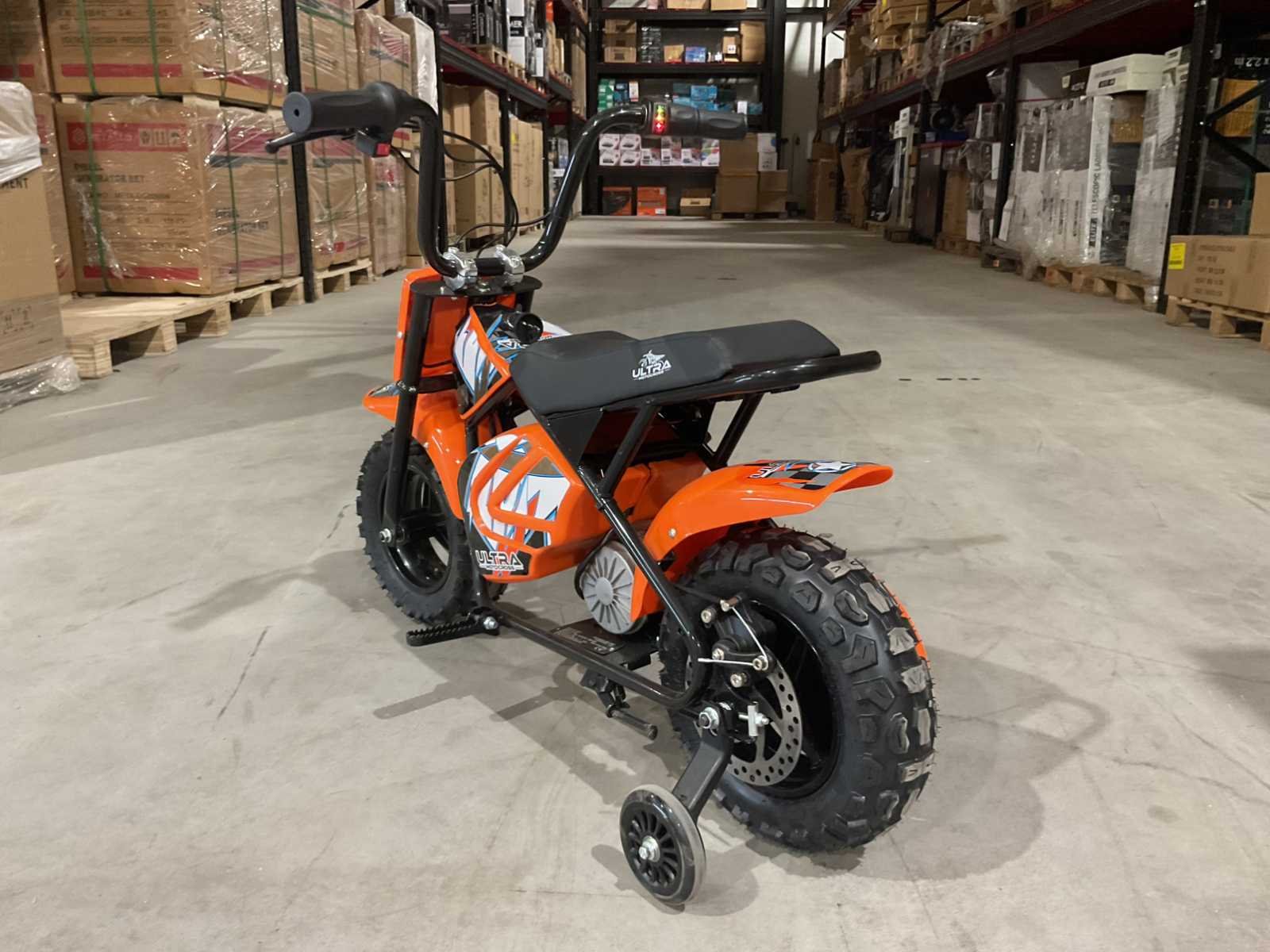 Voorzien van 250W elektrische motor; bandenmaat 7,5” inch; ongebruikt in doos (transport afmetingen 95x25x50 cm) Merk: Ultra Motocross Type: Monkey bike OR Gewicht: 23kg Kleur: Oranje Transmissie: Automaat Aantal sleutels: 2 Bouwjaar: 2025