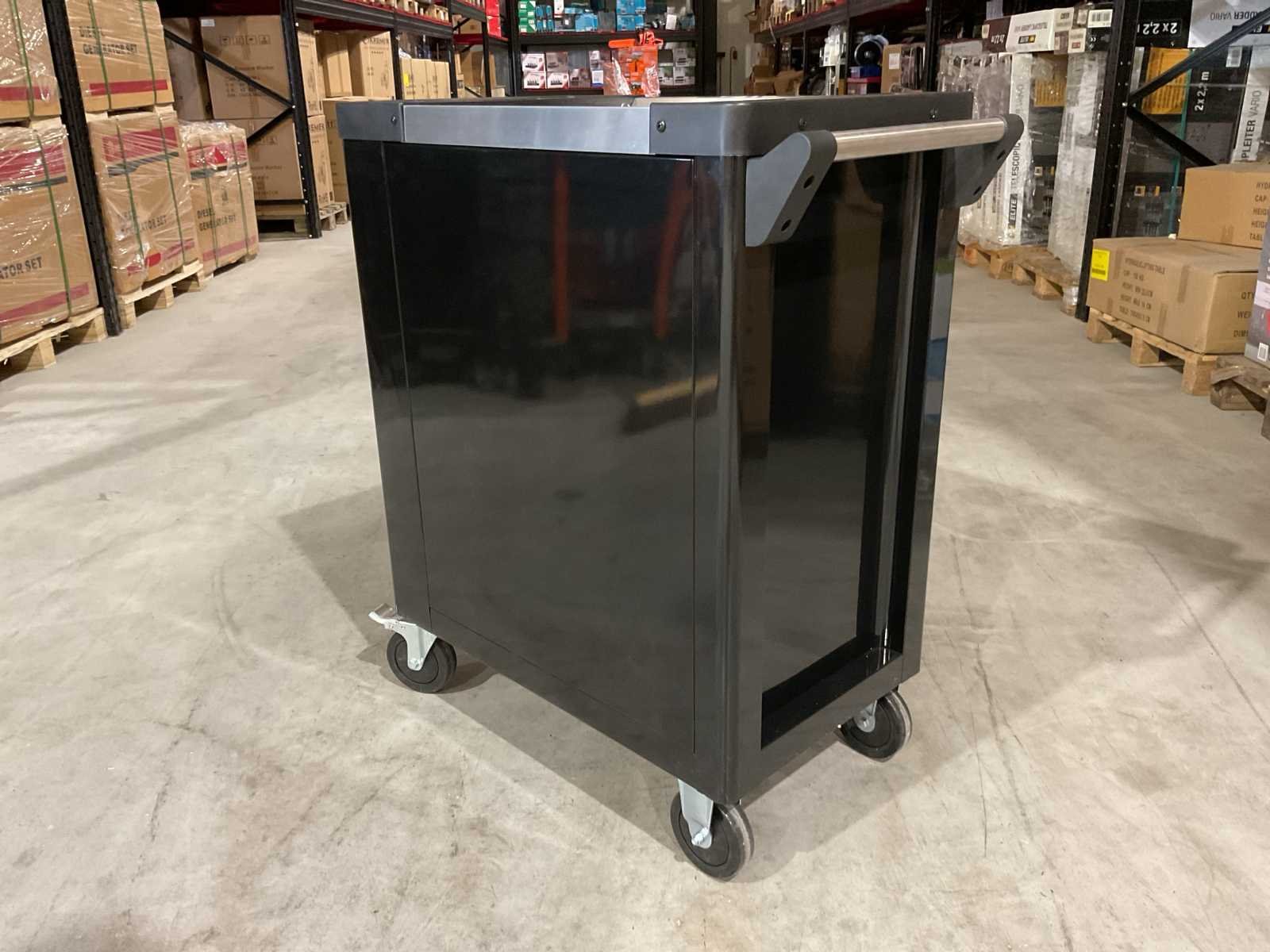Voorzien van 7 lades waarvan 7 gevuld met gereedschap; professioneel chroom-vanadium gereedschap; heavy duty gereedschapswagen; stevig werkblad; 4 wielen; stevig handvat; ongebruikt in doos (transport afmetingen 80x50x85 cm) Merk: Wöhrstahl Type: Deutschland 7/7 Bouwjaar: 2025 Aantal laden: 7 Met inhoud: true Eigen gewicht: 75kg Totale afmeting L: 800mm Totale afmeting Breedte: 500mm Totale afmeting Hoogte: 850mm