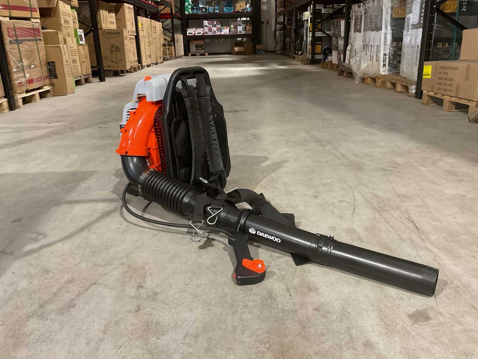Voorzien van 4-takt motor; Vermogen: 2,2 kW; Maximaal motortoerental: 7000 rpm; Brandstoftank: 2000 ml; Olietank 300 ml; Luchtsnelheid: 82 m/s; Luchtvolume: 950m³/h; Ongebruikt in doos (Afmeting transport verpakking 480x415x535 mm lxbxh, gewicht 14 kg) Merk: Daewoo Type: DABL7662 Bouwjaar: 2025 Brandstofmotor aangedreven: true Brandstof: Benzine 4-takt Eigen gewicht: 14kg Totale afmeting L: 480mm Totale afmeting Breedte: 415mm Totale afmeting Hoogte: 535mm