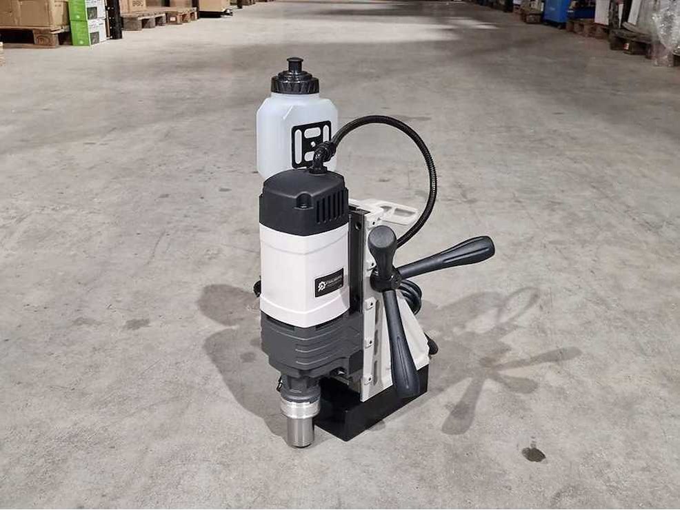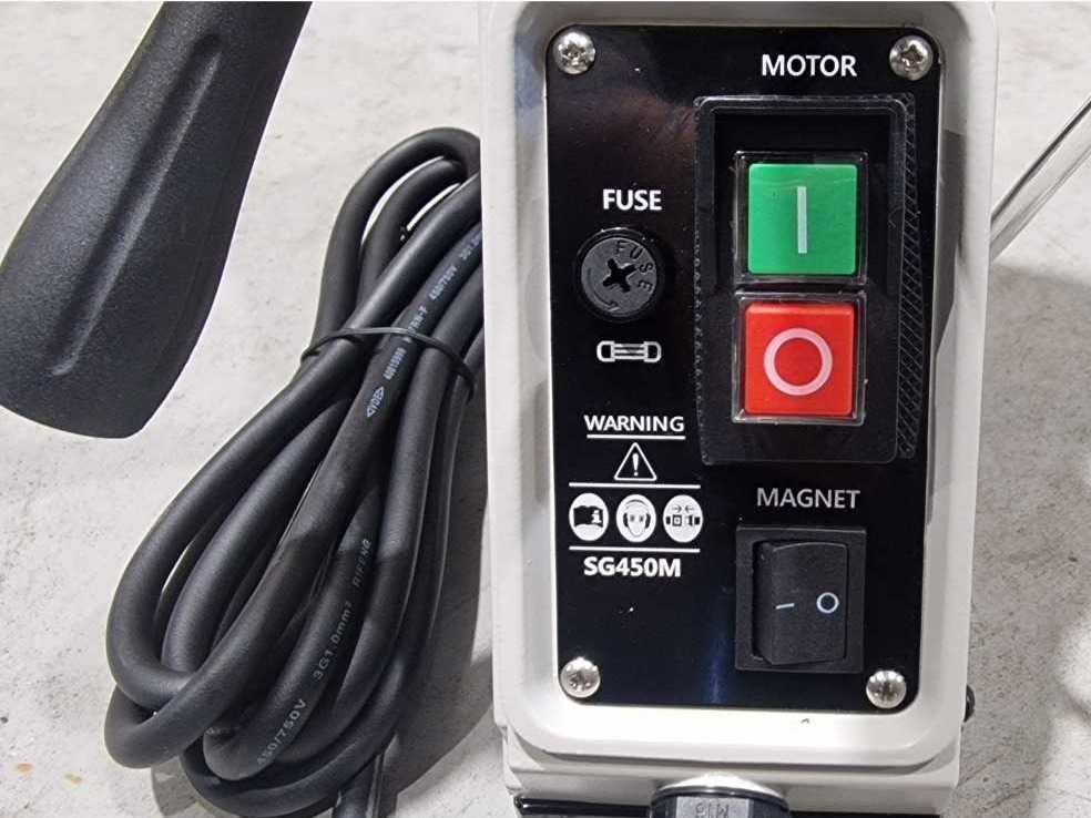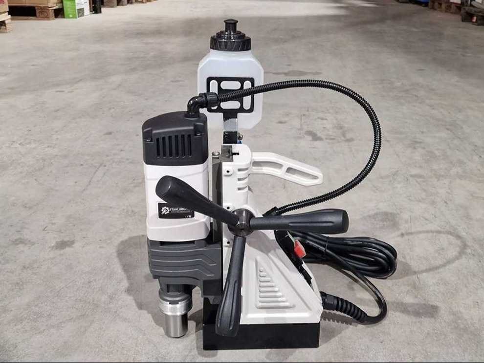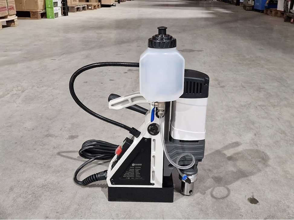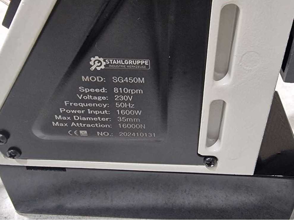Voorzien van Magneet Kolomboor; 3x Inschroef Handvaten; Spanband; Reservoir voor koel olie; 230V; Magnetische kracht: 16000N; Vermogen: 1600W; Rotatie snelheid: 810rpm; Kernboor diameter: 35mm; Maximale snijdiepte: 35mm; Slag: 210mm; Gewicht: 14kg 17kg verpakking maten lxbxh - 520x165x430 mm; Ongebruikt in doos Merk: Stahlgruppe Type: SG450M Bouwjaar: 2025