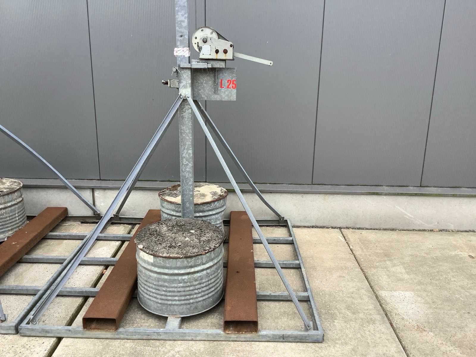Lichtmast neerhaalbaar 6meter hoog en is nog uitschuifbaar Met betonen poot