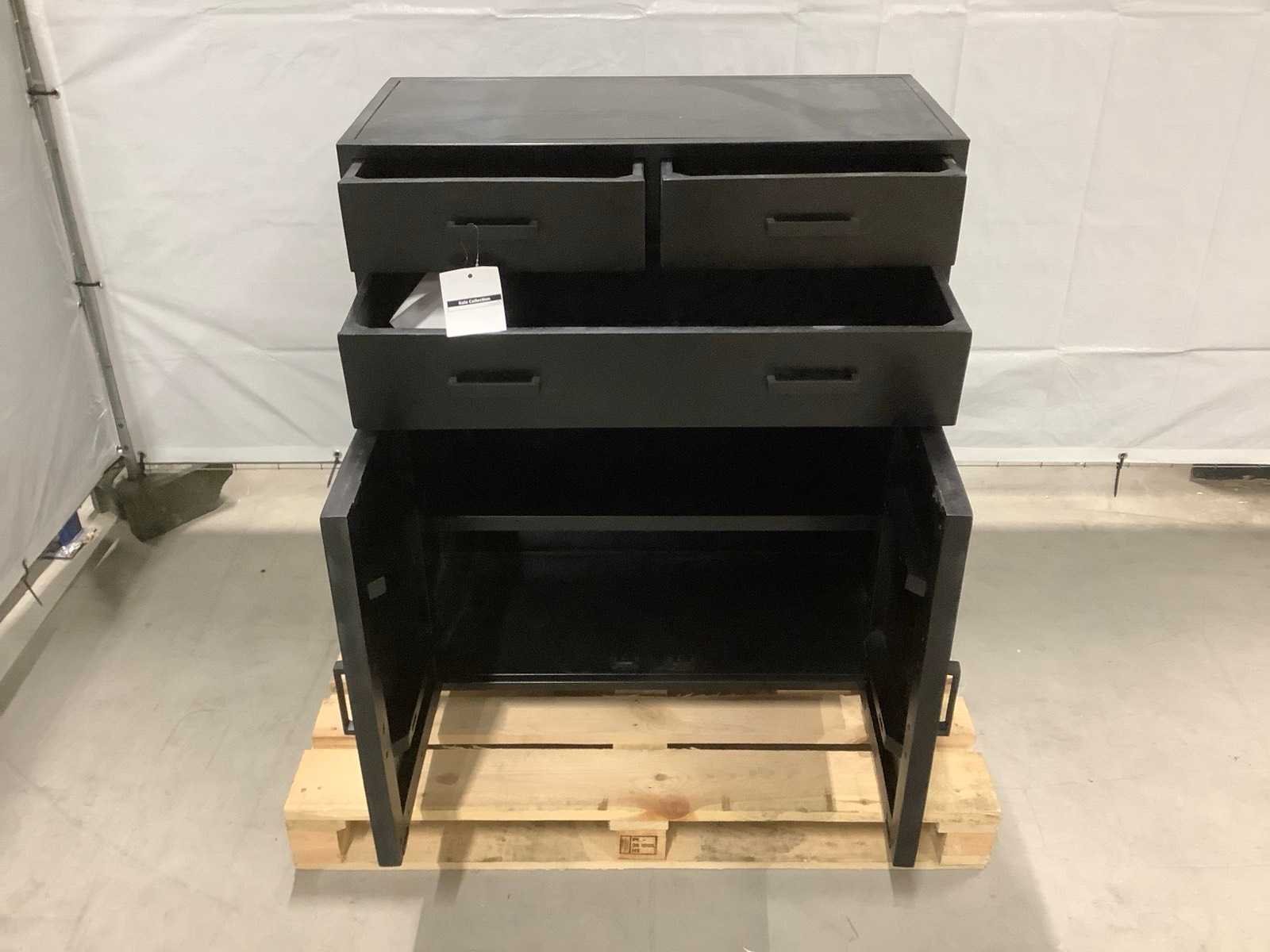 Dit betreft een kast afkomstig van een grote online retailer. De producten kunnen nieuw, beschadigd,werkend of geschikt voor onderdelen zijn. Wij adviseren om langs te komen op de kijkdag om een goed beeld te krijgen van de staat van de producten en de reden van retour. Merk: Livingfurn Model: Kala Kleur: Zwart Lengte: 85cm Breedte: 40cm Hoogte: 105cm