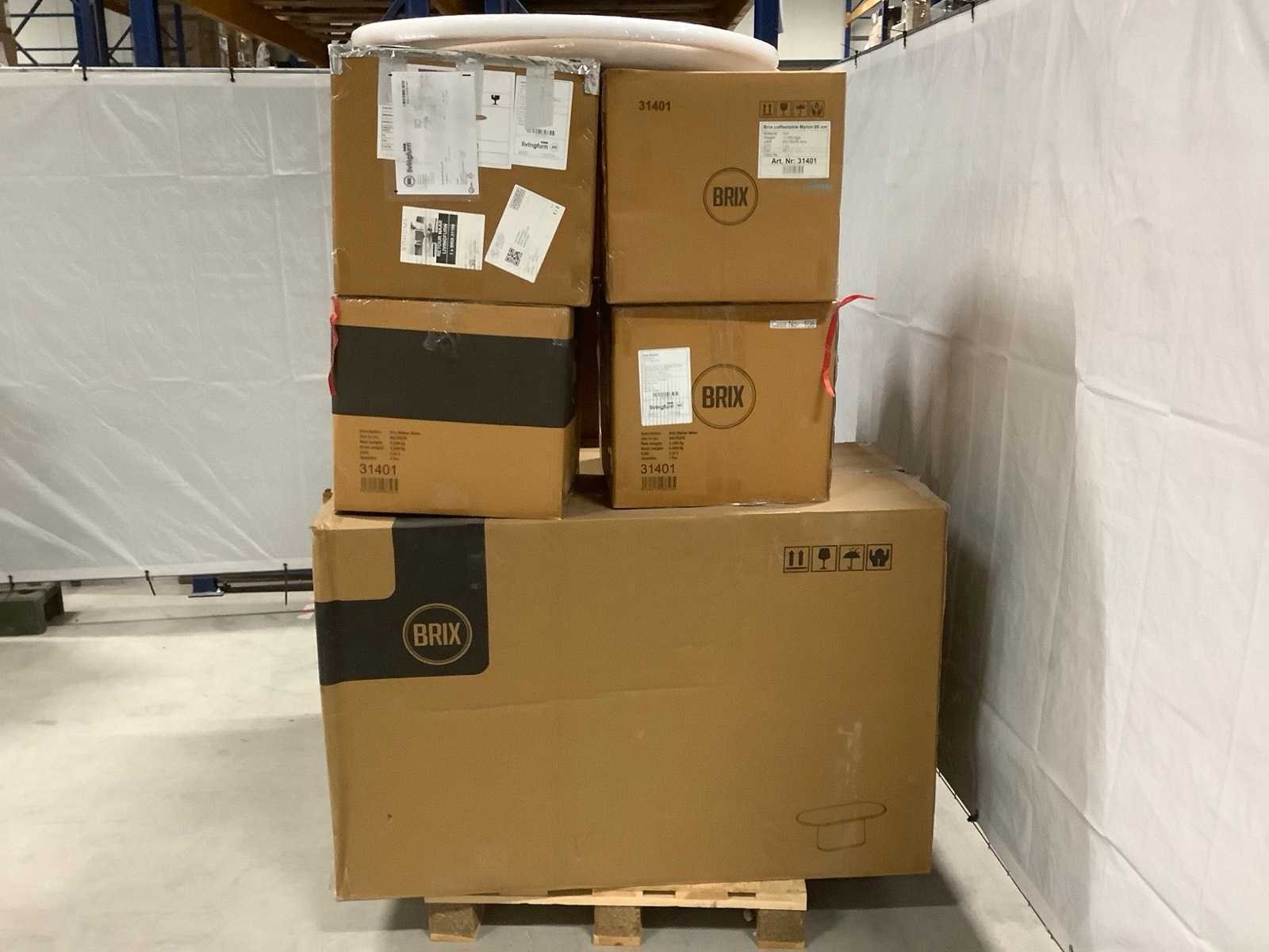Dit betreft een partij tafelbladen en poten afkomstig van een grote online retailer. De partij bevat 5 pallets diverse artikelen. De producten kunnen nieuw, beschadigd,werkend of geschikt voor onderdelen zijn. Wij adviseren om langs te komen op de kijkdag om een goed beeld te krijgen van de staat van de producten en de reden van retour. Merk: Partij