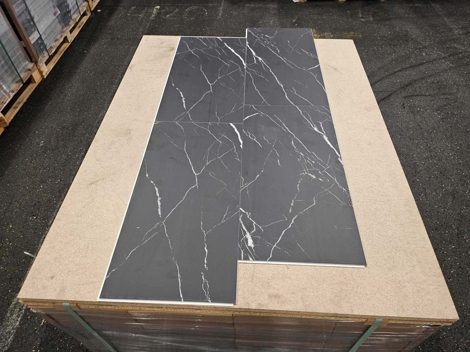 PVC click vloer, click tegel, water bestendig, vorstbestendig, ideaal voor vloerverwarming, kras en slijtvast, anti slip, 28 pakken a 2,05 m2 Merk: Airial flooring Product type: PVC Oppervlakte: 57m² Geschikt voor vloerverwarming: Ja V-groef: Nee Afwerking: Voelbaar structuur, anti slip Aantal m² per verpakking: 2.05m² Kleur: Marmor dark 808 Gewicht: 475kg Lengte: 610mm Breedte: 305mm Materiaal: PVC/SPC
