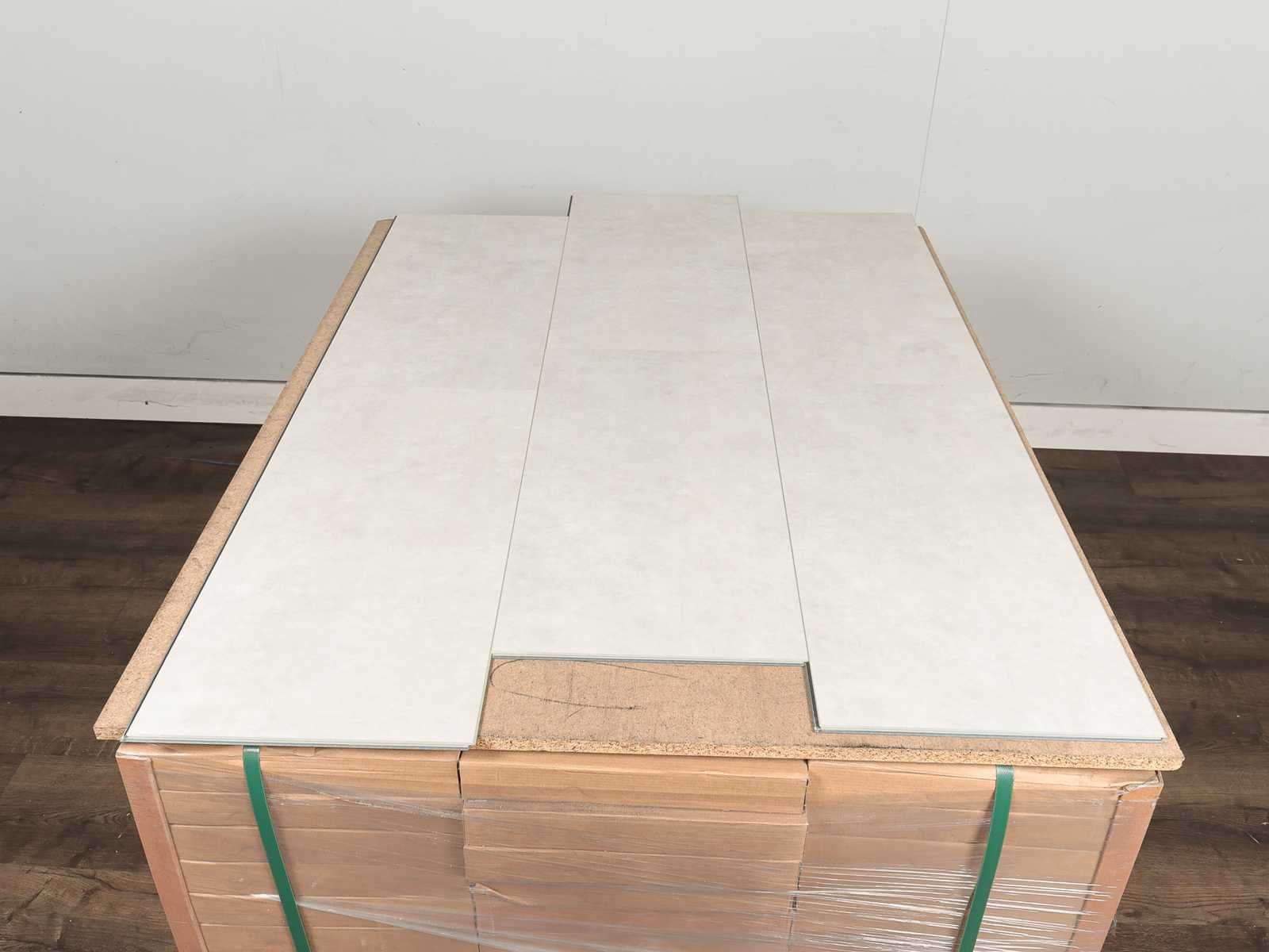 PVC click vloer, tegel formaat, water bestendig, vorstbestendig, ideaal voor vloerverwarming, kras en slijtvast, anti slip, 40 pakken a 2,373 m2 Within 14 days Merk: Classen Product type: PVC Oppervlakte: 94m² Geschikt voor vloerverwarming: Ja V-groef: Ja Afwerking: Voelbaar structuur, anti slip, met v-groef Aantal m² per verpakking: 2.373m² Kleur: Brezza Gewicht: 680kg Lengte: 638mm Breedte: 310mm Materiaal: PVC/SPC