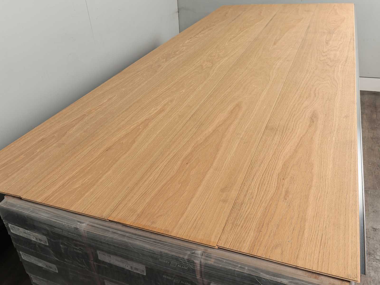 Gemakkelijk te leggen wegens aluminium clicksysteem, eiken fineer parketvloer, Berry Alloc Senses XL product, voorzien van filt onderlaag, voorzien van vochtafwerend HDF core, eiken fineer toplaag, strong woodfloor collectie, toplaag is beschermd met Ultimtec extra mat lak laag, geschikt voor alle soorten vloer en koelverwarmingen, vloer is van hoogwaardig Europees eiken hout, voorzien van PEFC certificaat, A+ emissie label, Kant en klaar behandeld, dikte 10,1 mm, 26 pakken a 2,323 m2 Within 14 days Merk: Berry Alloc Product type: Fineer parket Oppervlakte: 60m² Geschikt voor vloerverwarming: Ja V-groef: Ja Afwerking: Extra mat gelakt, Ultimtec, vocht afwerend, met v-groef Aantal m² per verpakking: 2.323m² Kleur: Calm 001 Natural 1276 Gewicht: 520kg Lengte: 2410mm Breedte: 241mm Materiaal: Eiken HDF