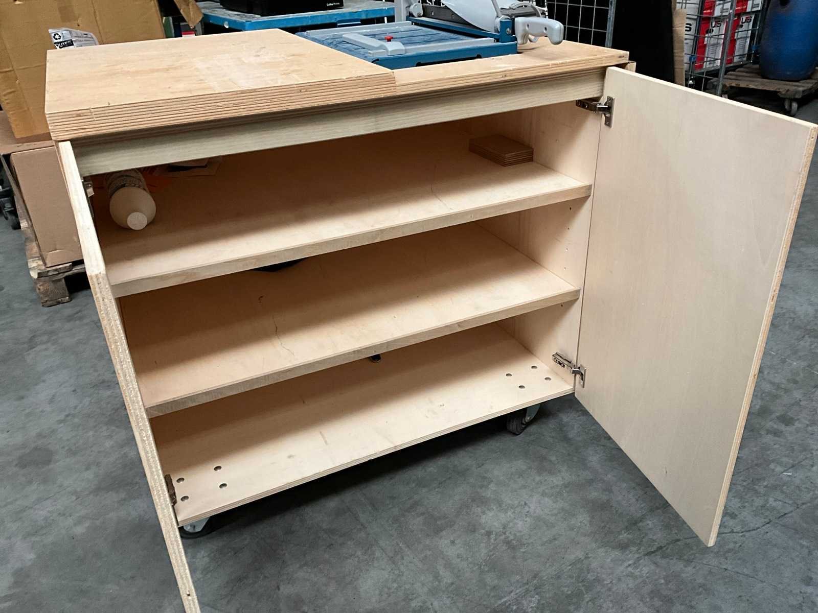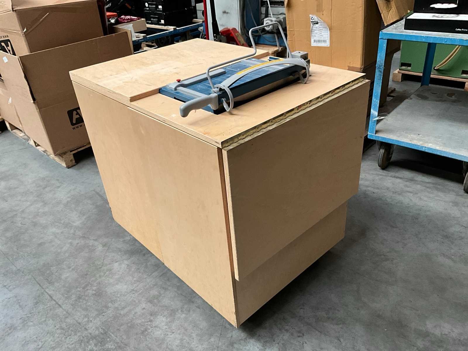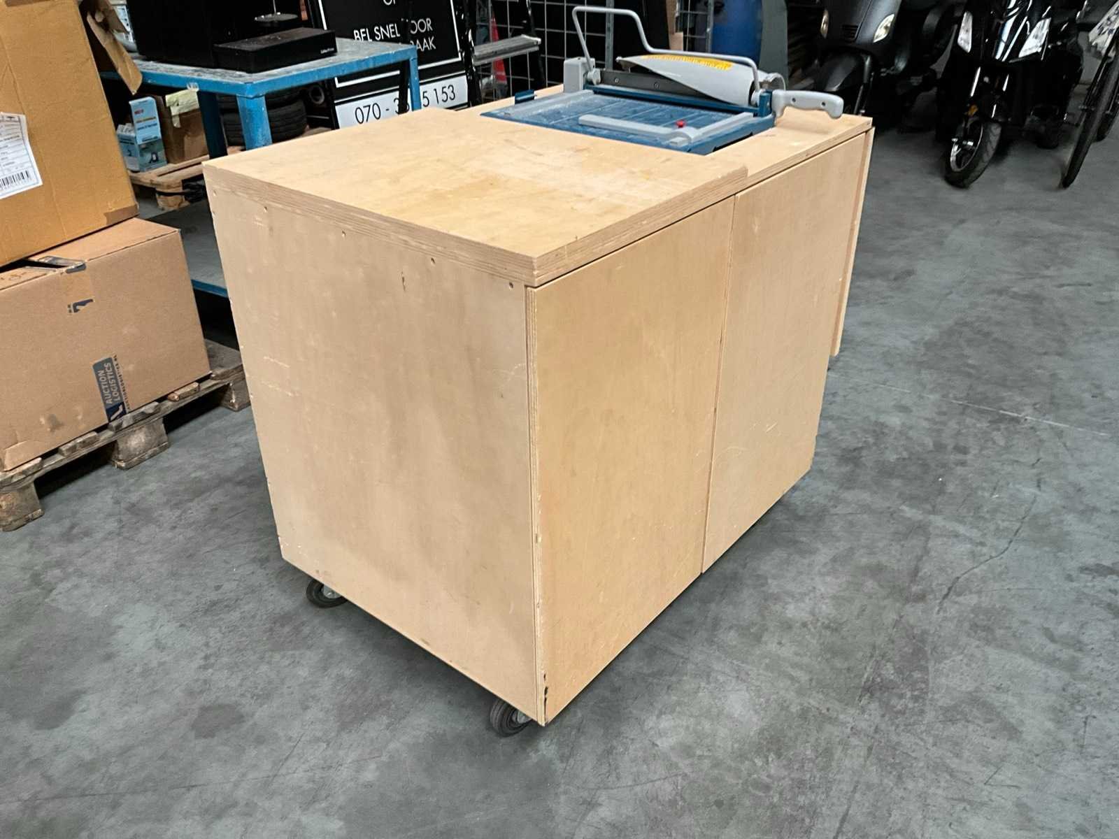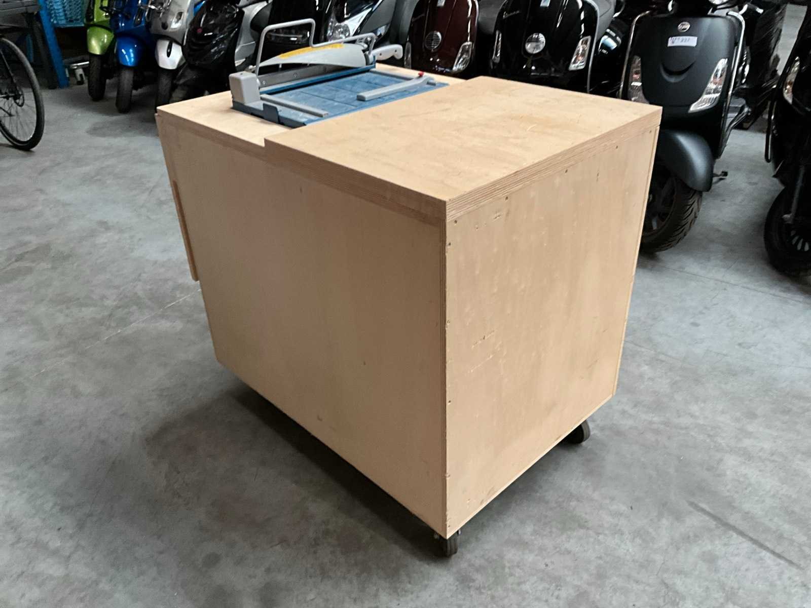 Op verrijdbaar werkkast, wegklapbare tafel Merk: Dahle Type: 564 Lengte: 110cm Breedte: 70cm Hoogte: 120cm