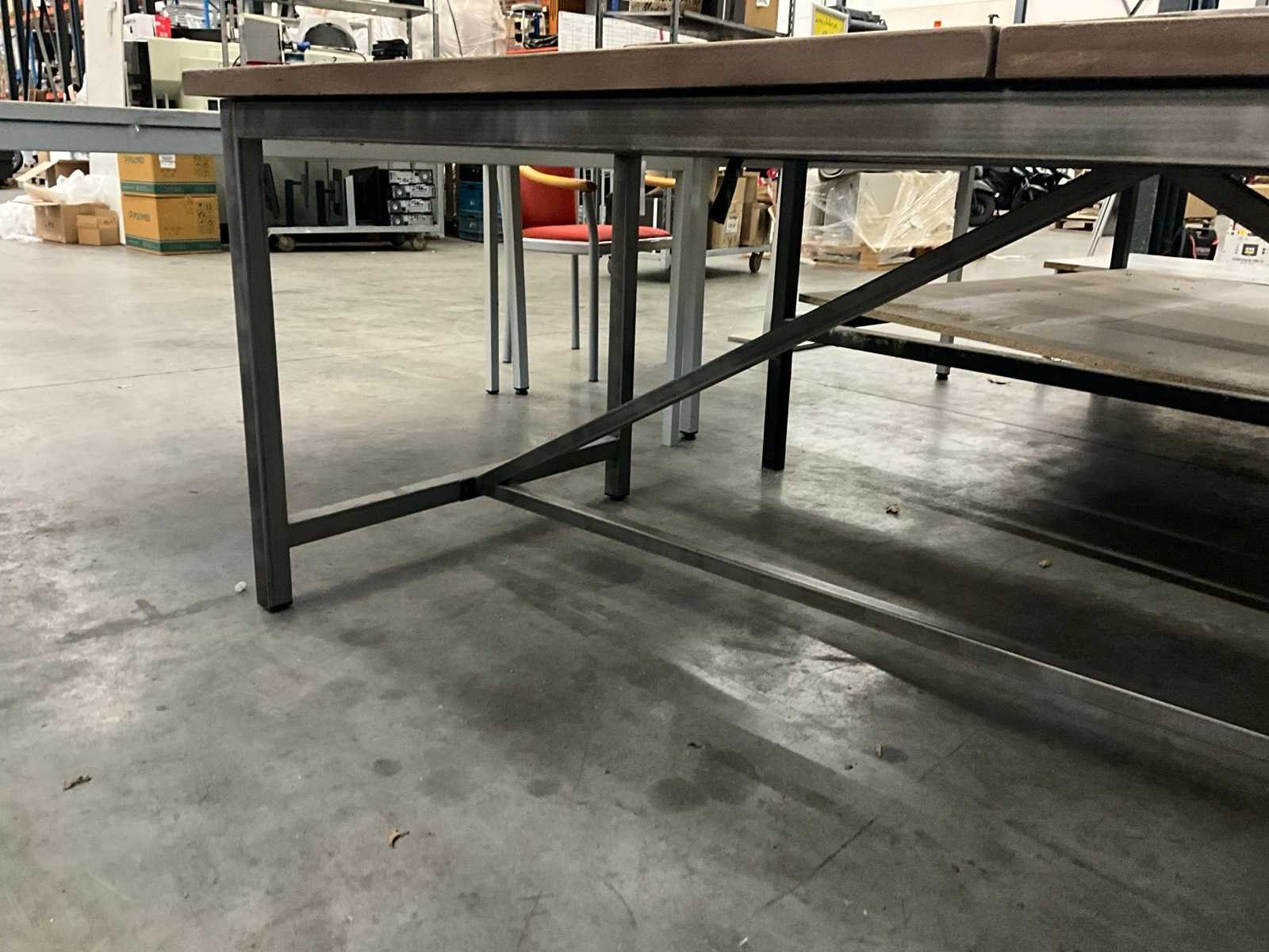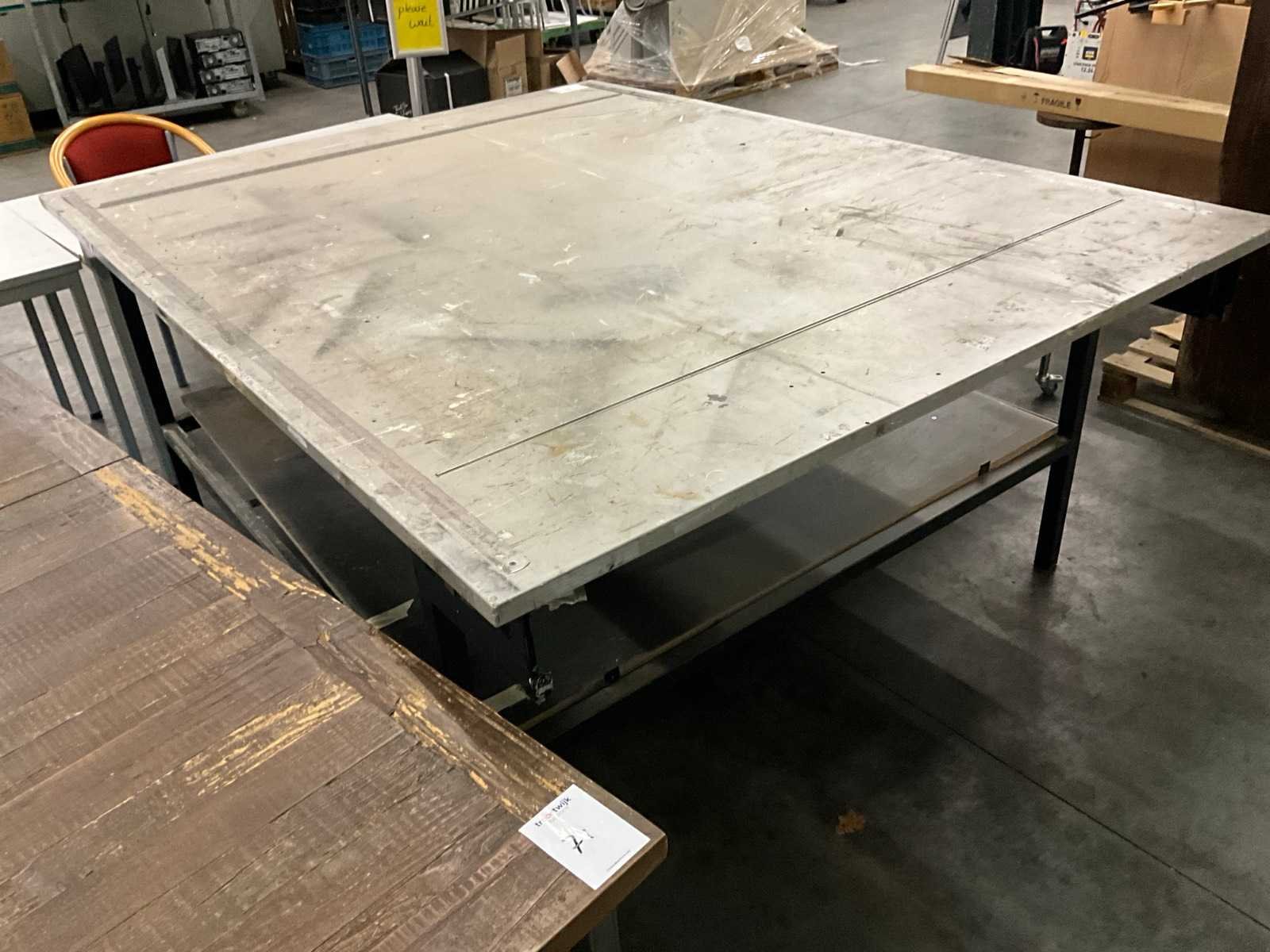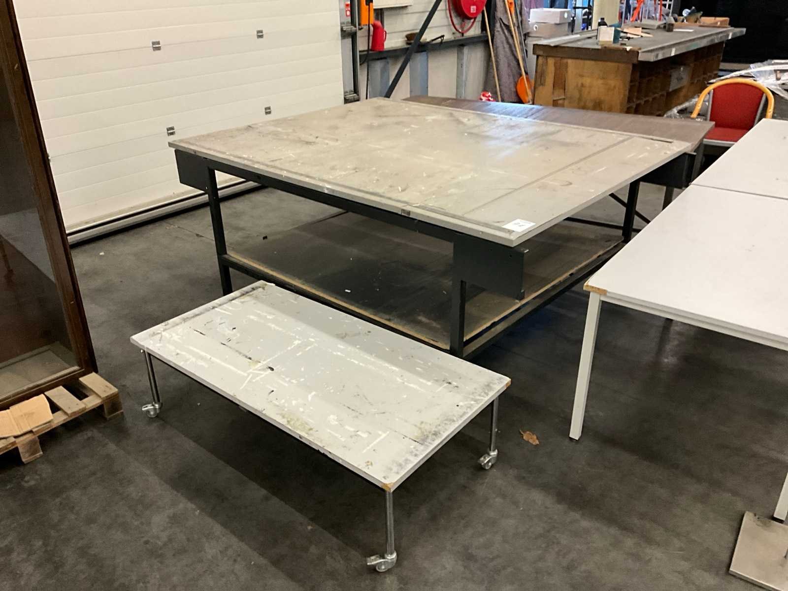 Riviera Mison eettafel 90x230cm, 80cm hoog, werktafel 221x166x94cm met 2m linialen in werkblad, tafel op wielen 140x70cm, 40cm hoog, 4x zwenkwiel