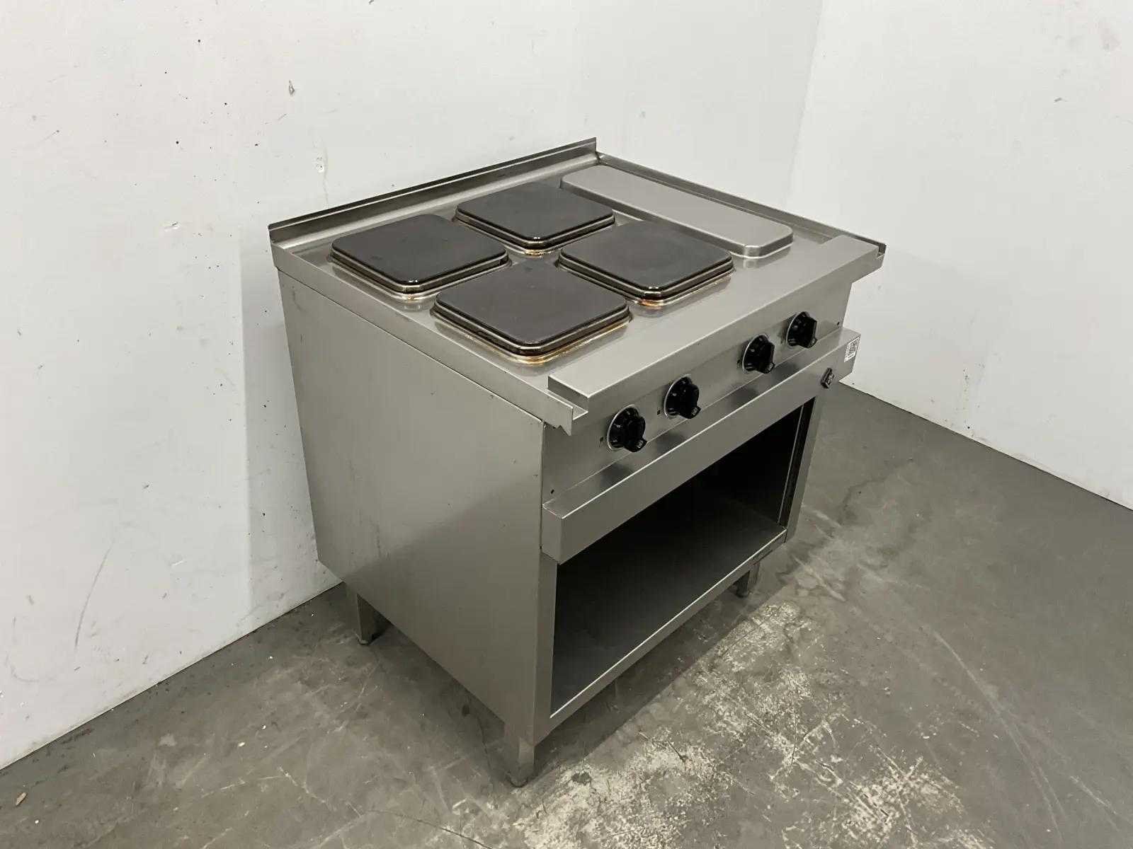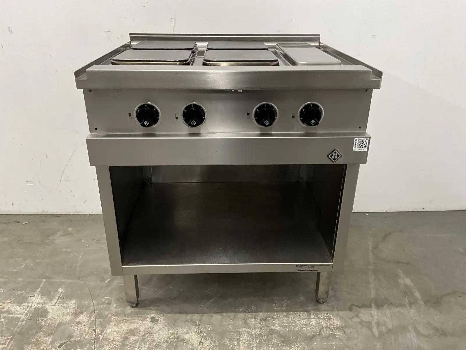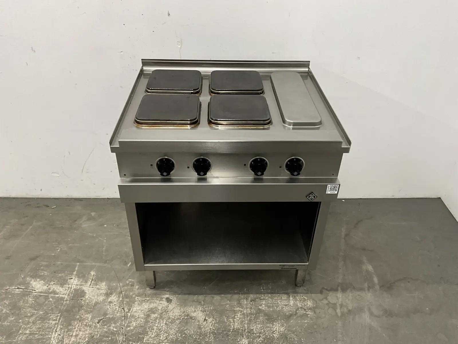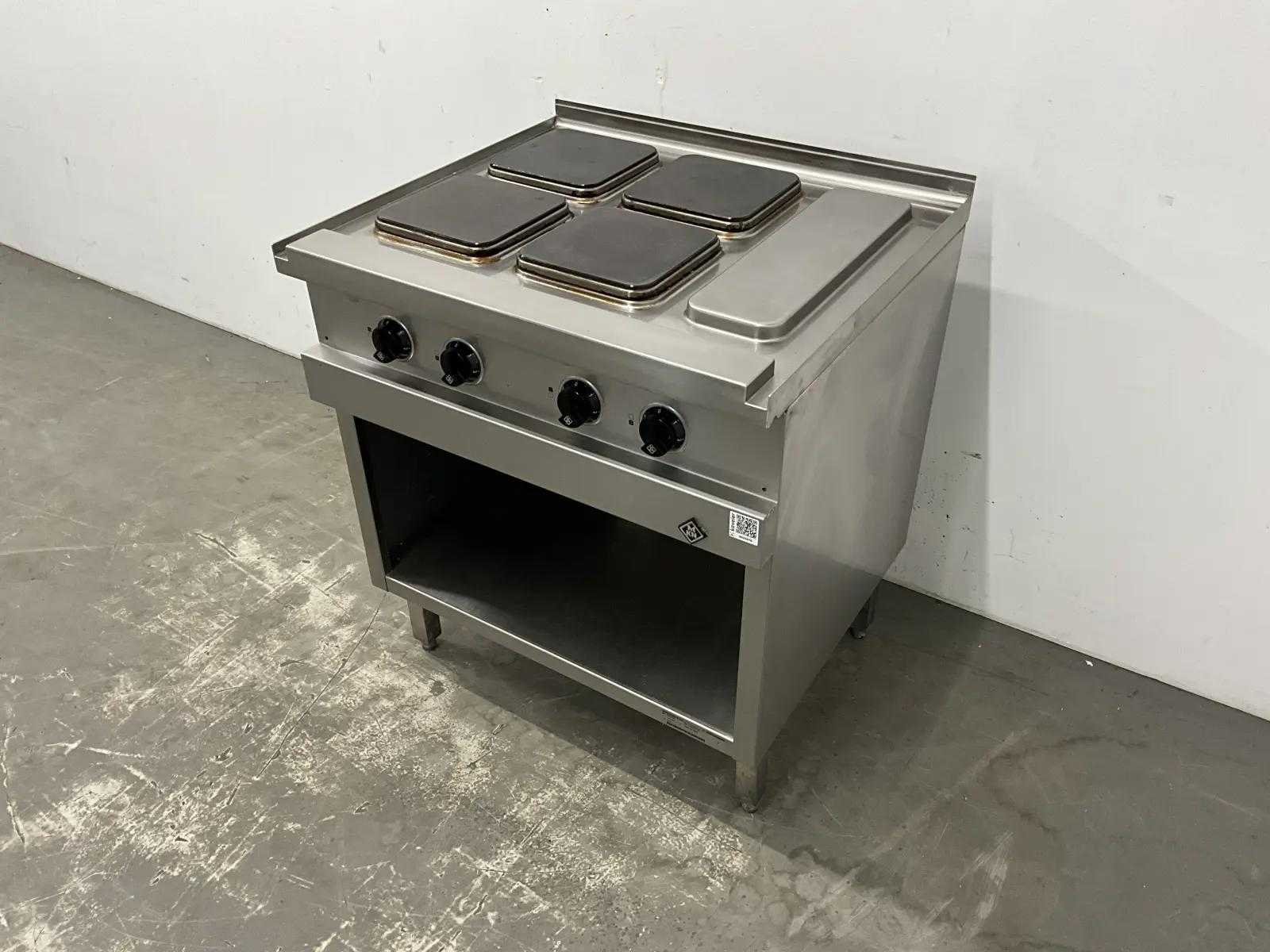 • 4 x 2,6 kW • Snel verwarmende vierkante kookplaten, elk 220x220 mm. • 7-standenschakelaar om het vermogen van elke zone apart te regelen • De temperatuur zal automatisch met 50% verlagen wanneer de kookplaten niet in gebruik zijn. Merk: MKN Model: 2123202-03 Lengte: 80cm Breedte: 70cm Hoogte: 90cm Totale afmeting Breedte: 700mm Totale afmeting L: 800mm Totale afmeting Hoogte: 900mm