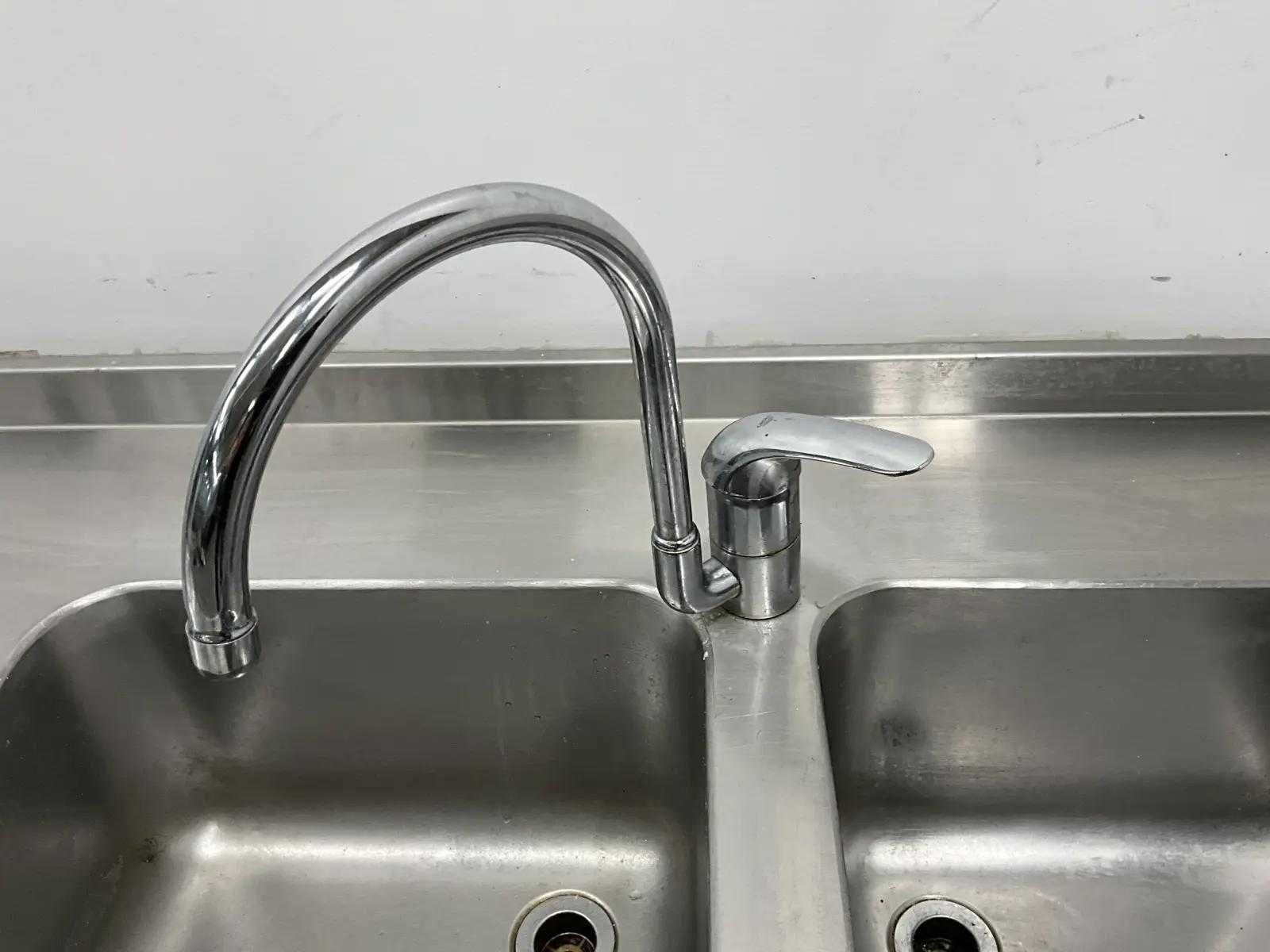 V.v. 2 spoelbakken en mengkraan. Afmeting spoelbakken (LxBxH): 40x40x25 cm. Lengte: 297cm Breedte: 70cm Hoogte: 93cm