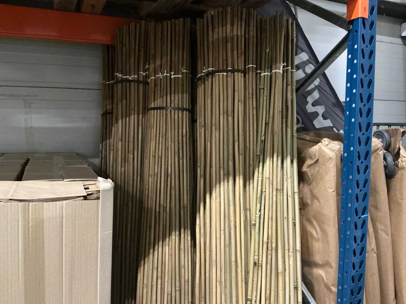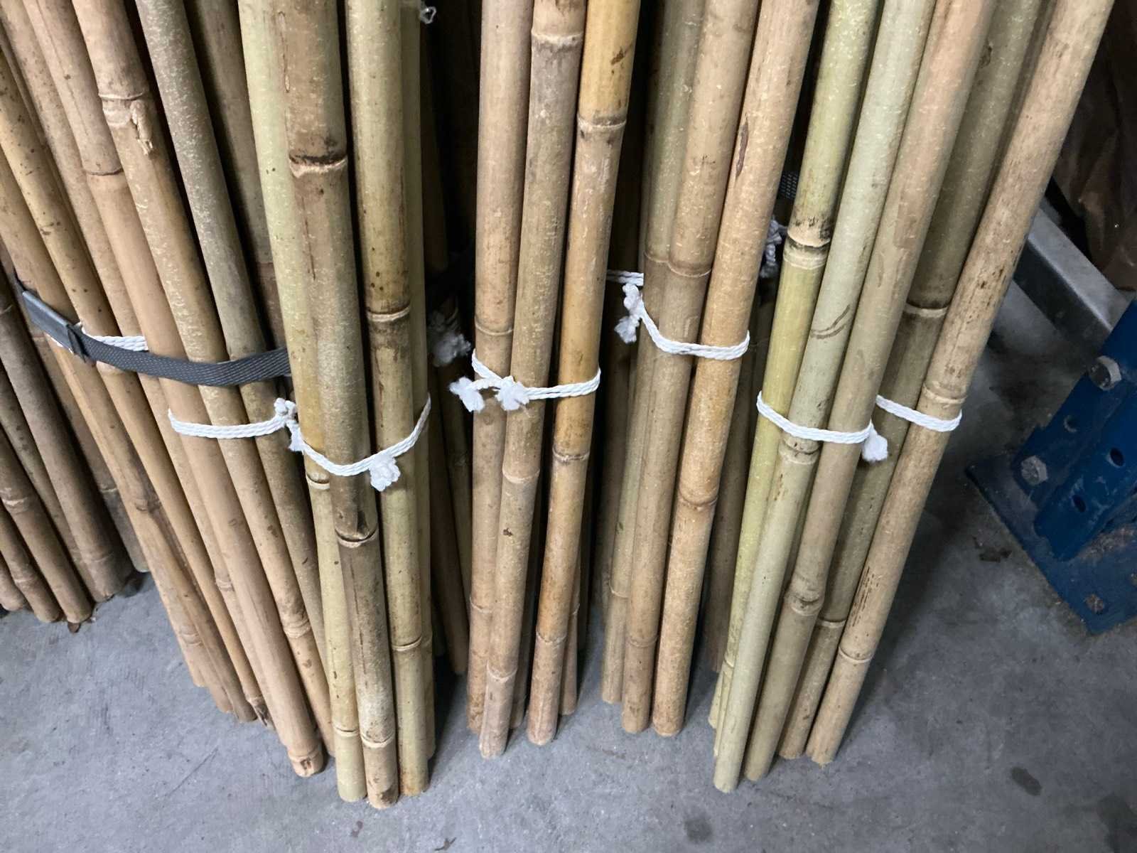 Bundel van 5 bamboestokken. 265 bundels x 5 bamboestokken = totaal 1325 bamboestokken.