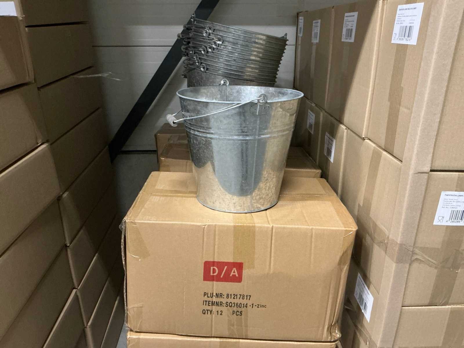 Partij zinken emmers met houten handvat (hoogte 27cm) (120x)