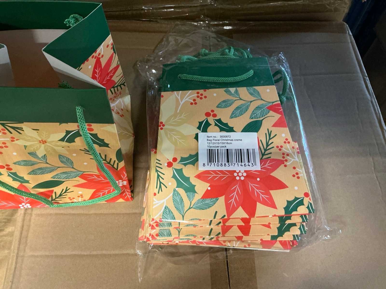 12/12X15/15X18cm. 8 dozen, per doos 240 tasjes = totaal 1920 tasjes. Tasjes zijn per 10 verpakt.