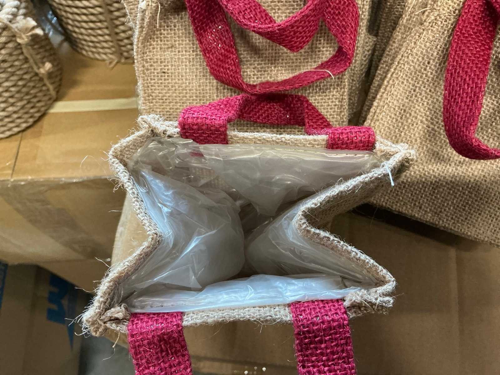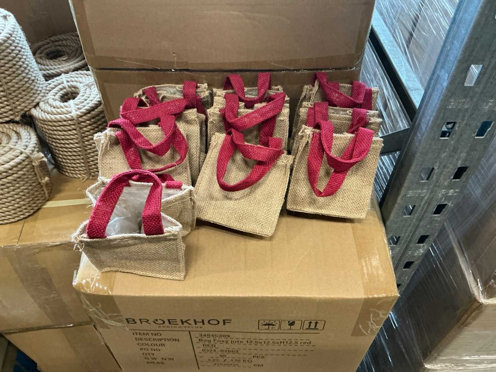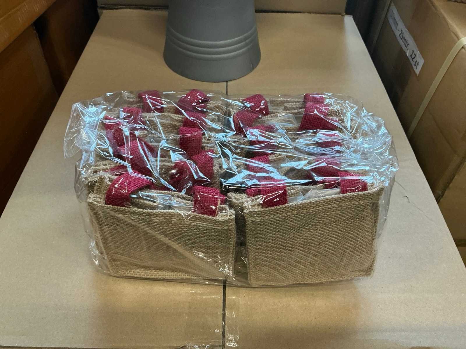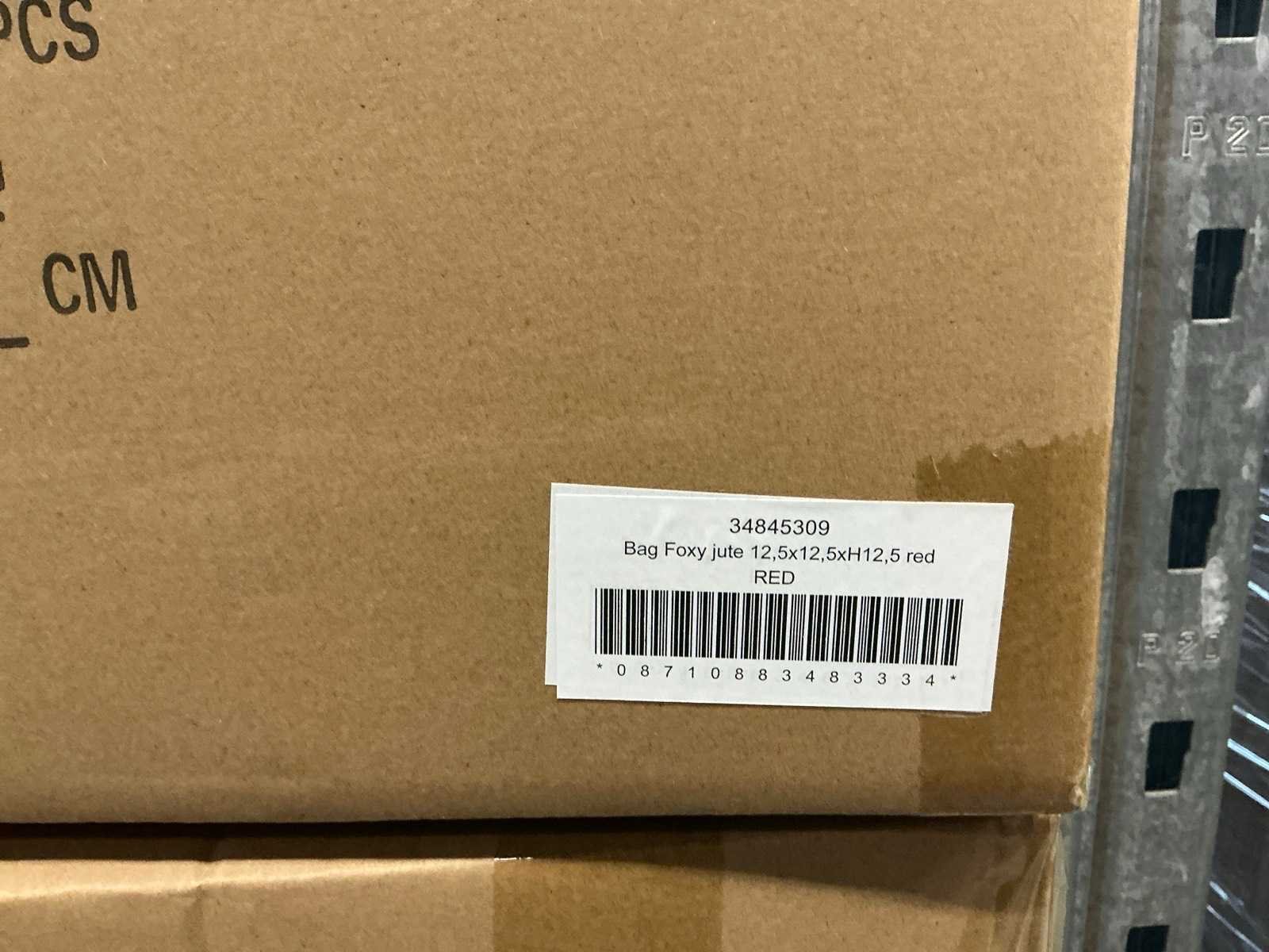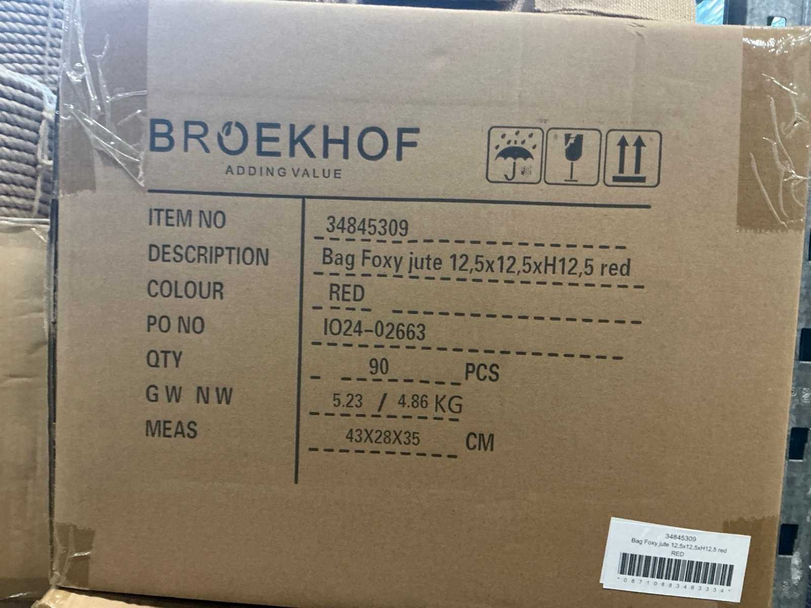 12,5x12,5xH12,5. Verpakt per 10, 9 verpakkingen per doos = 90 tasjes per doos. 14 dozen, per doos 90 tasjes = totaal 1260 tasjes.