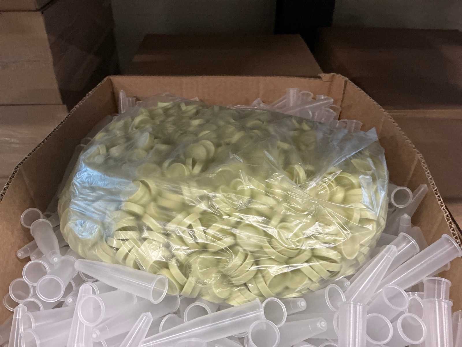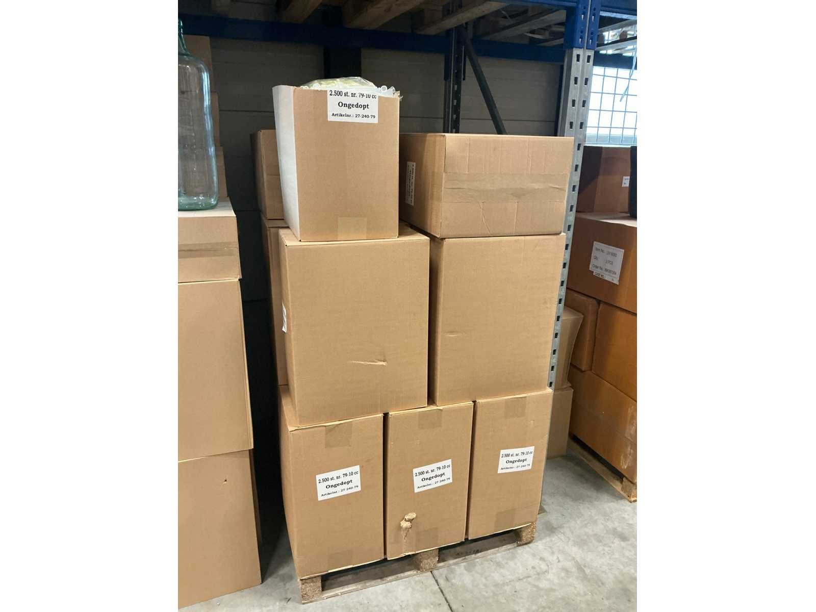 19 dozen, per doos 2500 flesjes = totaal 47500 flesjes met dop.