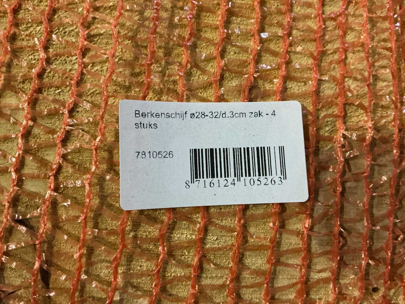 50 zakken, per zak 4 berkenschijven = totaal 200 berkenschijven. Diameter 28-32/D3cm.