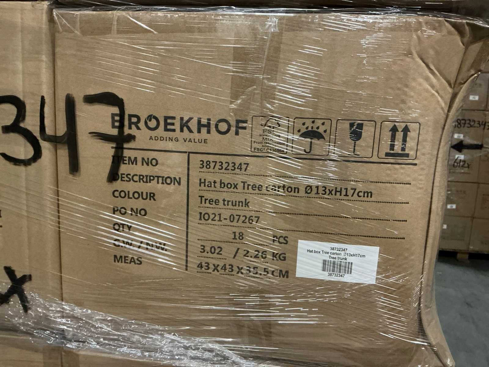 Ø13xH17cm. 34 dozen, per doos 18 Hat boxes = totaal 612 Hat boxes.
