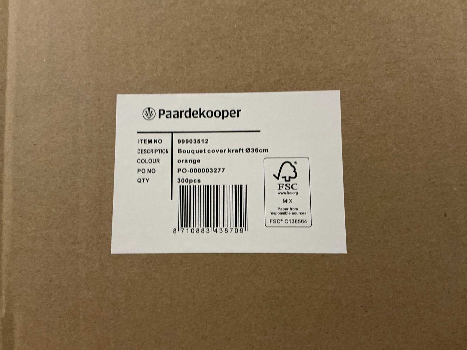 Ø36cm. 9 dozen, per doos 300 Bouquet cover kraft = totaal 2700 Bouquet cover kraft. De Bouquet cover kraft zijn per 150 verpakt. (2x 150 per doos).