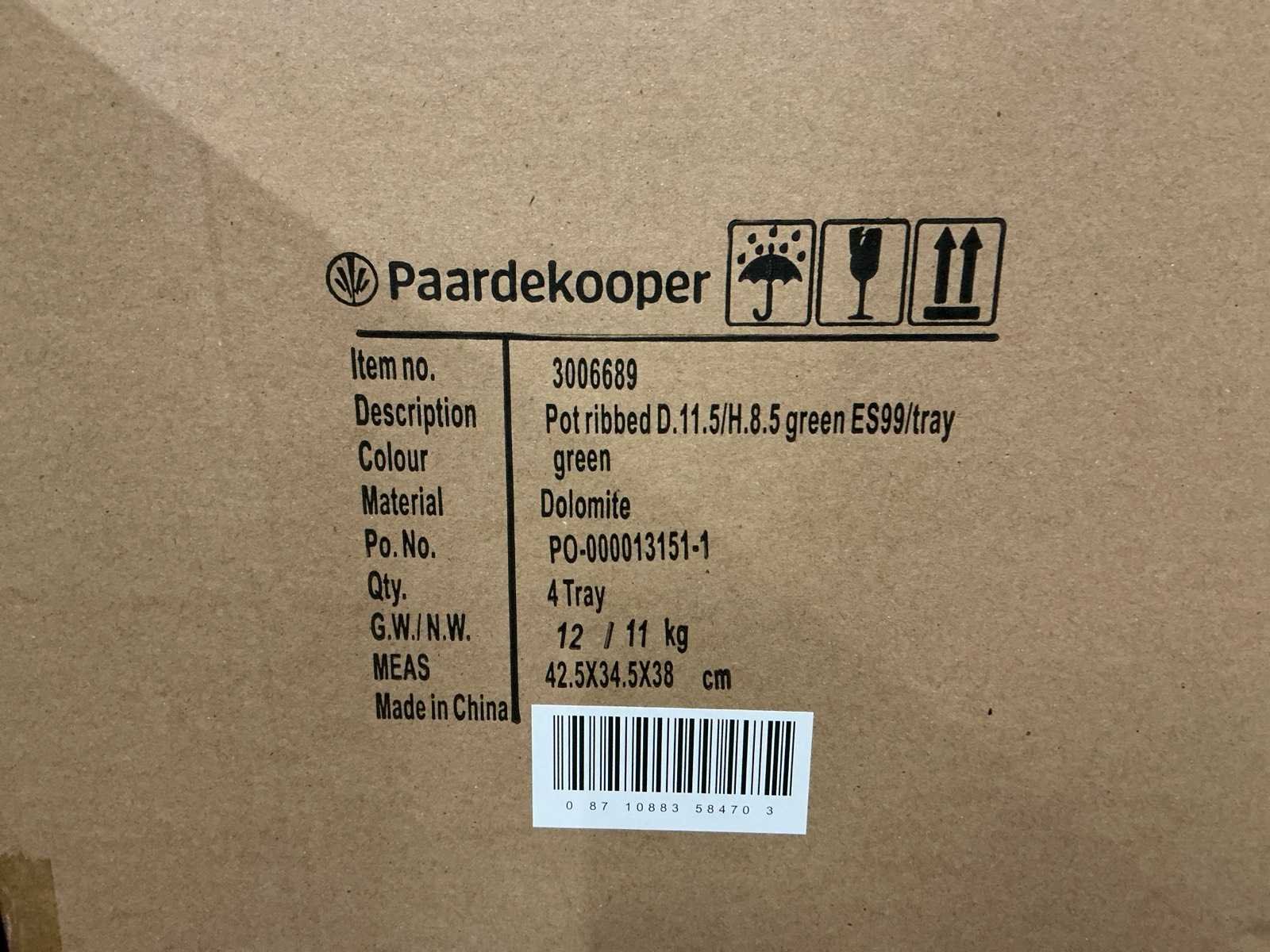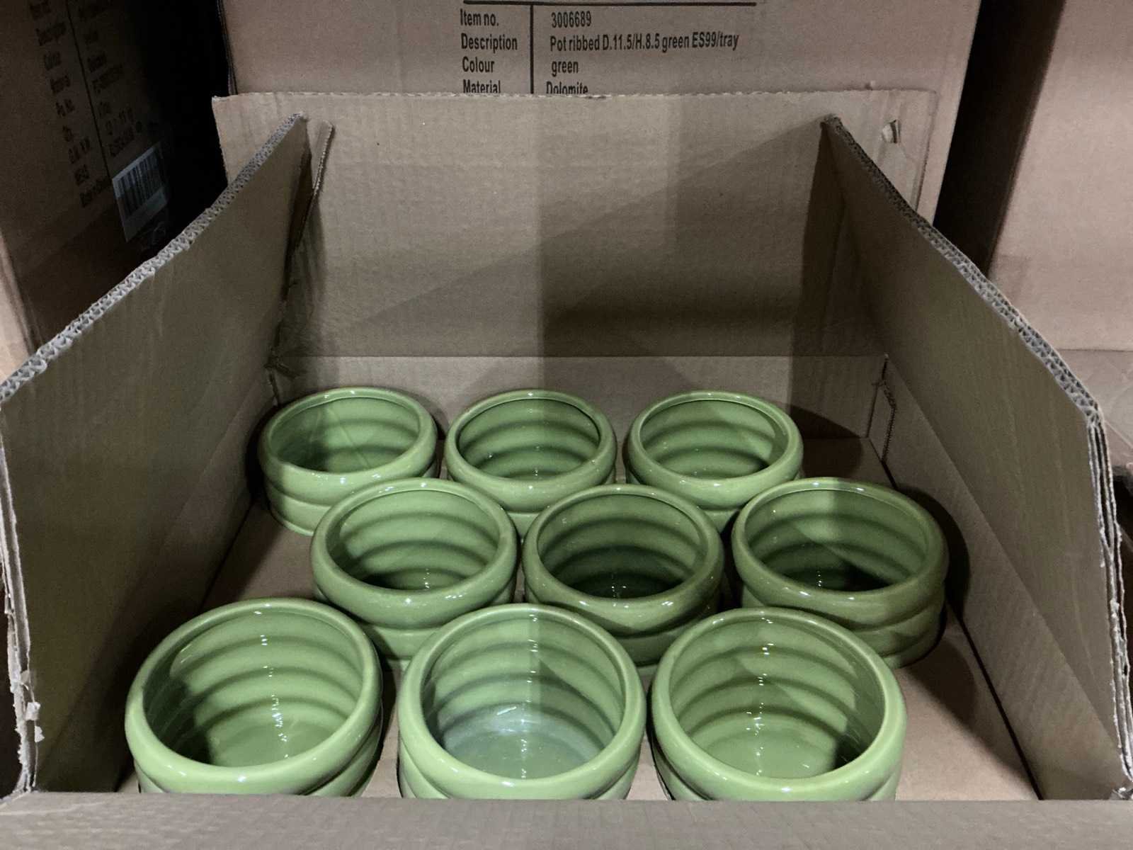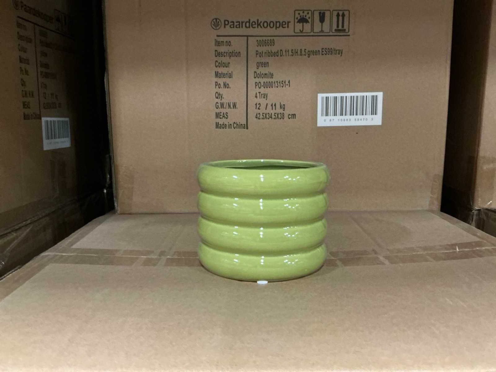 Partij potten ribbed d11,5/h8,5cm green es99/tray dolomite (504x)