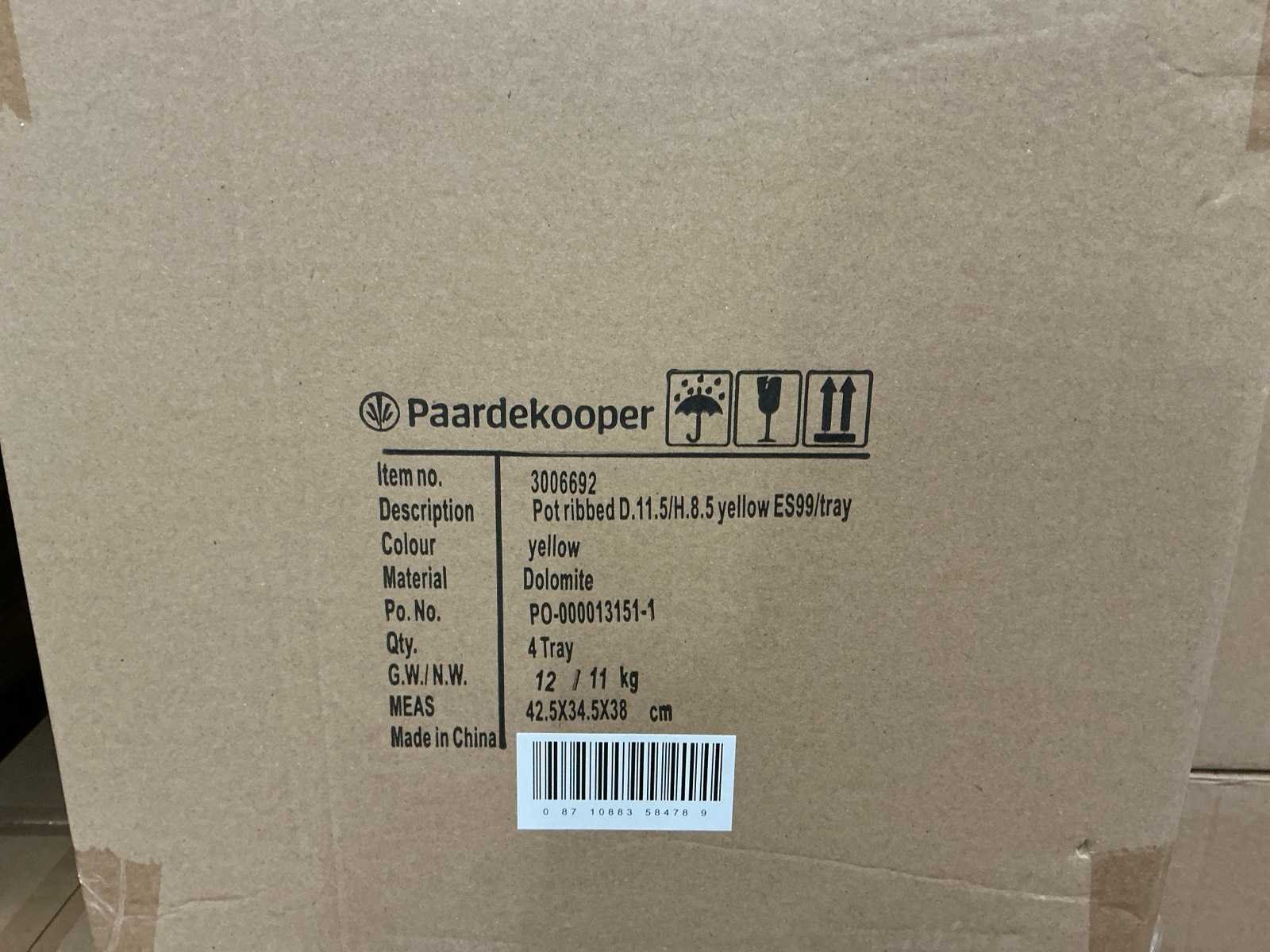 Partij potten ribbed d11,5/h8,5cm yellow es99/tray dolomite (503x)