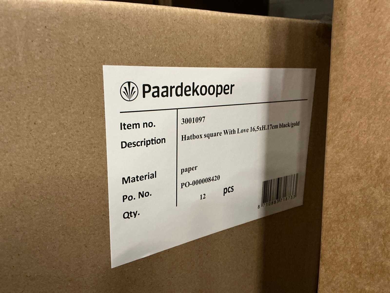 Partij hatboxes square ‘with love’ 16,5xh17cm black/gold (96x)