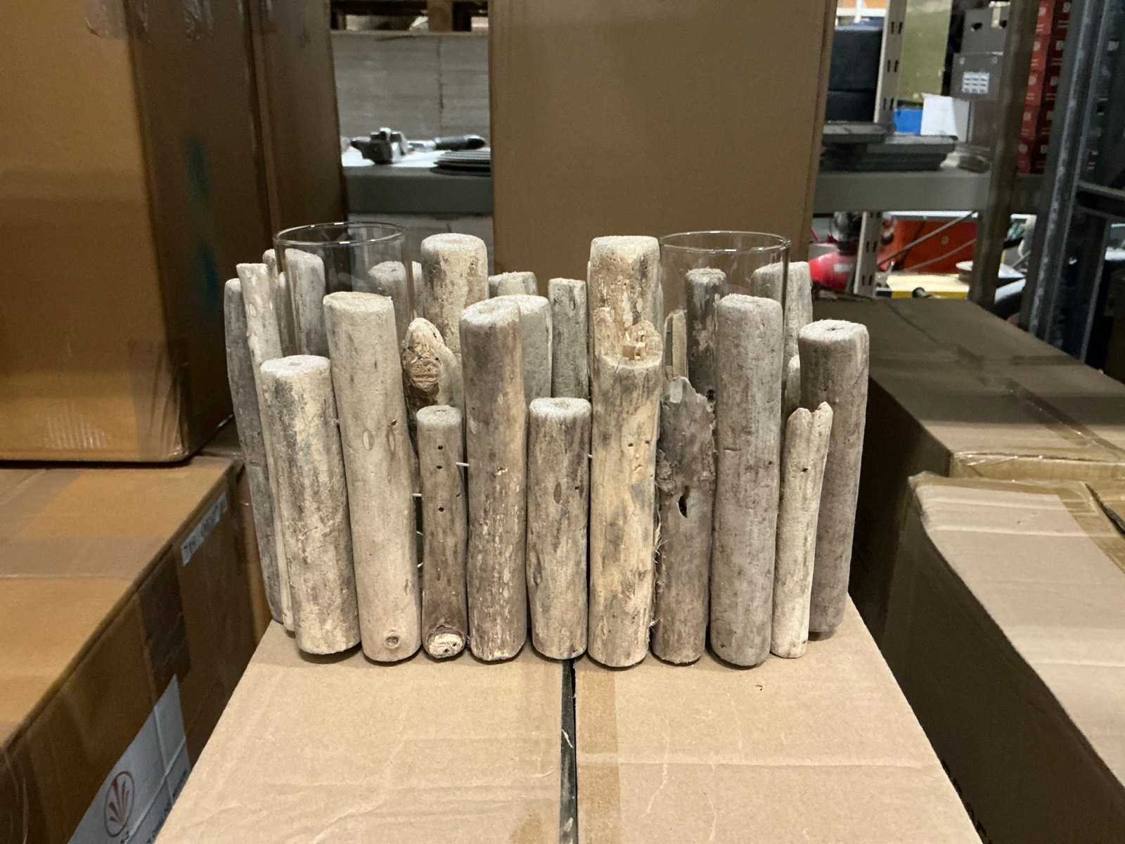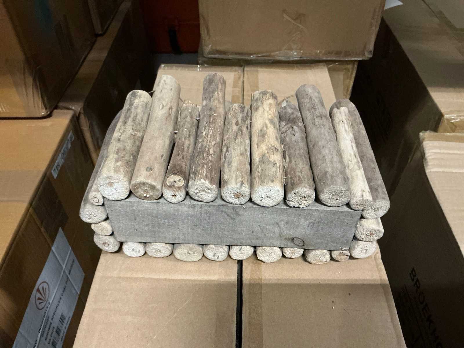 Partij wooden branches holder 2 vases 25x11x18cm (84x)
