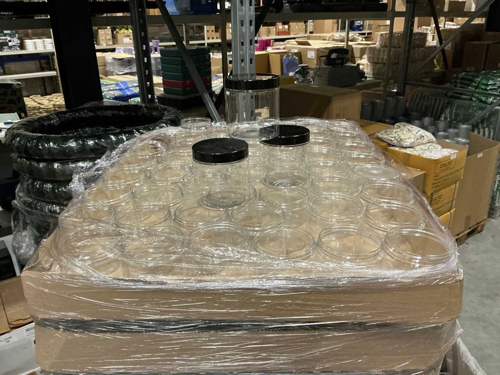 Partij transparante verpakkingspotten met zwarte deksel 500ml (850x)