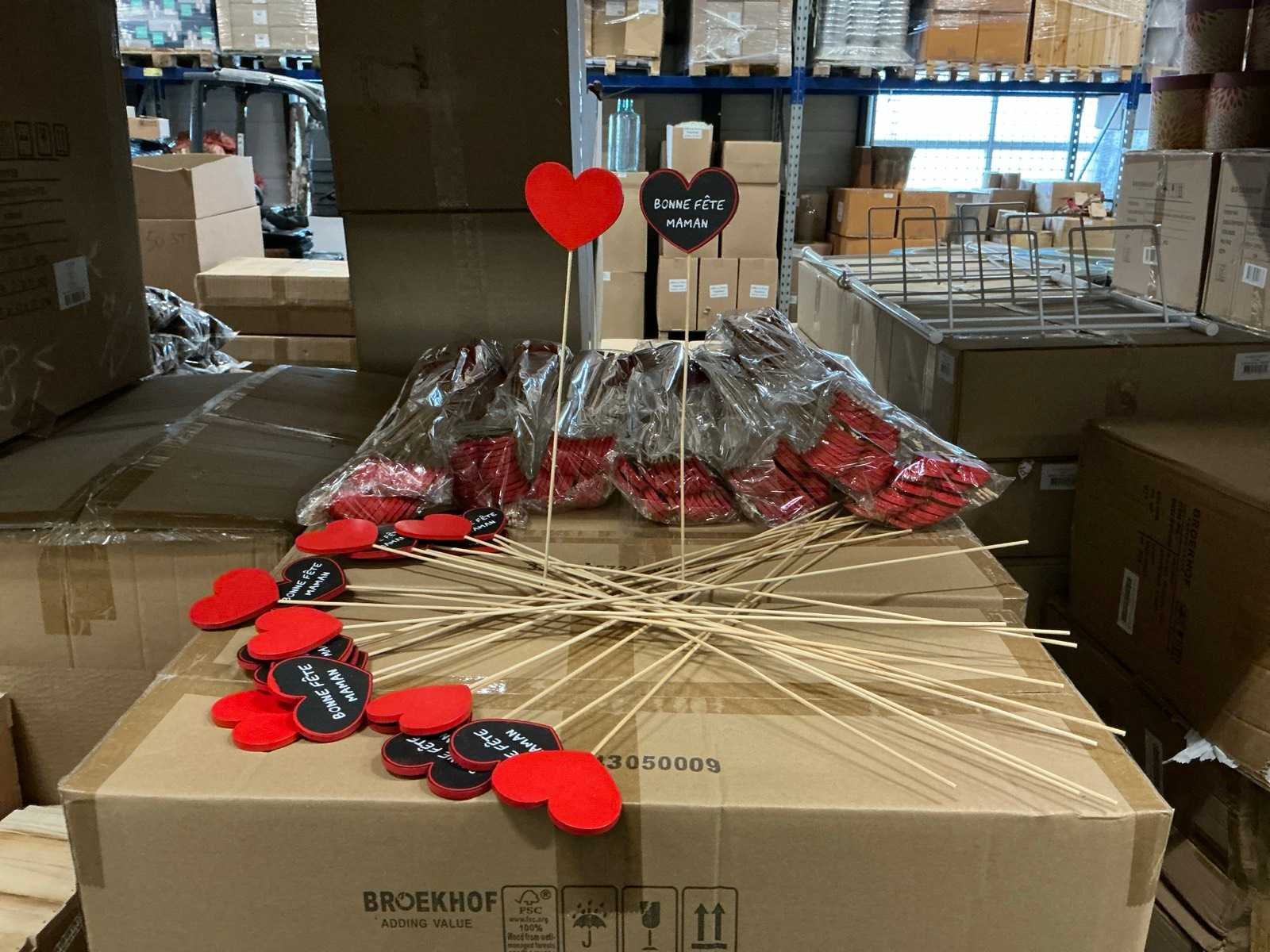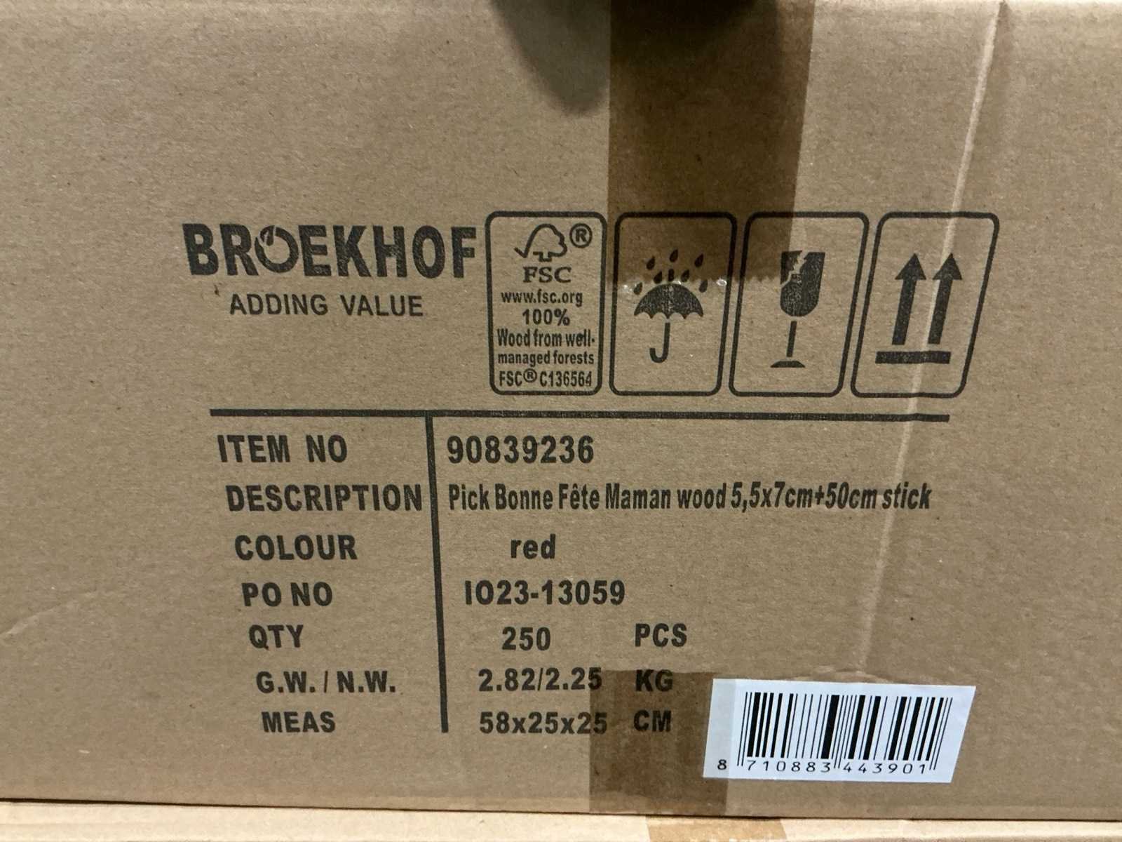 5,5x7cm+50cm stick. 20 dozen, per doos 250 sticks = totaal 5000 sticks.