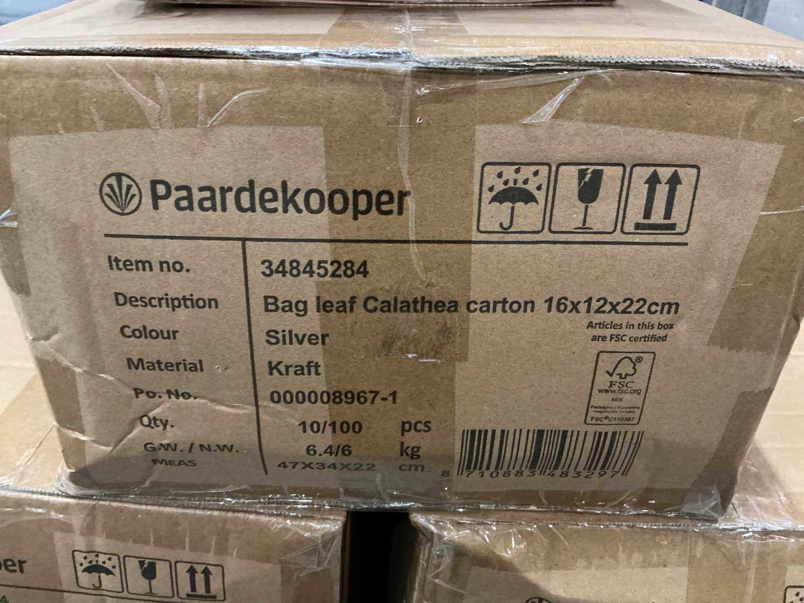 Partij bags leaf calathea carton 16x12x22cm silver (940x)