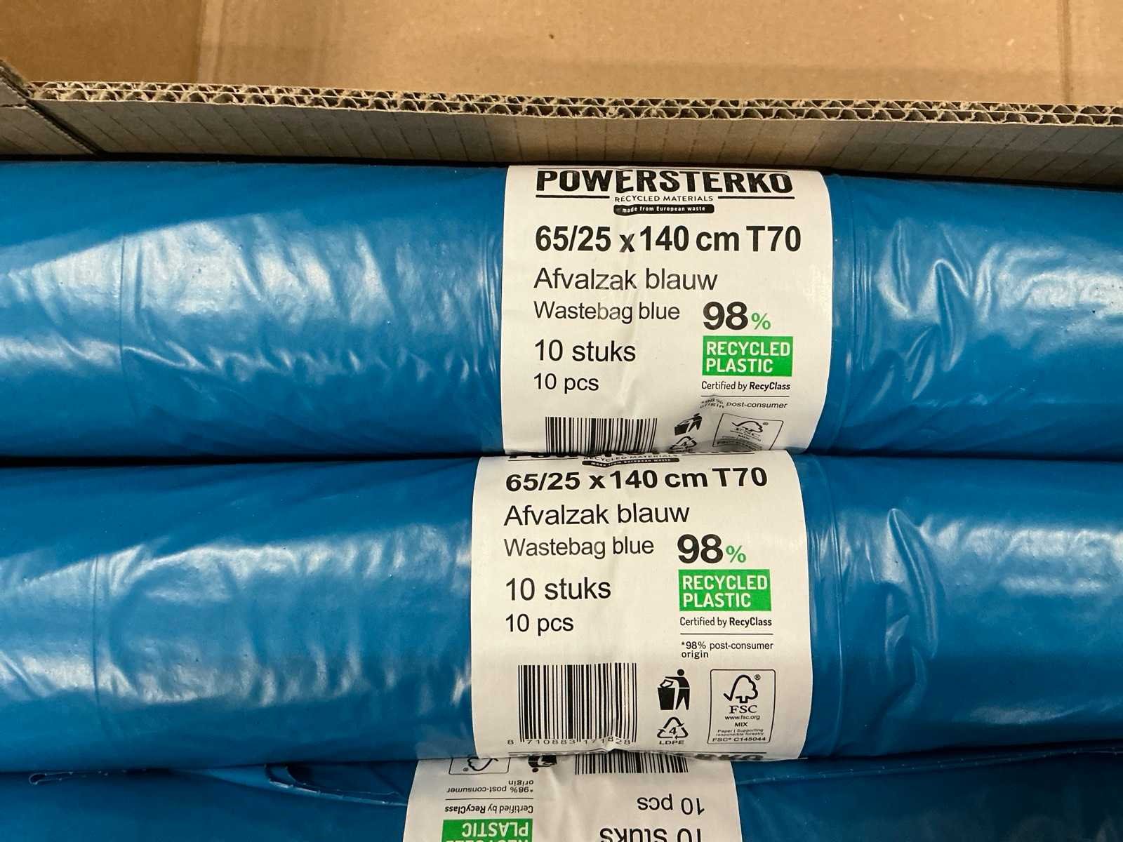 Partij powersterko afvalzakken blauw 65/25x140cm t70 (210x)