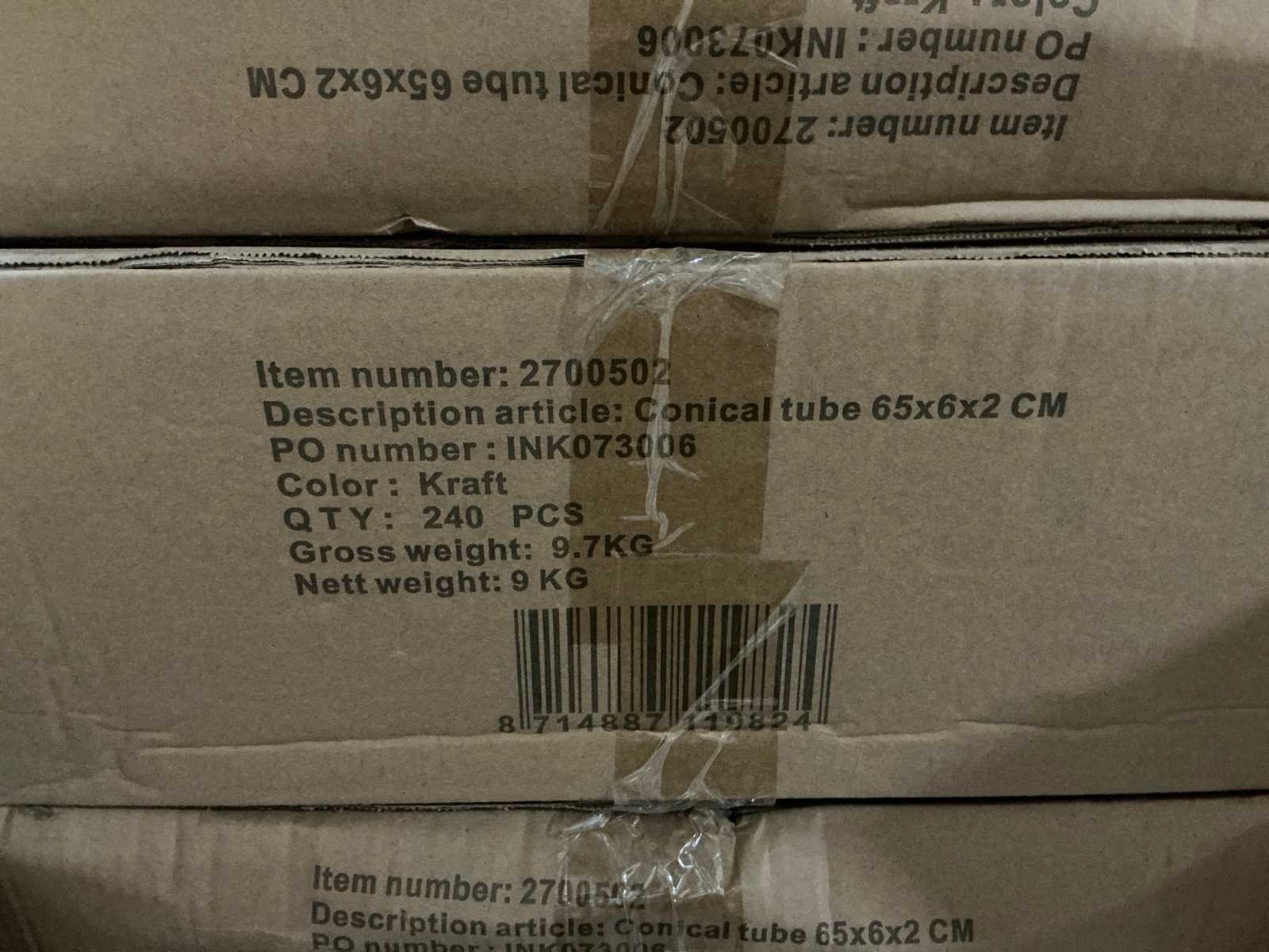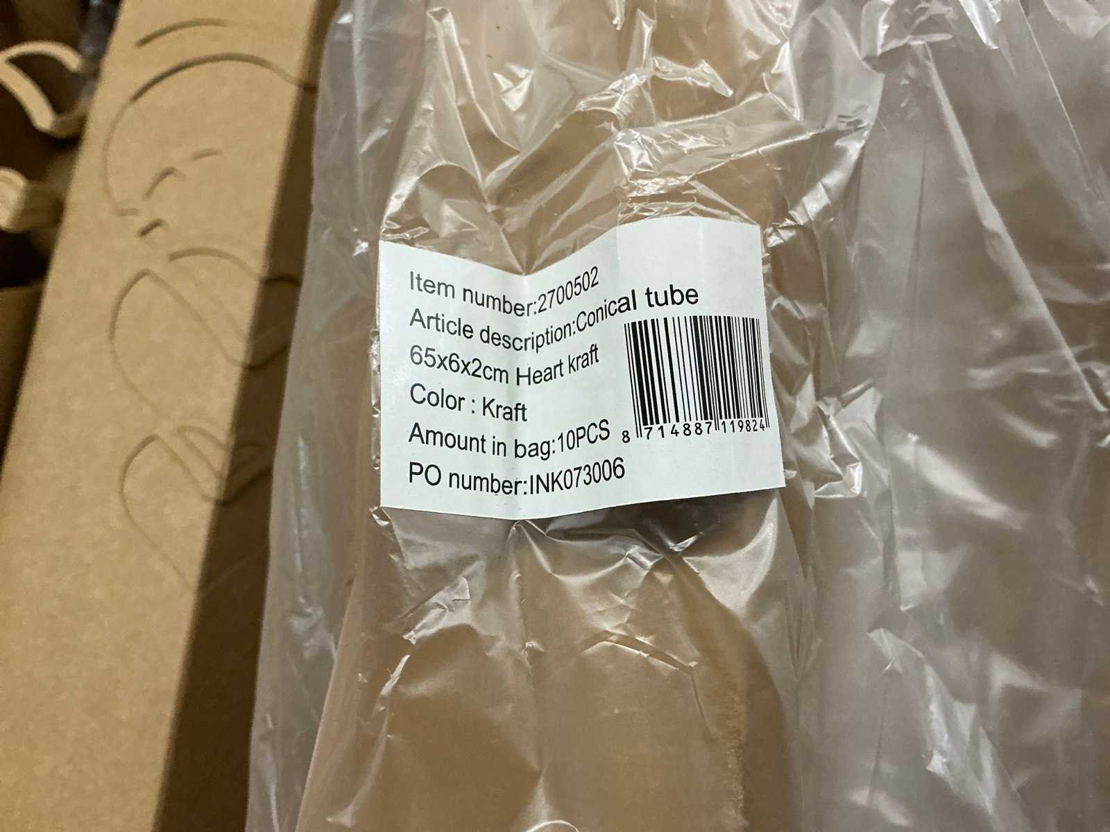 Partij conical tubes heart kraft 65x6x2cm (1520x)
