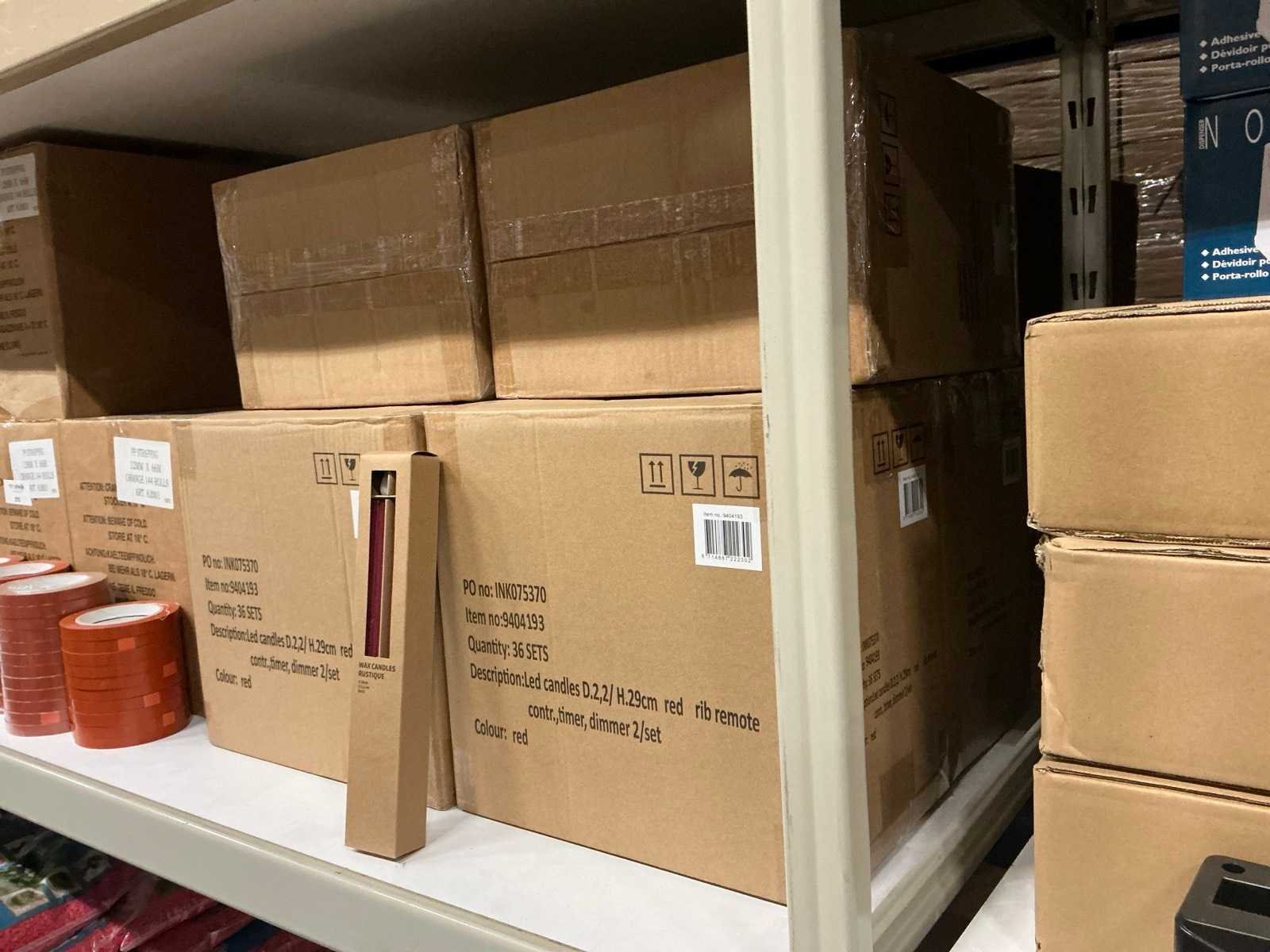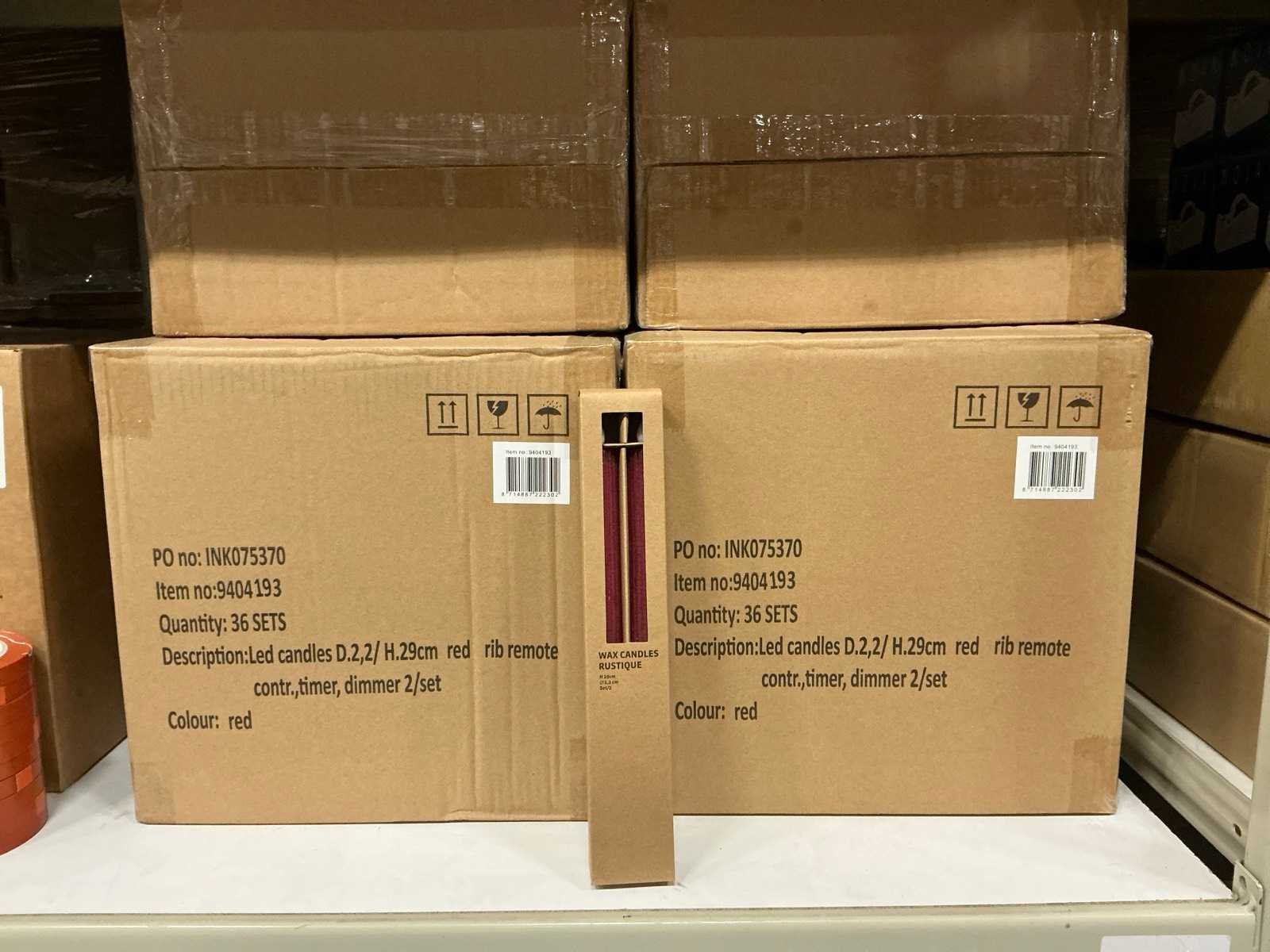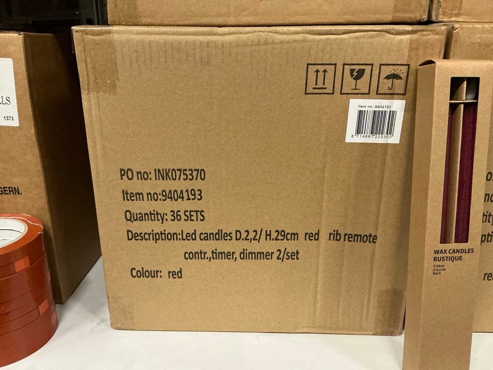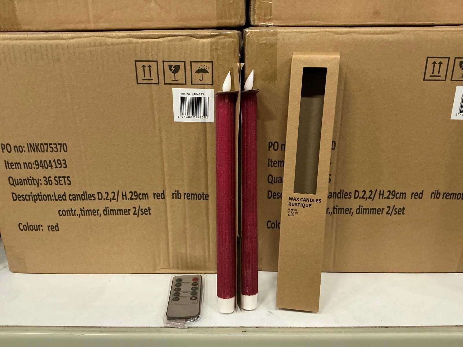 Partij wax led candles rustique sets ø2,2 h29cm red rib remote contr,timer,dimmer (216x)