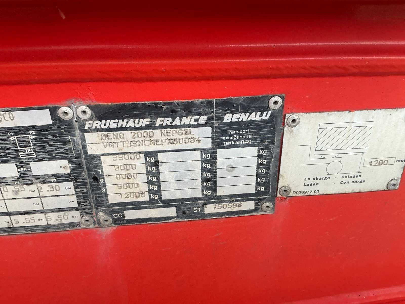Opgelet Nederlandse boorddocumenten, APK VERVALDATUM: 15/09/2026, massa ledig voertuig: 6950kg, Max.Massa voertuig: 39.000kg, laadvermogen,: 32.050kg Merk: Benalu Type: T39NLNEP Bouwjaar: 1999 Chassisnummer VIN: VH1T39NLNEPXS0094 Kenteken: OF79ZY Datum eerste toelating (NL): 14/07/1999 APK vervaldatum: 15/09/2026
