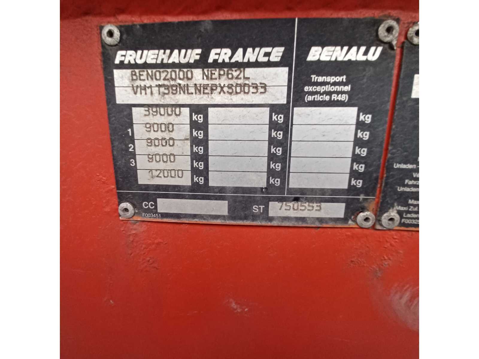 Opgelet Nederlandse boorddocumenten, APK VERVALDATUM: 19/05/2026, massa ledig voertuig: 6950kg, Max.Massa voertuig: 39000kg, laadvermogen,: 32050kg Merk: Benalu Type: T39NLNEP Bouwjaar: 1999 Chassisnummer VIN: VH1T39NLNEPXS0033 Kenteken: OF-08-ZY Datum eerste toelating (NL): 1999-07-12 Datum eerste toelating: 1999-07-12 APK vervaldatum: 2026-05-19 Aantal assen: 3 Laadvermogen: 32050kg