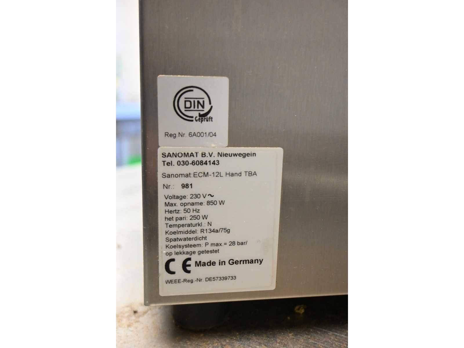 Merk: Sanomat Type: ECM-12L HAND TBA Serienummer: 981 Aansluiting: 230V Totale afmeting L: 400mm Totale afmeting Breedte: 500mm Totale afmeting Hoogte: 500mm