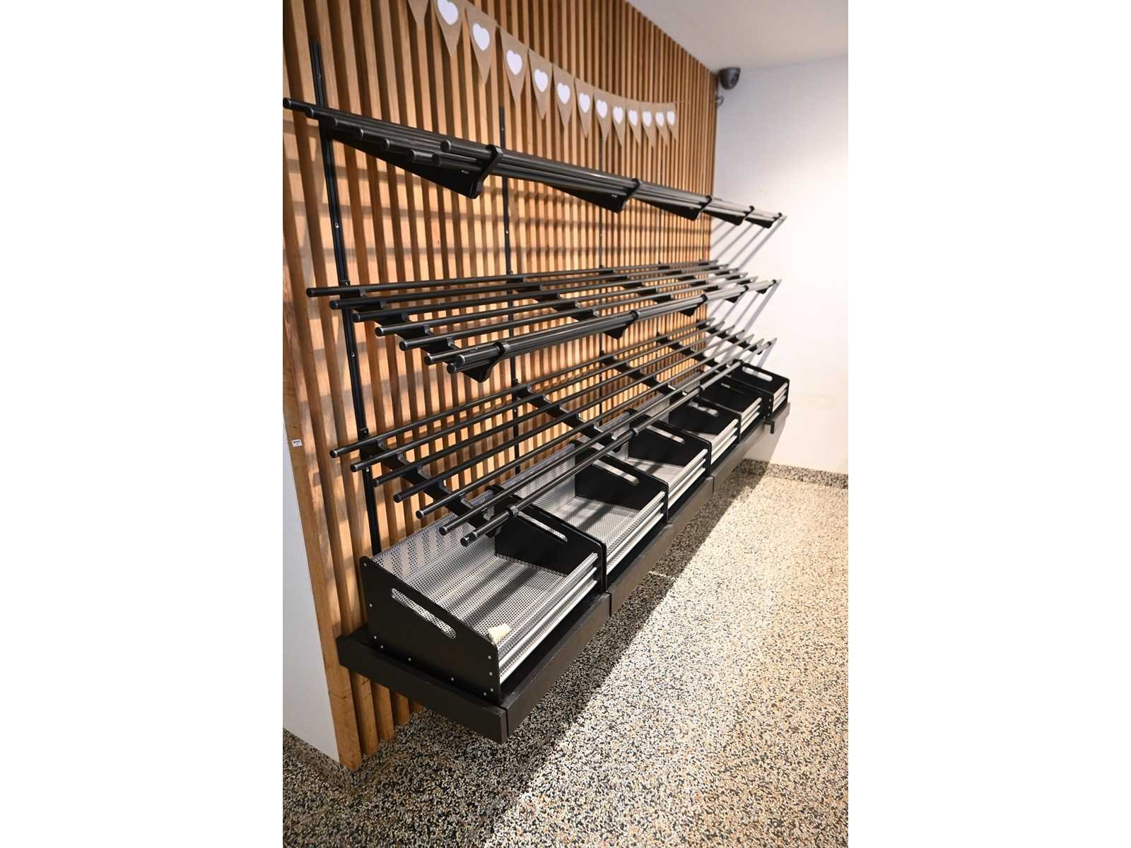 Inclusief ophangsysteem. Lengtes 3 x L300 x B50cm, 1 x L265 x B50cm, 1 x L185 x B50cm, 1 x L100 x B50cm en 1 x 6-Delig broodrek inclusief 6 broodmanden Merk: FrigoMil