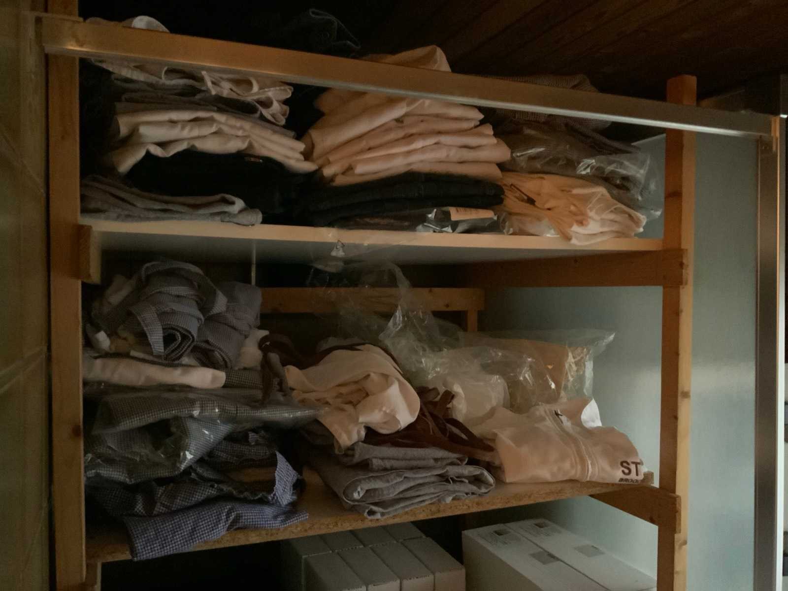 Inhoud bakkerij kleding en toebehoren opslagruimte