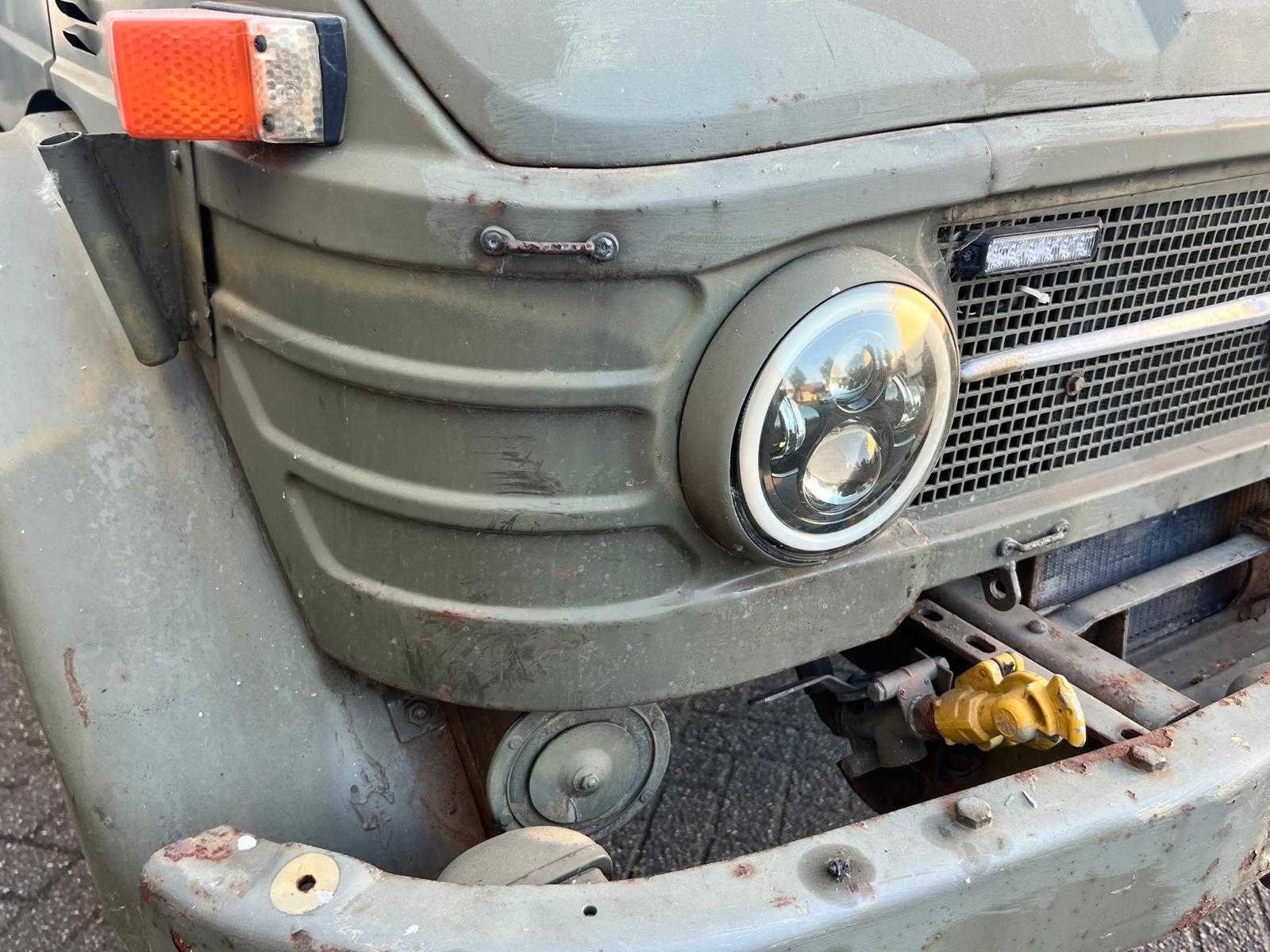 Let op: Kijkdag en ophaaldag alleen op afspraak! Let op: Objecten op verschillende locaties! Wij adviseren u gebruik te maken van de kijkdag, voor u eigen oordeel. Maak hiervoor een afspraak via info@sbservicetrucks.com! Kenteken: 84YD04 Merk: Unimog Type: 404 Bouwjaar: 1976 Cilinderinhoud: 2195cc Vermogen (kW): 60kW Datum eerste toelating: 1976-06-30 Datum eerste toelating (NL): 2021-06-15 APK vervaldatum: 2022-06-14 Aantal zitplaatsen: 2 Kleur: niet van toepassing Ledig gewicht: 2757kg Laadvermogen: 743kg Aantal cilinders: 6 Carrosserie: huifopbouw Emissieklasse: 0