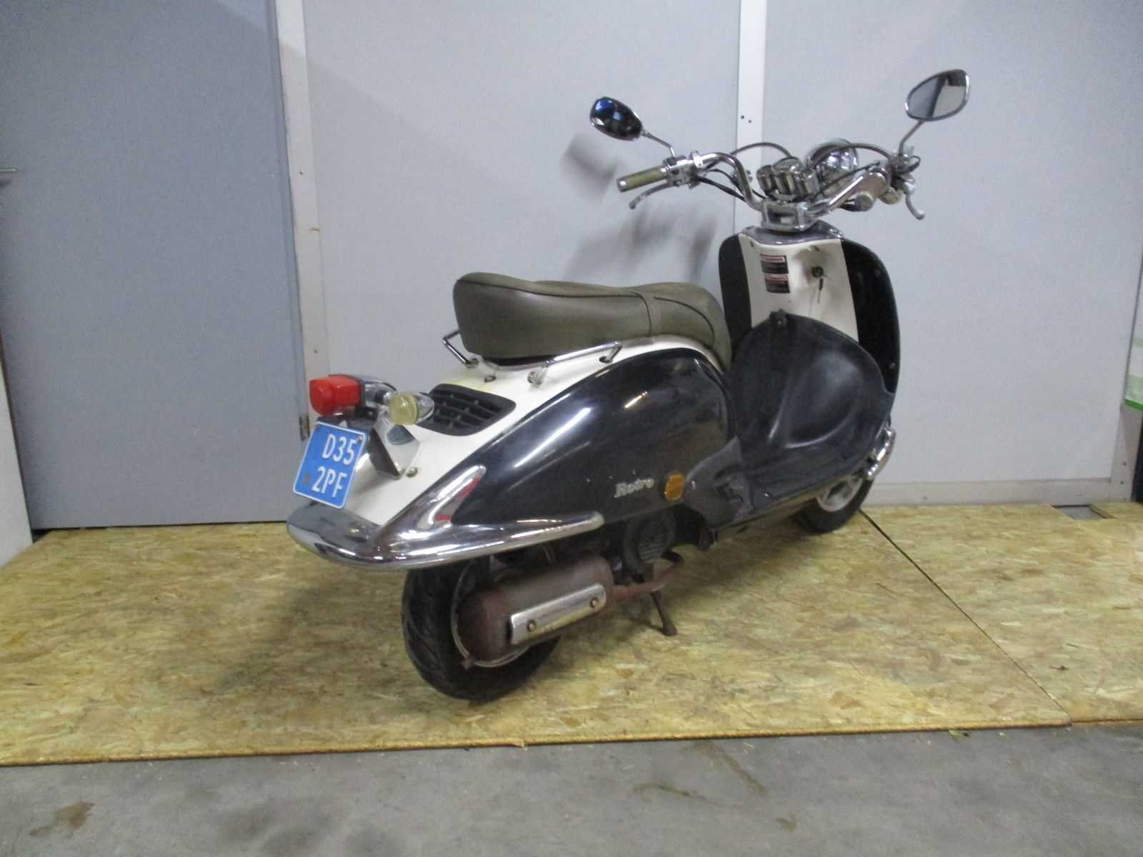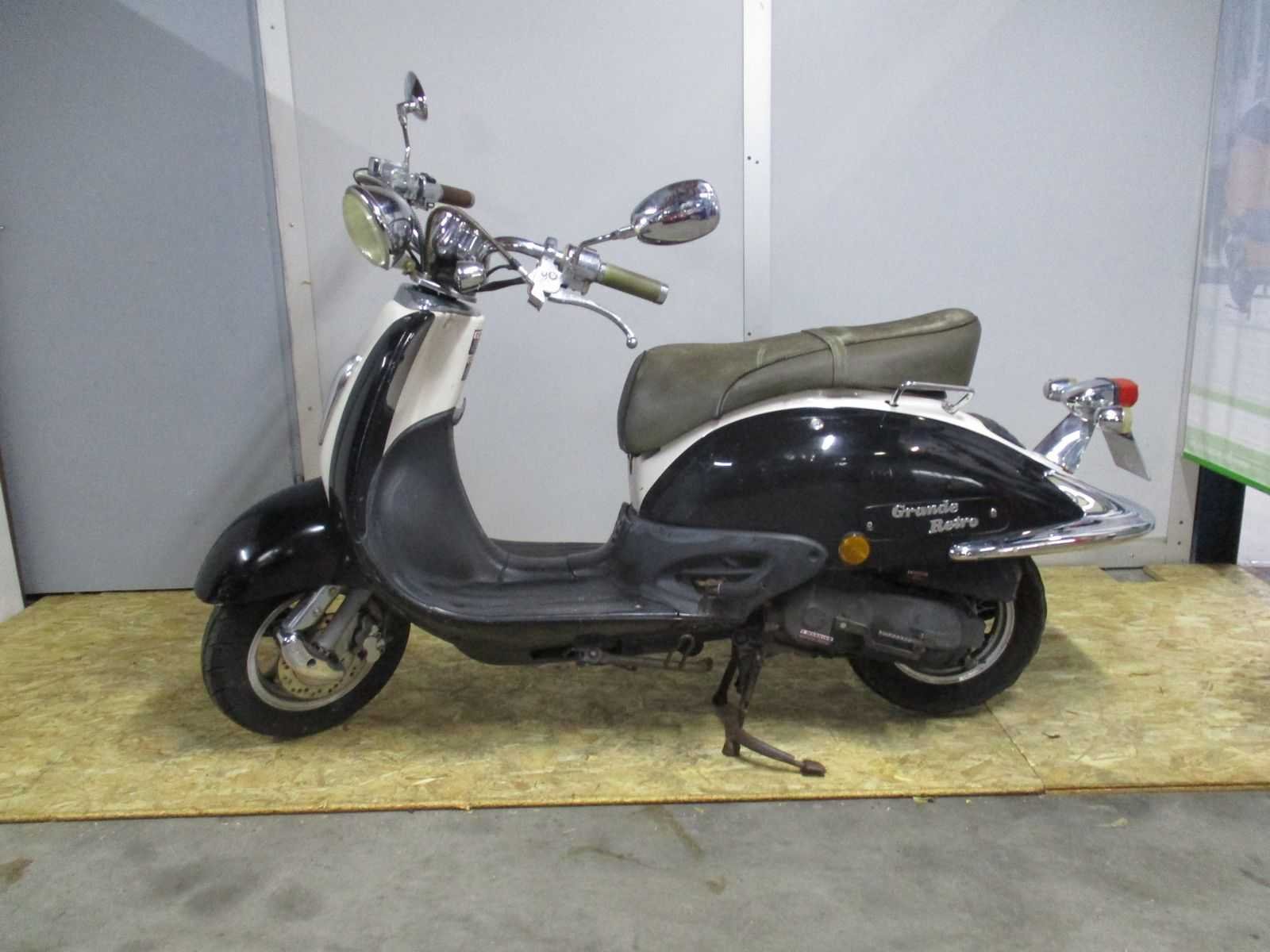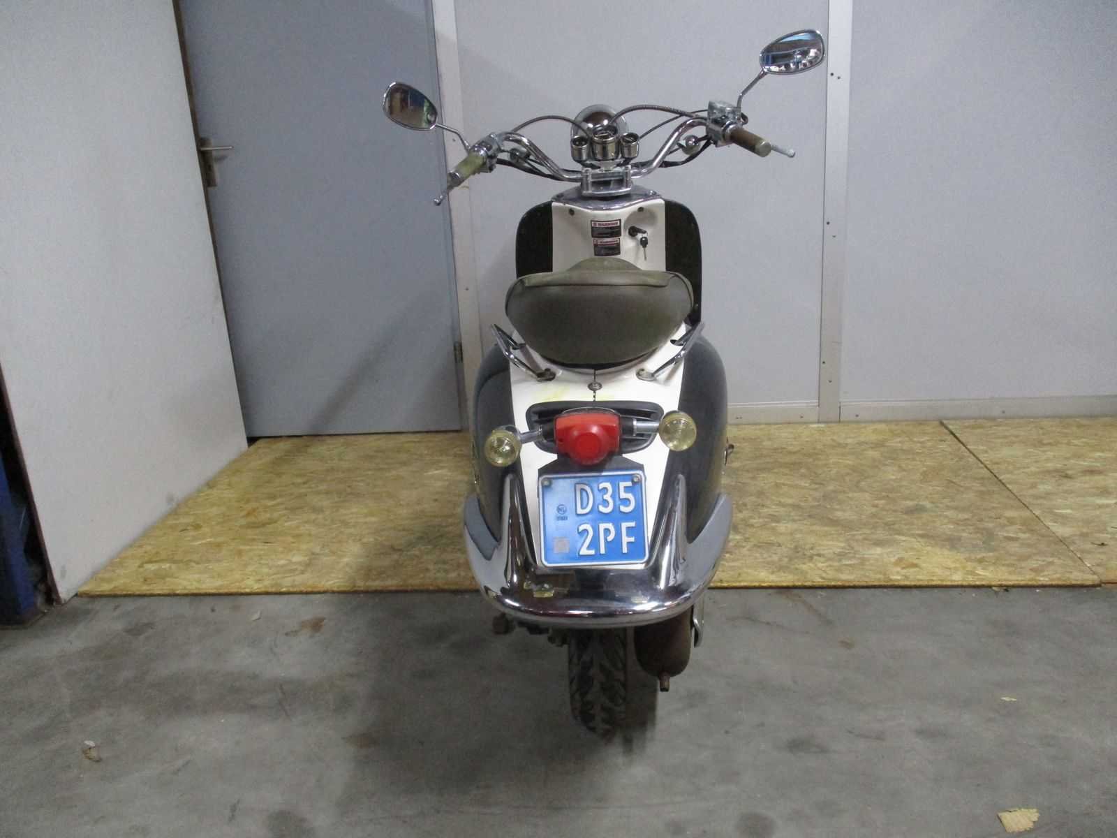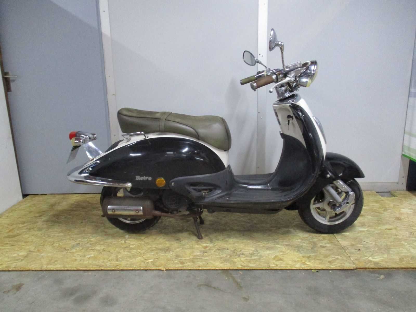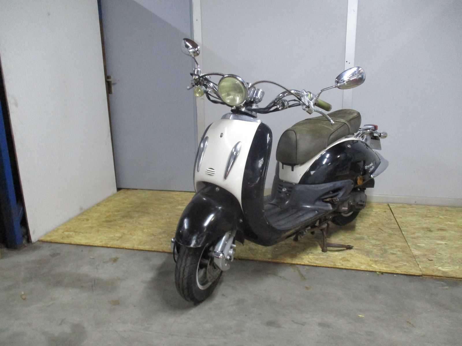 Snorscooter met 2 sleutels, scooter van 1 st eigenaar, heeft enige tijd stilgestaan en zal weer aan de gang gemaakt moeten worden (compressie voelt normaal aan). Verdere werking en technische staat onbekend. Merk: Fosti Model: Snorscooter Type: Grande Retro FT50QTE Handelsbenaming: FT50QT-E.25 Snelheid: 25km/h Kenteken: D-352-PF Datum eerste toelating: 2010-05-08 Bouwjaar: 08-05-2010 Transmissie: Aut. Brandstof: benzine Kleur: niet van toepassing Afgelezen kilometerstand: 19916km