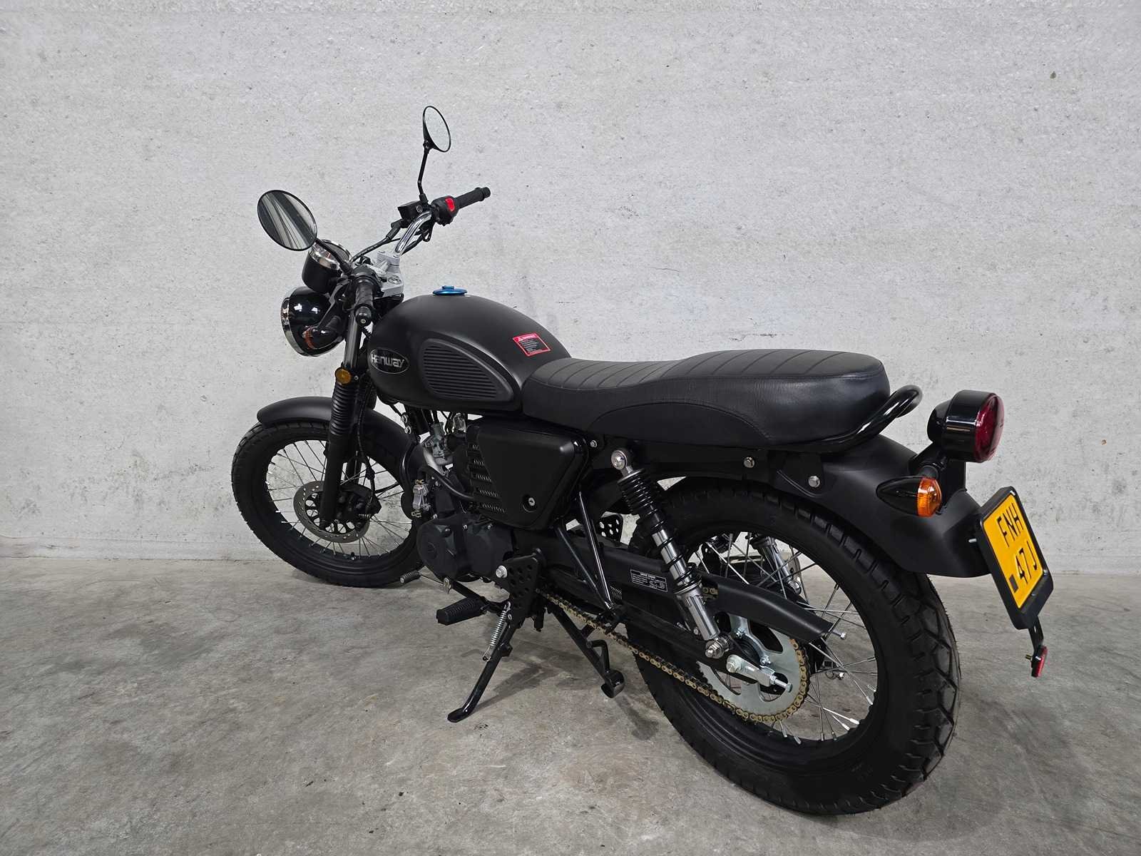2 sleutels - nieuwe bromfiets (paar km op de teller) , u word 1e eigenaar - voetsteun bijrijder en knopje dagteller ontbreekt - Merk: Hanway Model: Bromfiets Type: Raw50 Caferacer Handelsbenaming: RAW50S Kenteken: FNH47J Bouwjaar: 2026 Transmissie: voetgeschakeld Brandstof: benzine Kleur: zwart