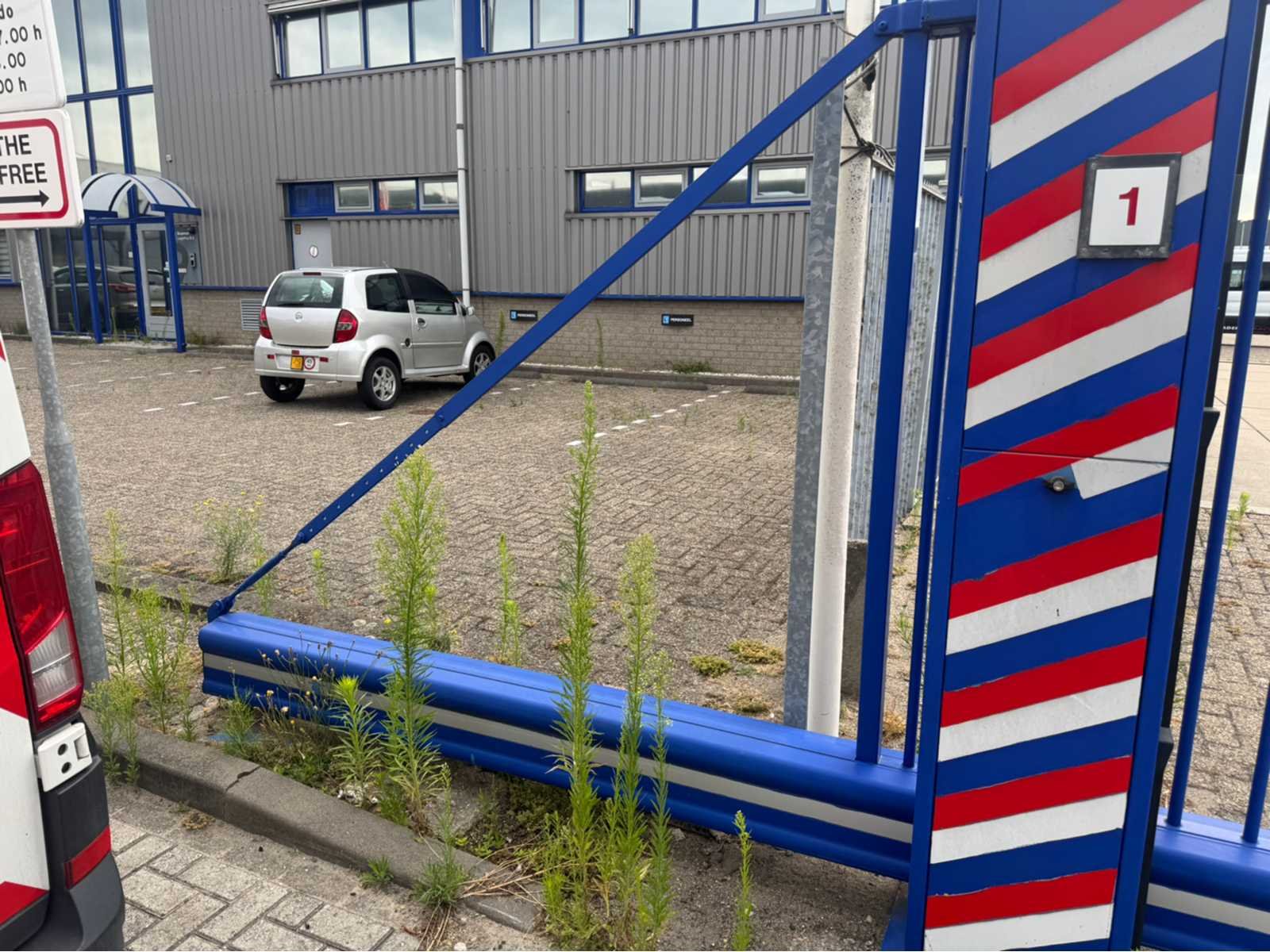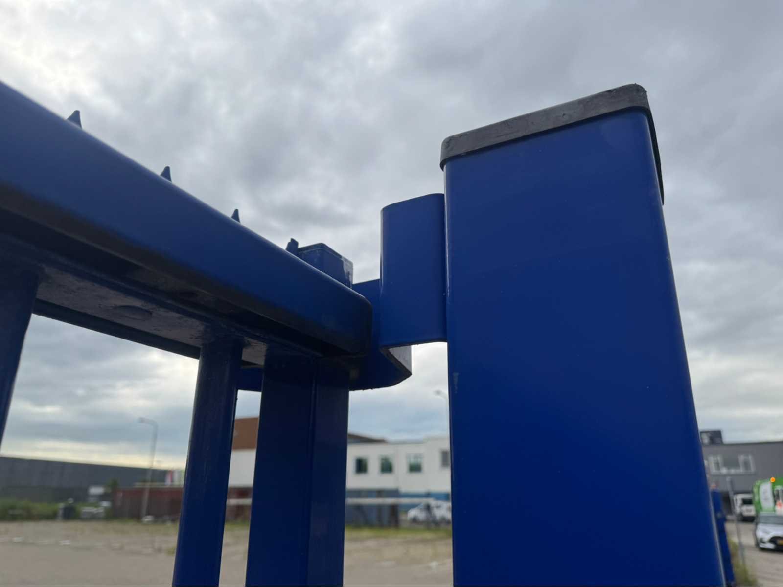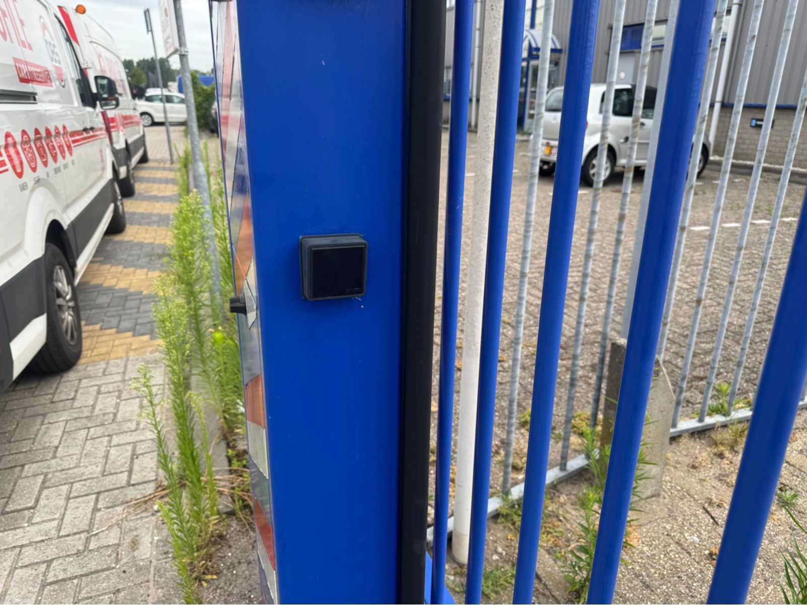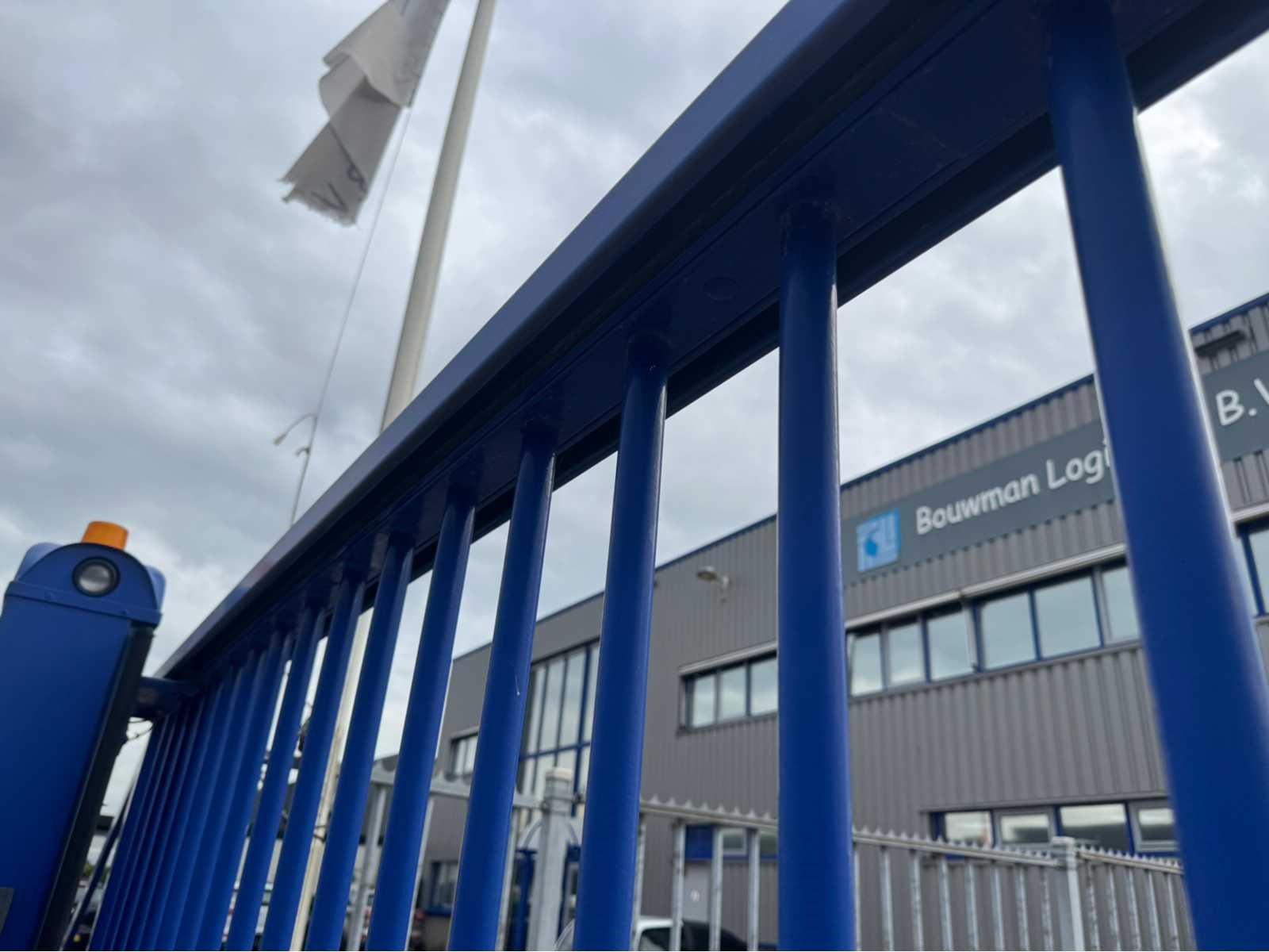 Hek opening is ca. 8000 mm; totale hek lengte ca. 10300 mm; hek hoogte 2100 mm; met portalen; te openen met code; blauw gepoedercoat hekwerk; wordt gedemonteerd en transport klaar gemaakt door verkoper; kijkdag en afhalen op afspraak; laden in overleg; februari / maart; Merk: Kopal