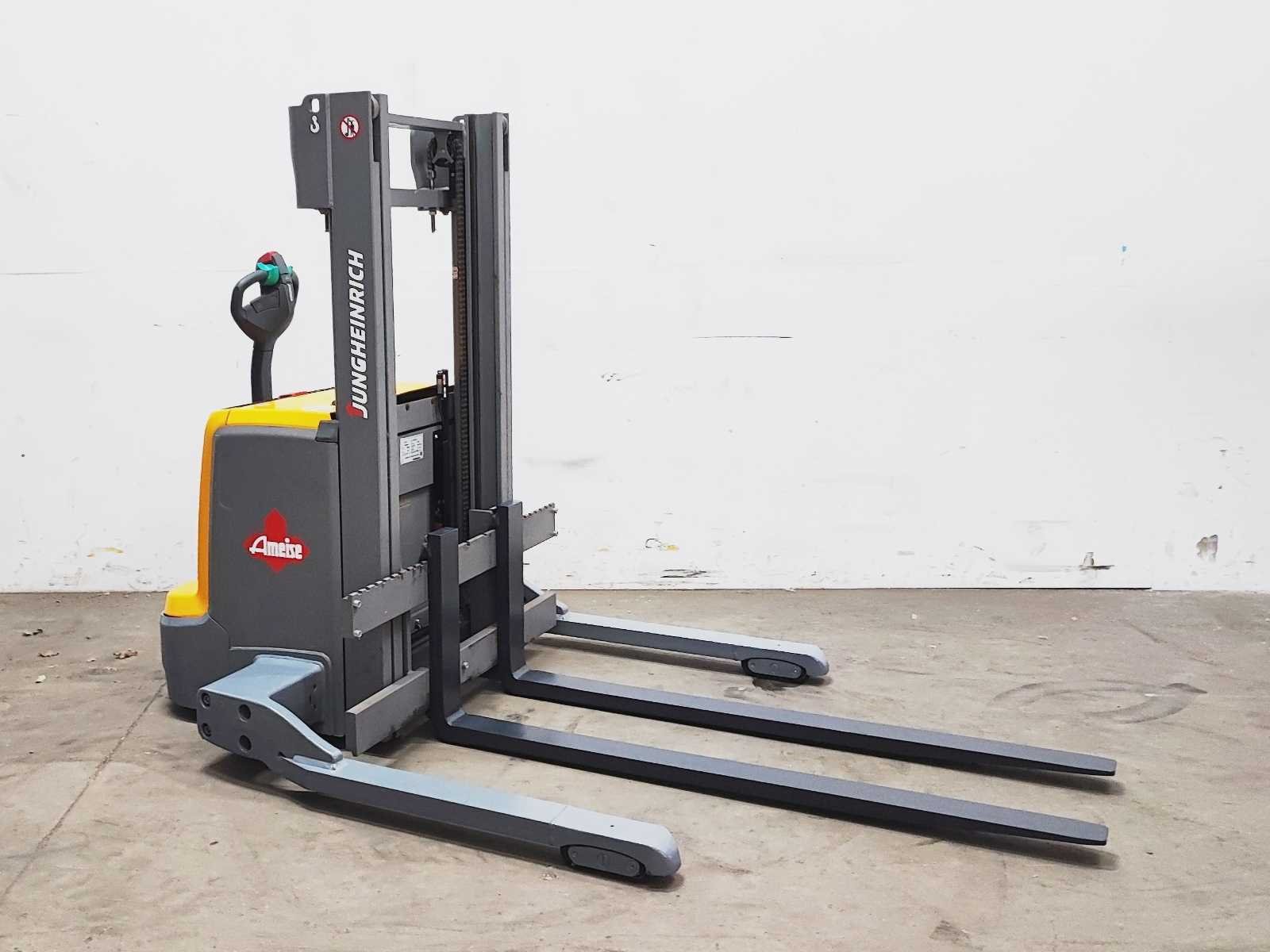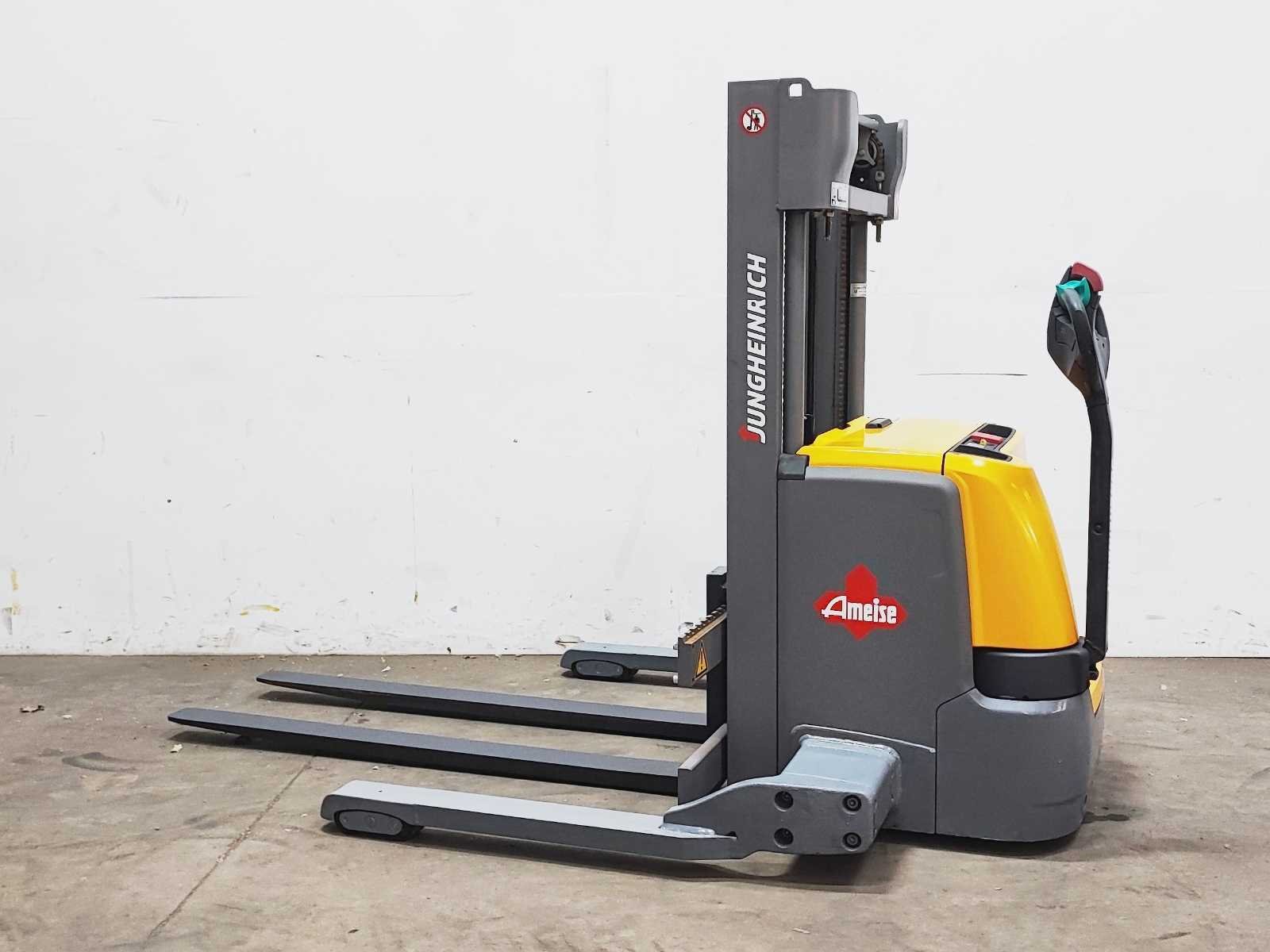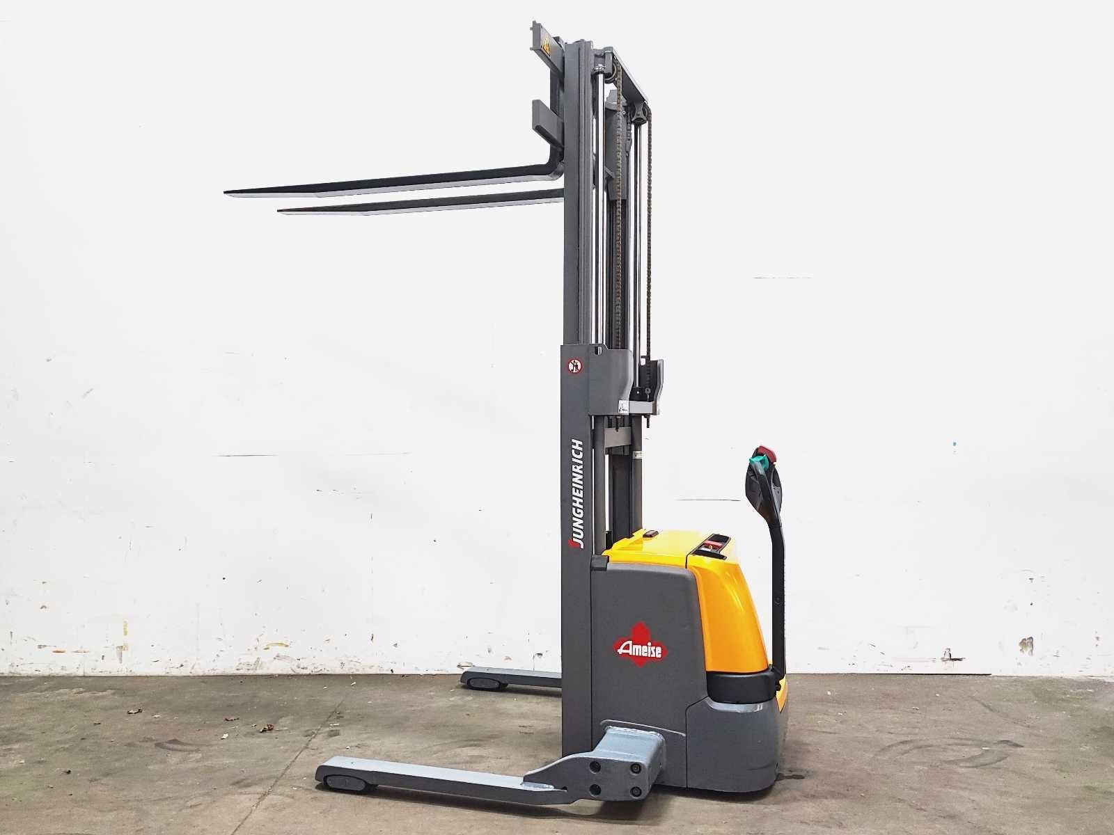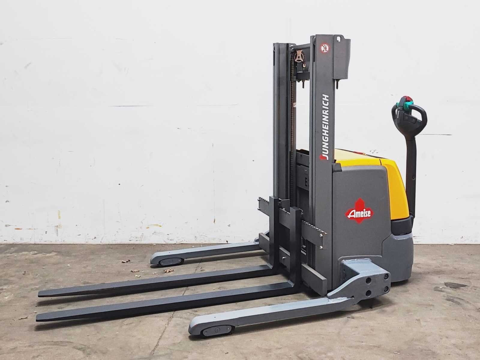 Jungheinrich EJC B16 elektro breedspoor stapelaar v.v. duplo mast Merk: Jungheinrich Type: EJC B16 Bouwjaar: 2017 Serienummer: 91615064 Hefvermogen: 1600kg Hefhoogte: 2400mm Lepellengte: 1600mm Afgelezen urenstand: 217 Eigen gewicht: 1200kg Minimale doorrijhoogte: 1710mm Totale afmeting L: 2700mm Totale afmeting Breedte: 1480mm Totale afmeting Hoogte: 1710mm Accu lader: true