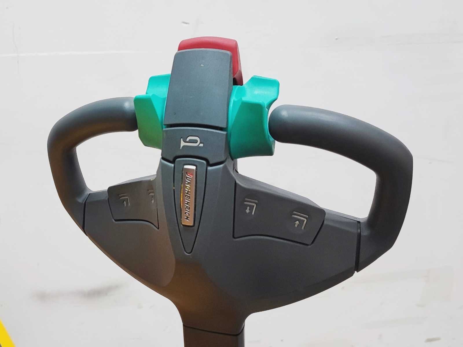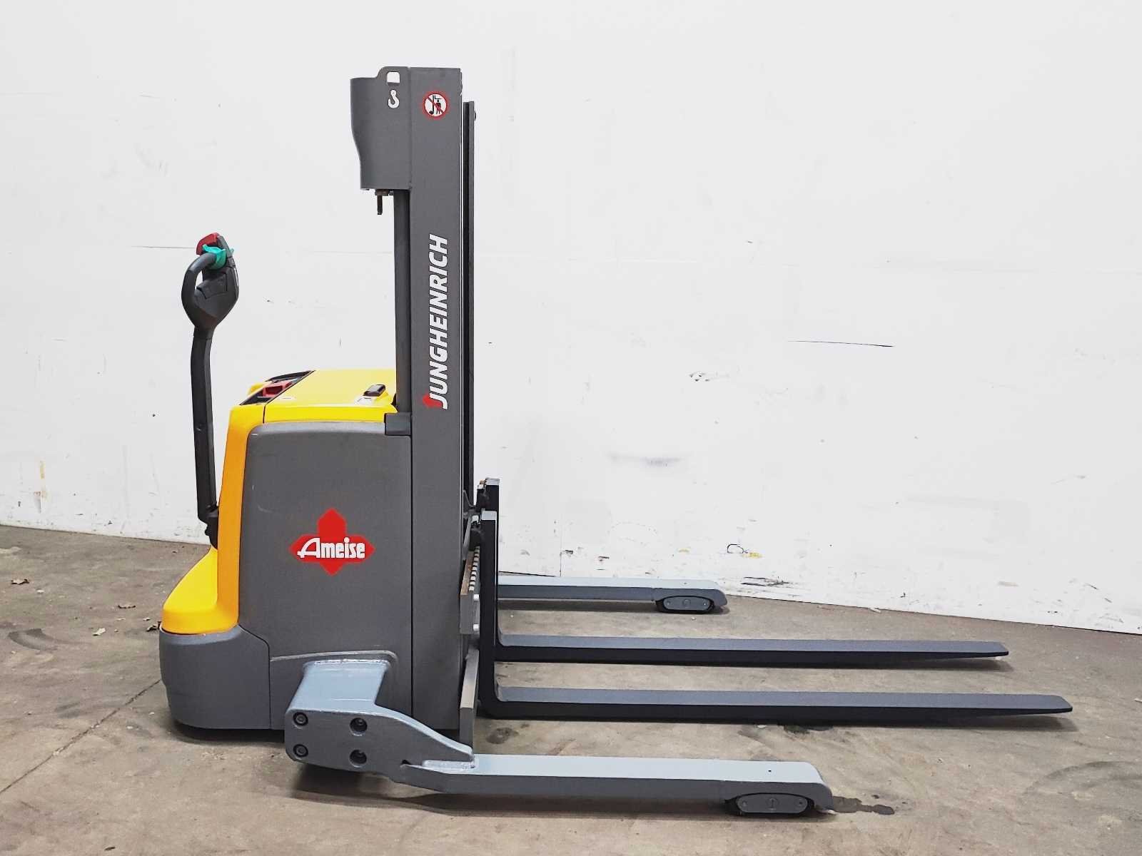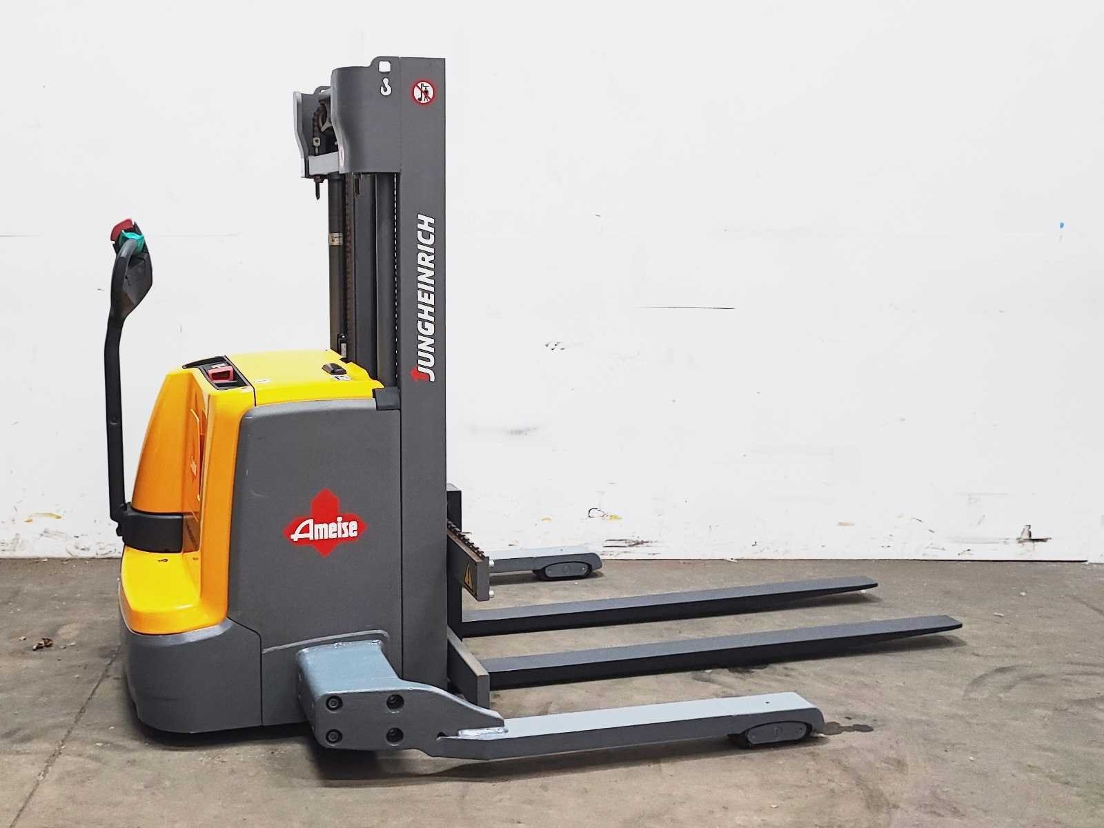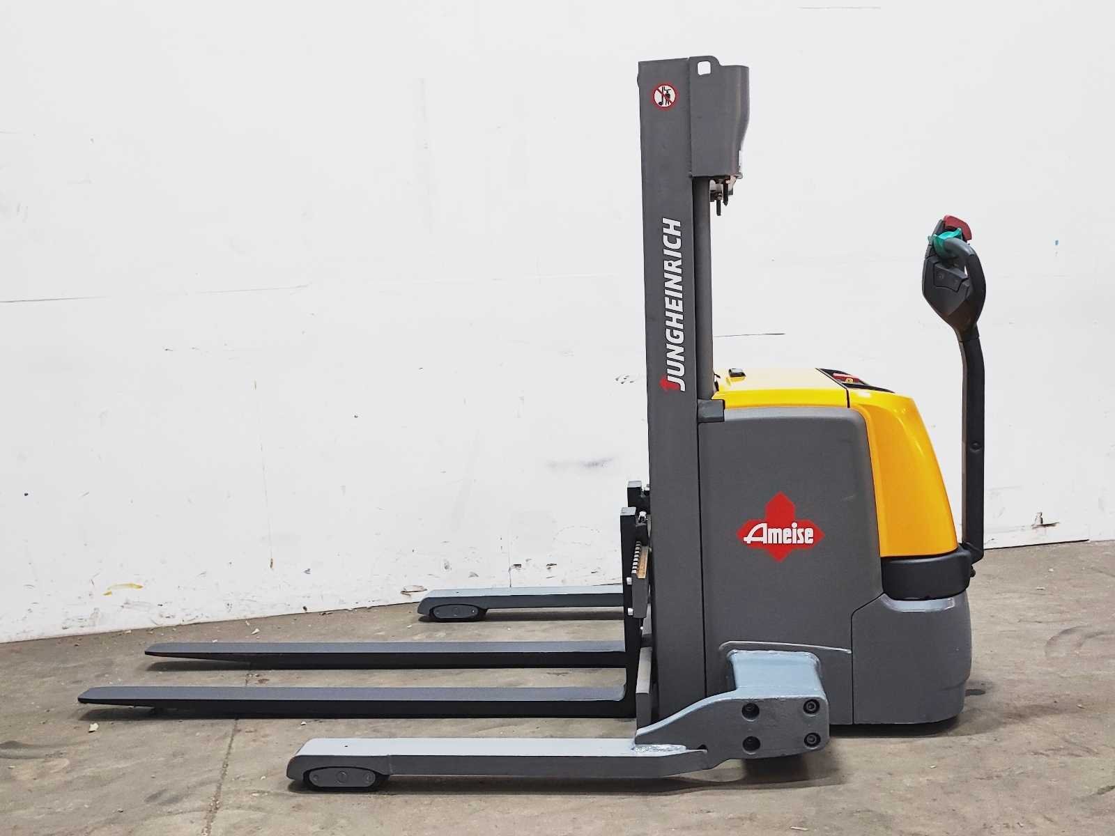 Jungheinrich EJC B16 elektro breedspoor stapelaar v.v. duplo mast Merk: Jungheinrich Type: EJC B16 Bouwjaar: 2017 Serienummer: 91615064 Hefvermogen: 1600kg Hefhoogte: 2400mm Lepellengte: 1600mm Afgelezen urenstand: 217 Eigen gewicht: 1200kg Minimale doorrijhoogte: 1710mm Totale afmeting L: 2700mm Totale afmeting Breedte: 1480mm Totale afmeting Hoogte: 1710mm Accu lader: true