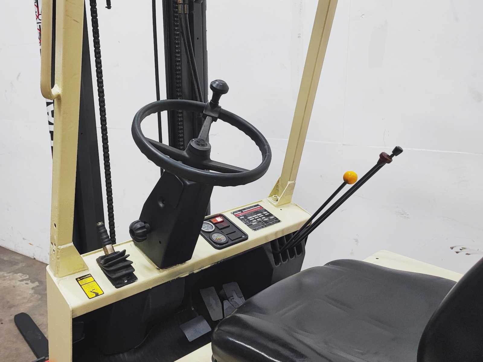 Merk: Fiat Type: E73 15N Bouwjaar: 1995 Serienummer: 3166680332 Brandstof: Elektrisch Mast: Duplex Aantal wielen: 3 Afgelezen urenstand: 35260 Accu lader: true Side-shift: true Duplex mast: true Eigen gewicht: 4200kg Hefvermogen: 1500kg Lepellengte: 1200mm Hefhoogte: 3300mm Vol rubber banden: true Minimale doorrijhoogte: 2180mm Totale afmeting L: 2000mm Totale afmeting Breedte: 1050mm Totale afmeting Hoogte: 2180mm