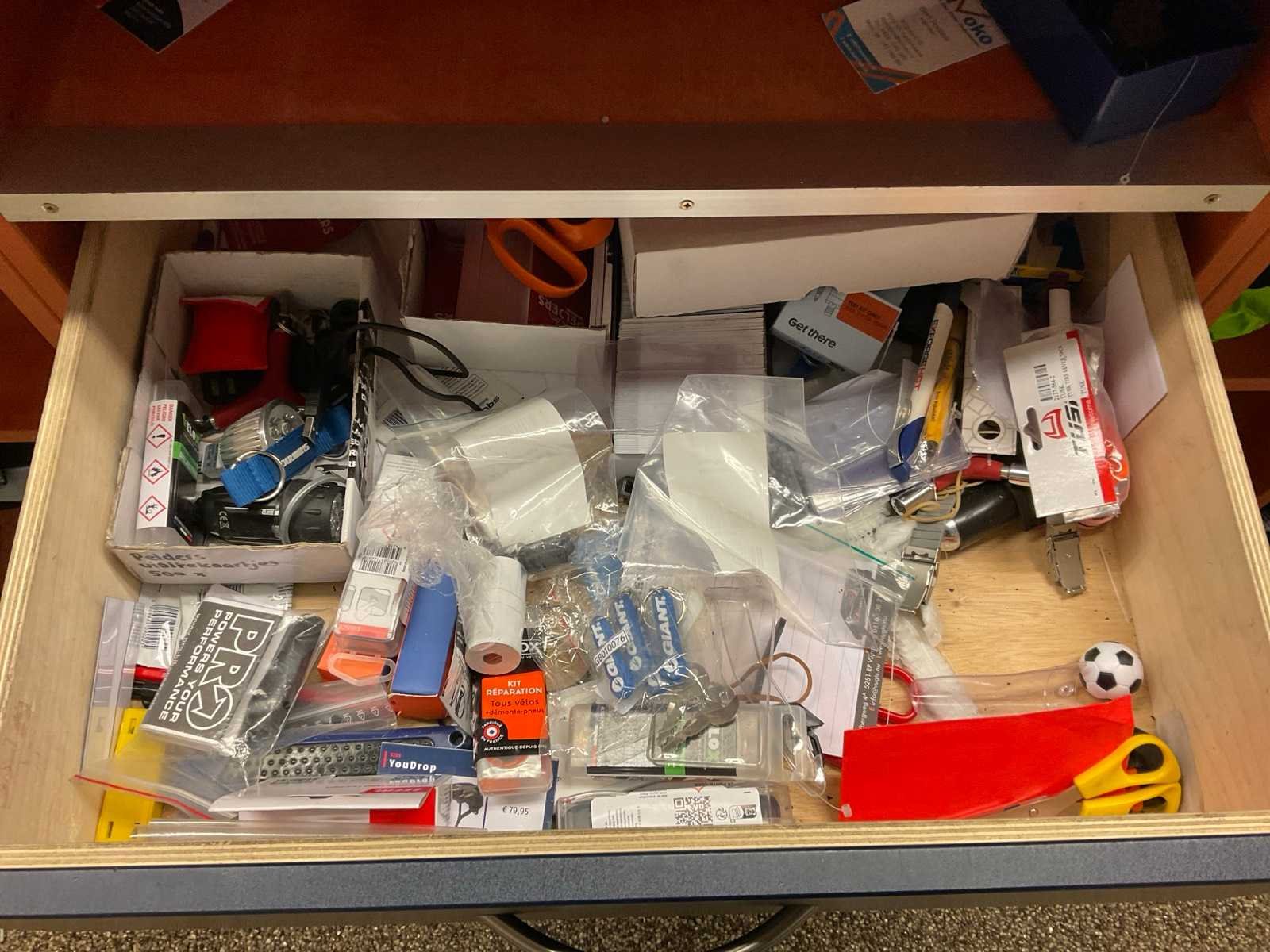 W.o. fietsonderdelen, verkoopmateriaal en aanverwanten, exclusief balie Merk: Inhoud balie