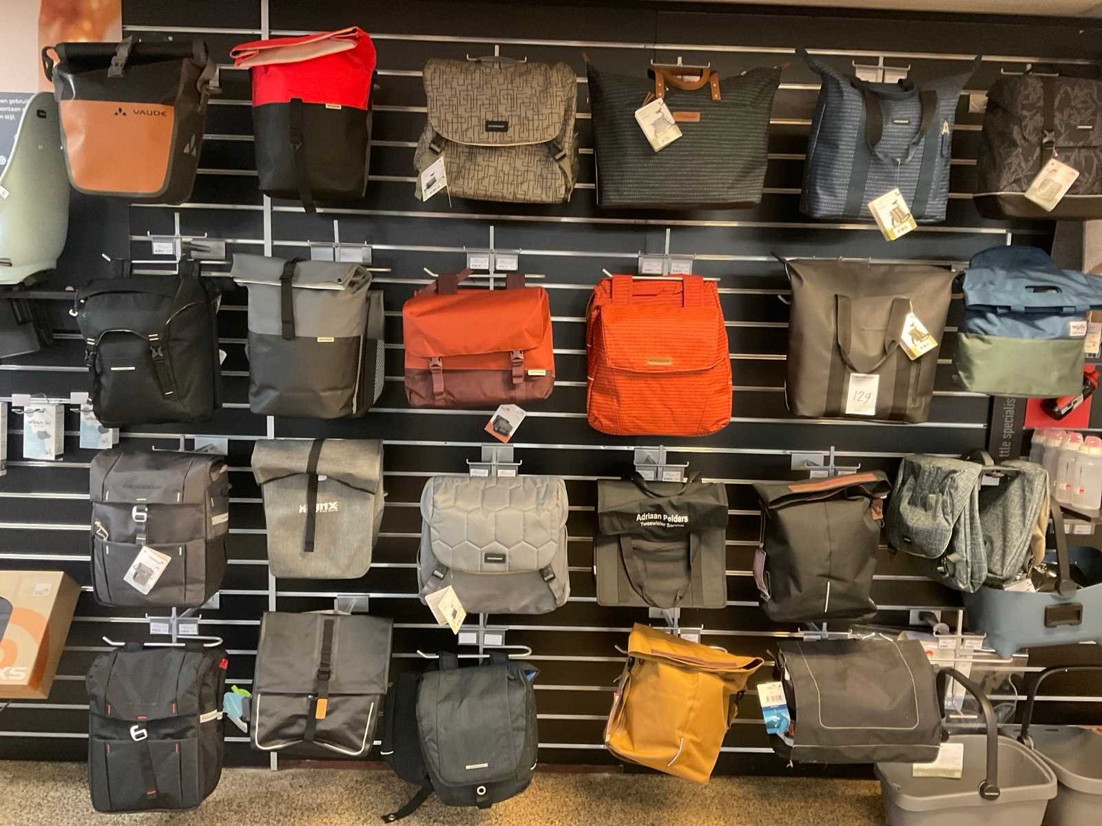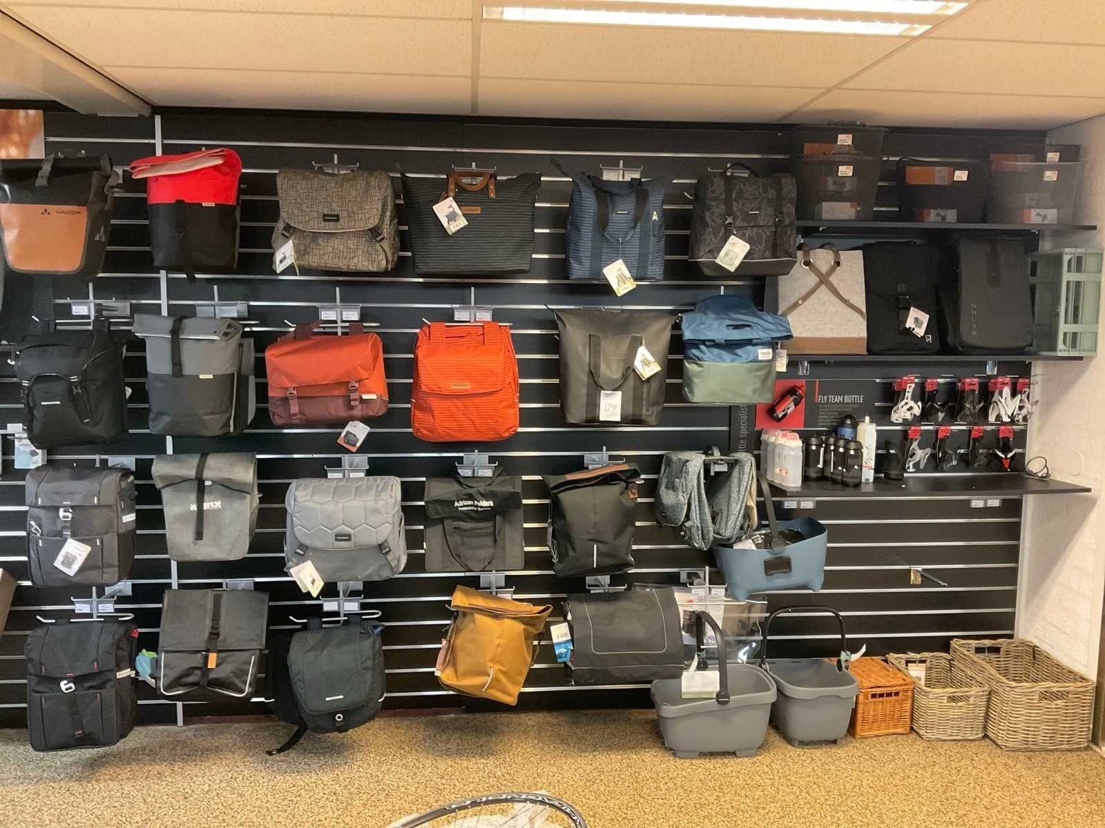 Partij fietstassen in wandstelling, incl wandstelling