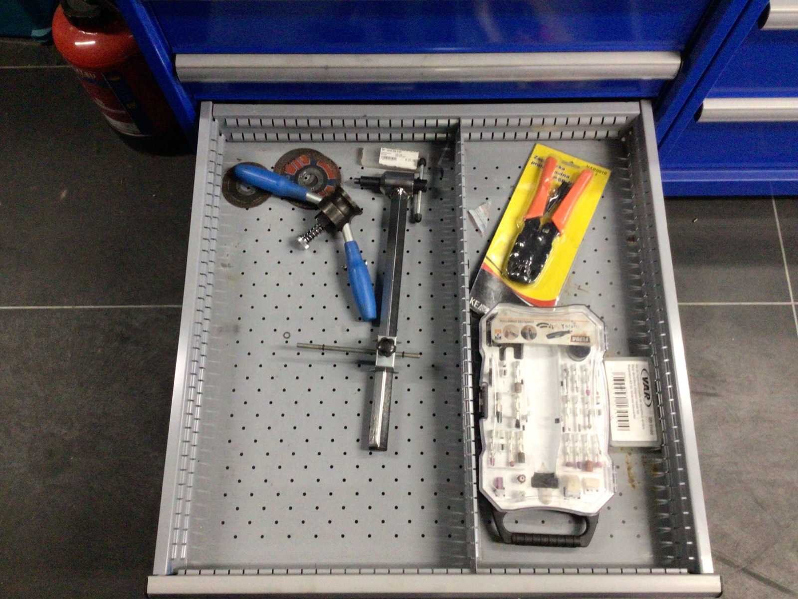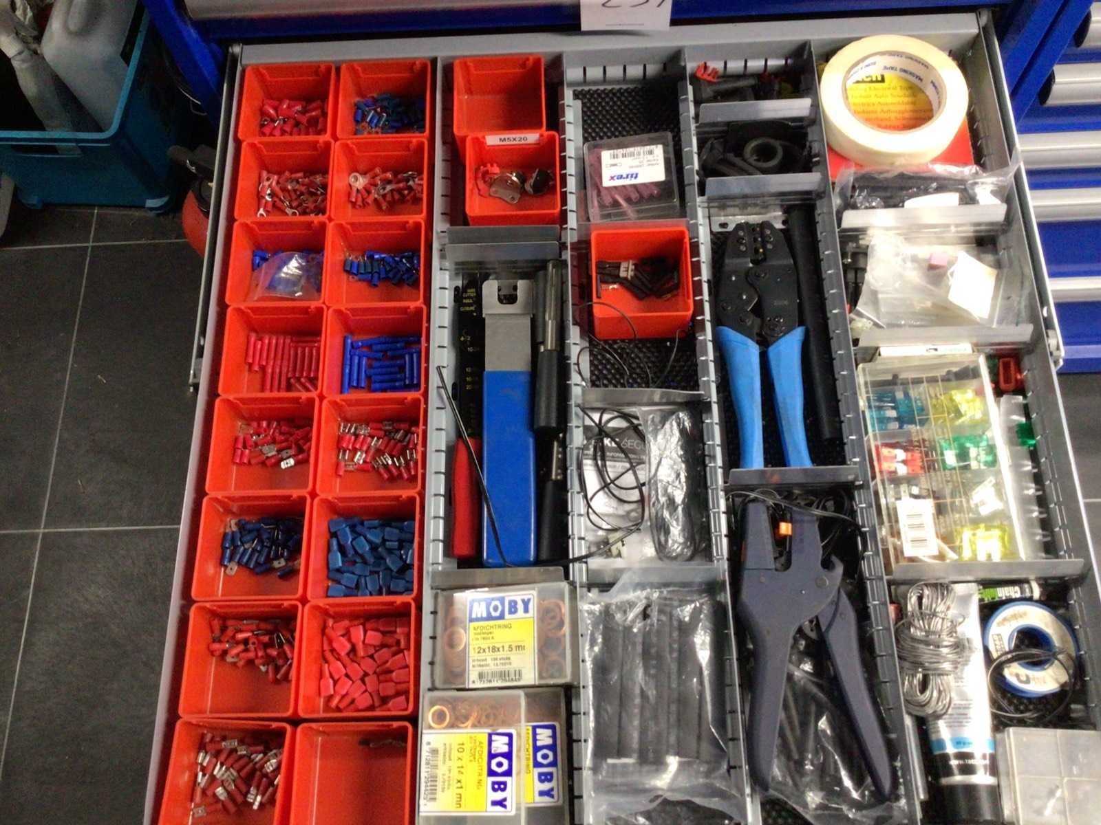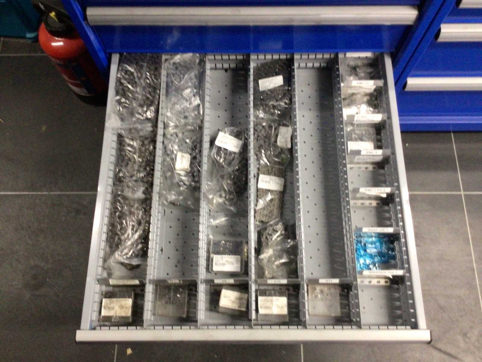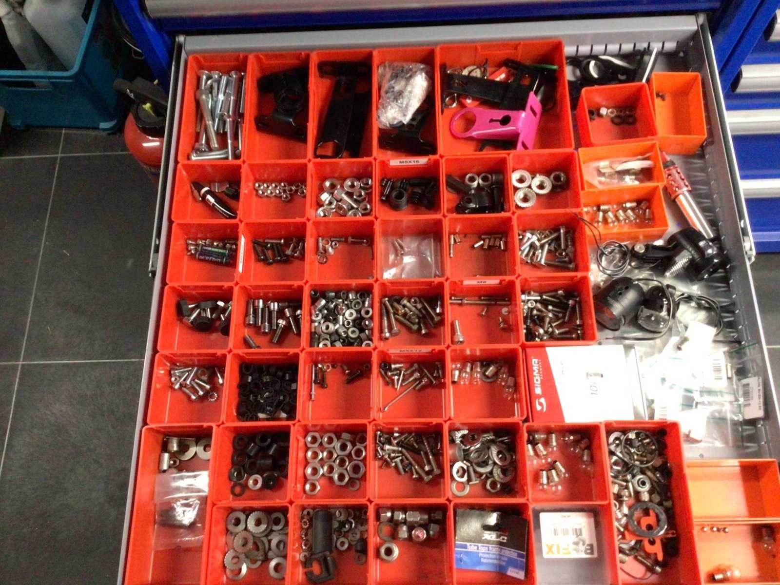 Partij fiets onderdelen in 6 laden, exclusief kast